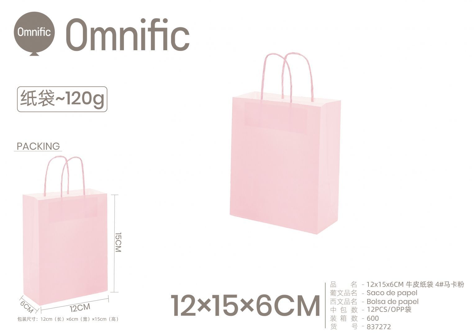 C.B. 5600936837272SACO DE PAPEL KRAFT 12*15*6CM ROSA PASTEL