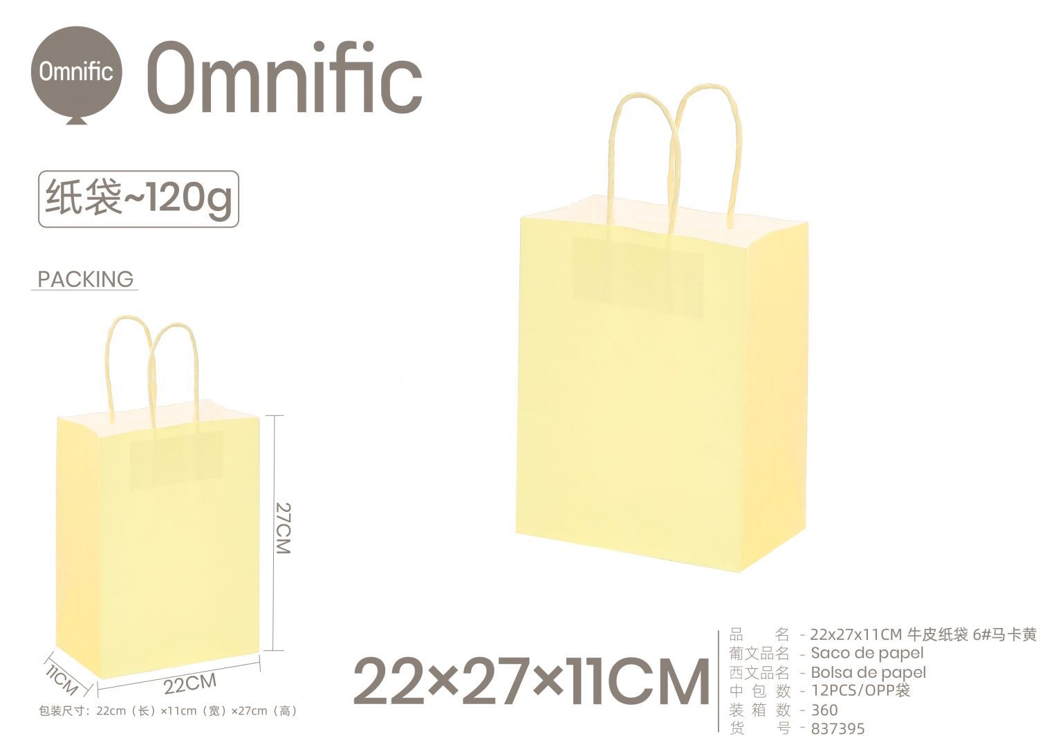 C.B. 5600936837395SACO DE PAPEL KRAFT 22*27*11CM AMARELO PASTEL