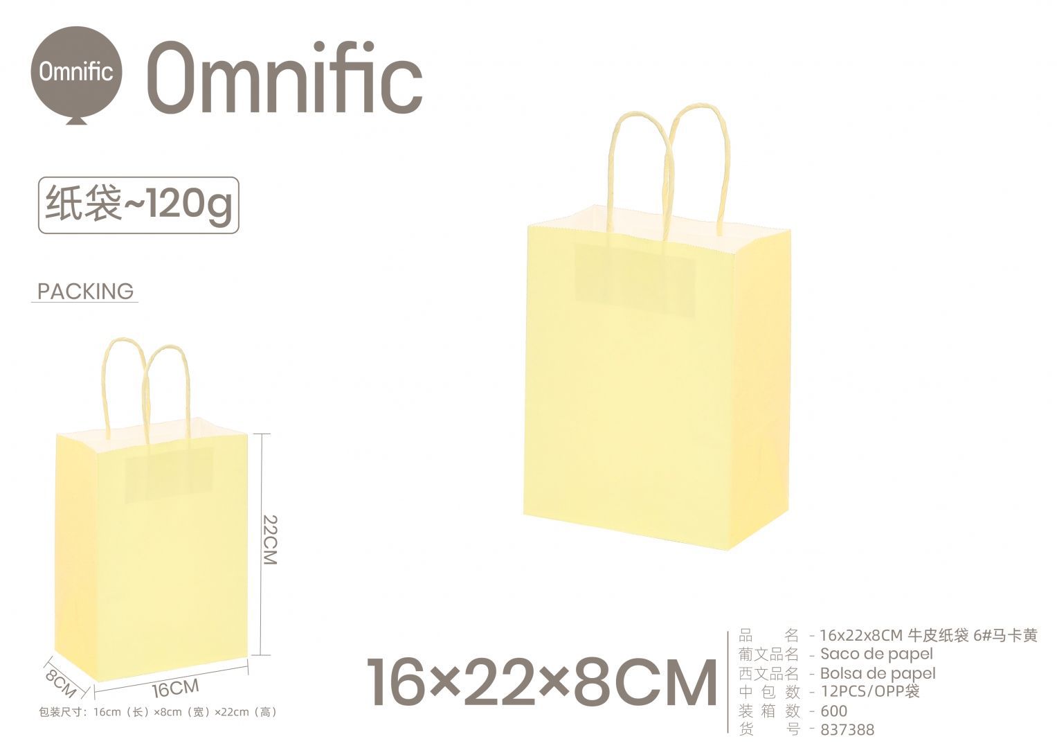 C.B. 5600936837388SACO DE PAPEL KRAFT 16*22*8CM AMARELO PASTEL
