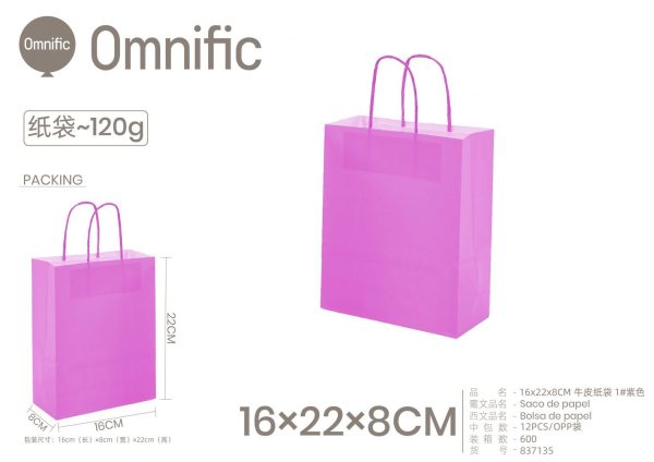 C.B. 5600936837135SACO DE PAPEL KRAFT 16*22*8CM ROXO