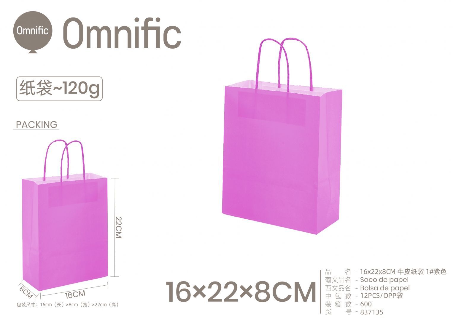 C.B. 5600936837234SACO DE PAPEL KRAFT 16*22*8CM ROXO PASTEL