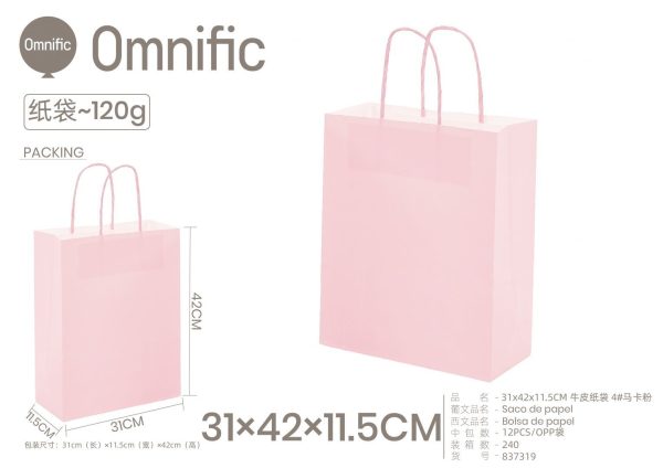 C.B. 5600936837319SACO DE PAPEL KRAFT 31*42*11.5CM ROSA PASTEL