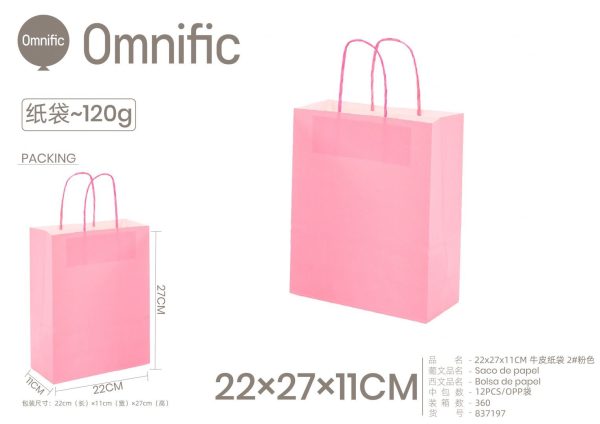 C.B. 5600936837197SACO DE PAPEL KRAFT 22*27*11CM ROSA