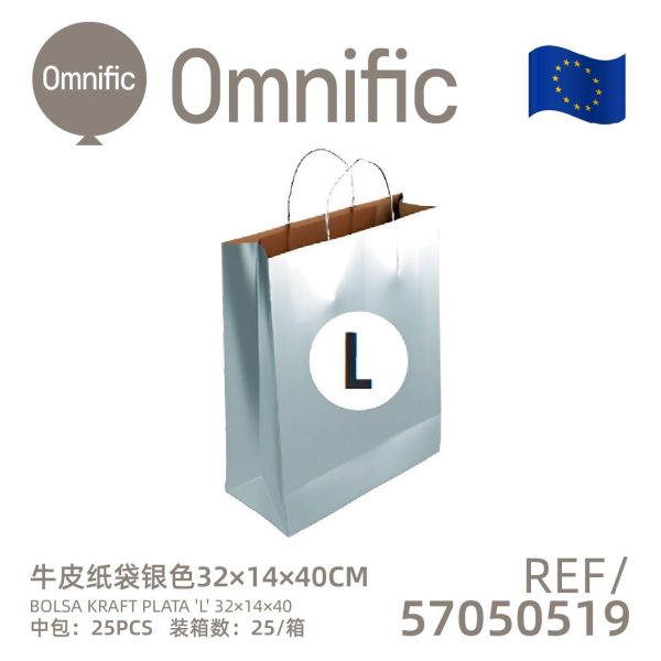 C.B. 8436557050519BOLSA KRAFT PLATA ‘L’ 32*14X40