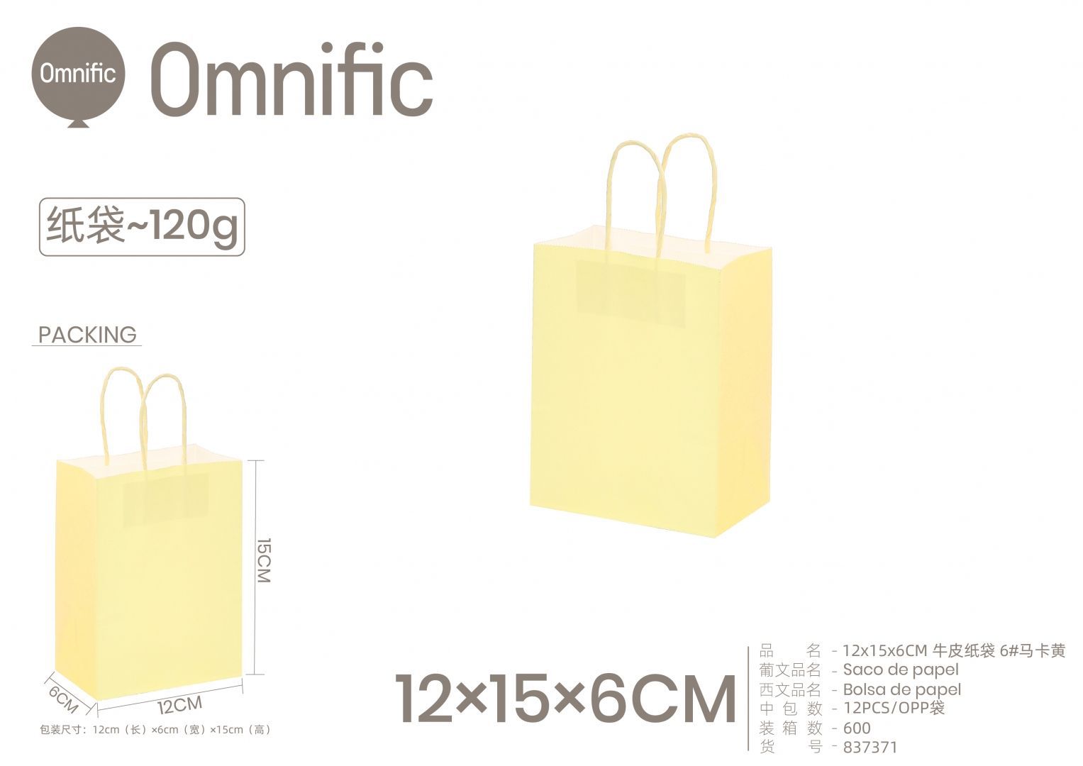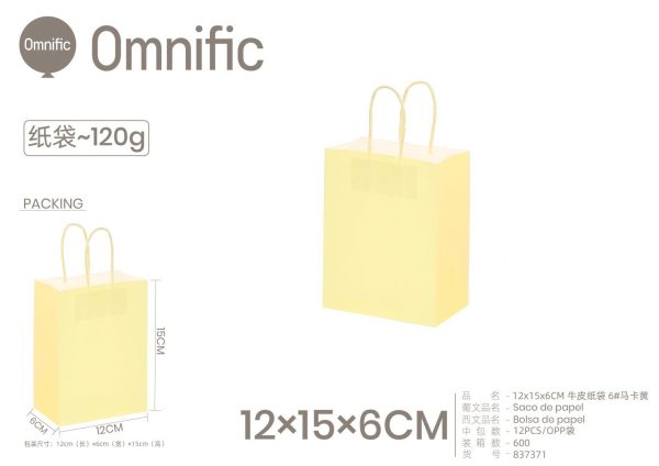 C.B. 5600936837371SACO DE PAPEL KRAFT 12*15*6CM AMARELO PASTEL