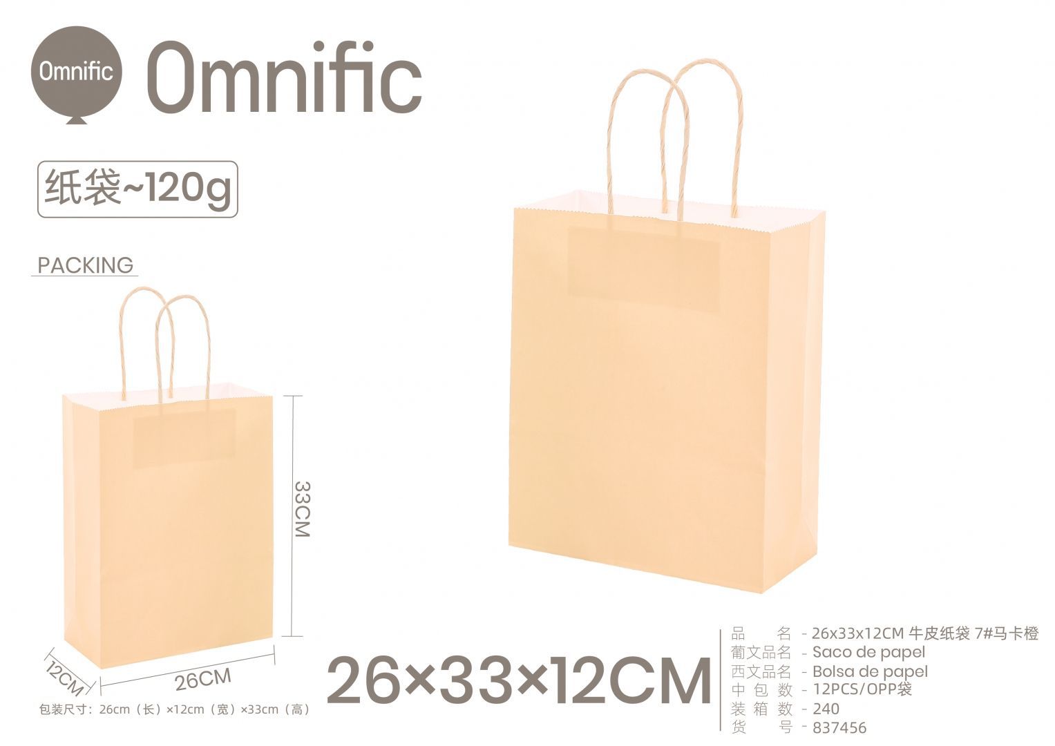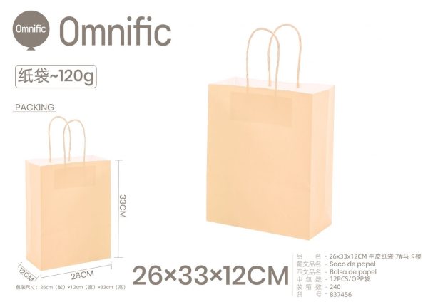 C.B. 5600936837456SACO DE PAPEL KRAFT 26*33*12CM LARANJA PASTEL