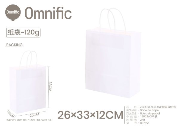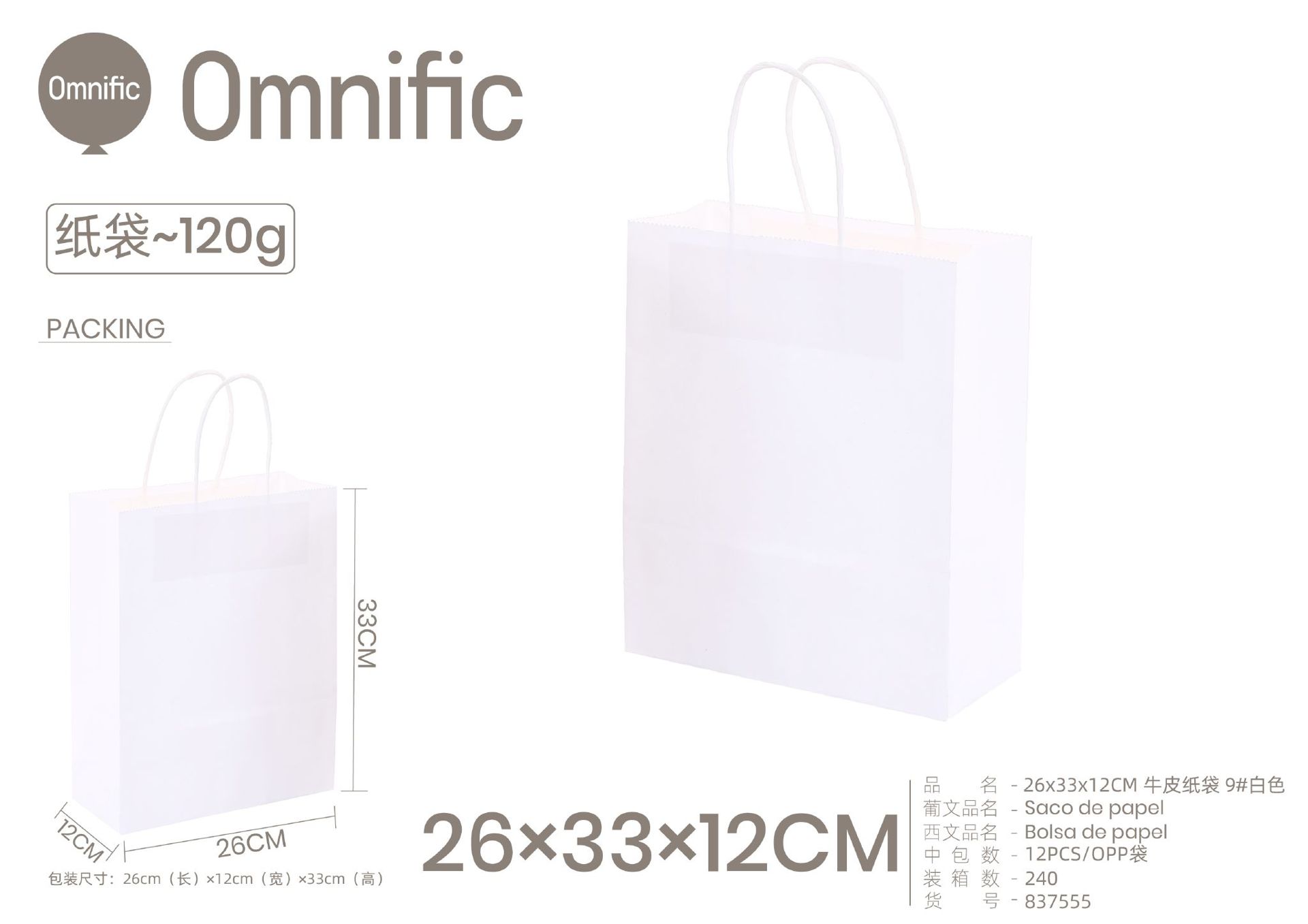 C.B. 5600936837555SACO DE PAPEL KRAFT 26*33*12CM BRANCO