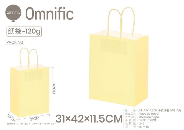 C.B. 5600936837418SACO DE PAPEL KRAFT 31*42*11.5CM AMARELO PASTEL