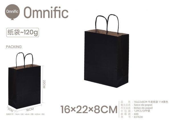 C.B. 5600936837630SACO DE PAPEL KRAFT 16*22*8CM PRETO
