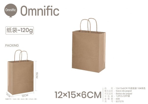 C.B. 5600936837579SACO DE PAPEL KRAFT 12*15*6CM COR NATURAL