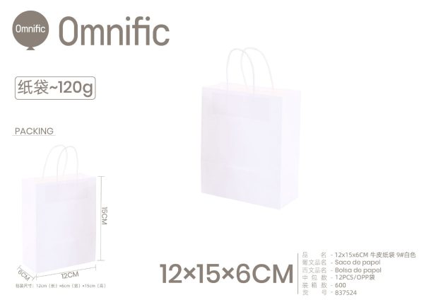 C.B. 5600936837524SACO DE PAPEL KRAFT 12*15*6CM BRANCO