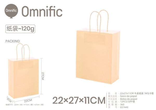 C.B. 5600936838095SACO DE PAPEL KRAFT 22*27*11CM LARANJA