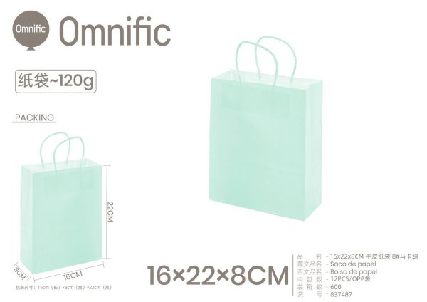 C.B. 5600936837487SACO DE PAPEL KRAFT 16*22*8CM VERDE PASTEL