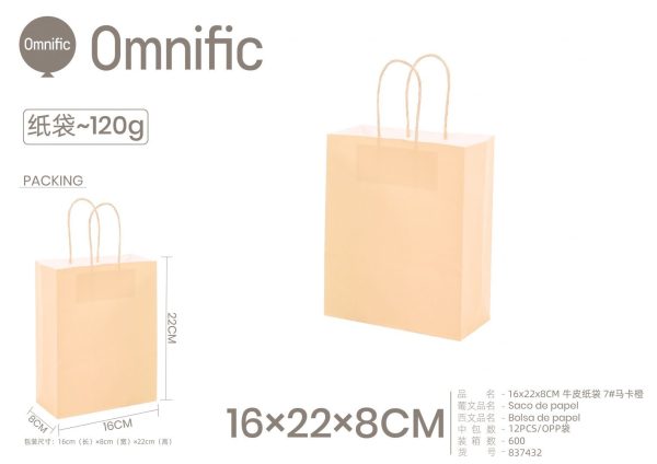 C.B. 5600936837432SACO DE PAPEL KRAFT 16*22*8CM LARANJA PASTEL