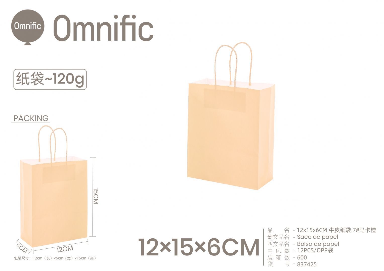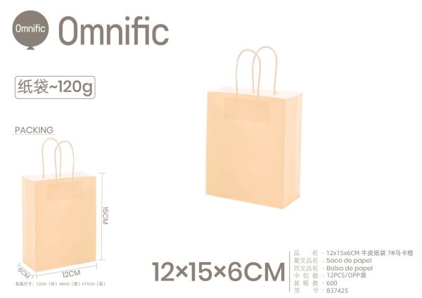 C.B. 5600936837425SACO DE PAPEL KRAFT 12*15*6CM LARANJA PASTEL