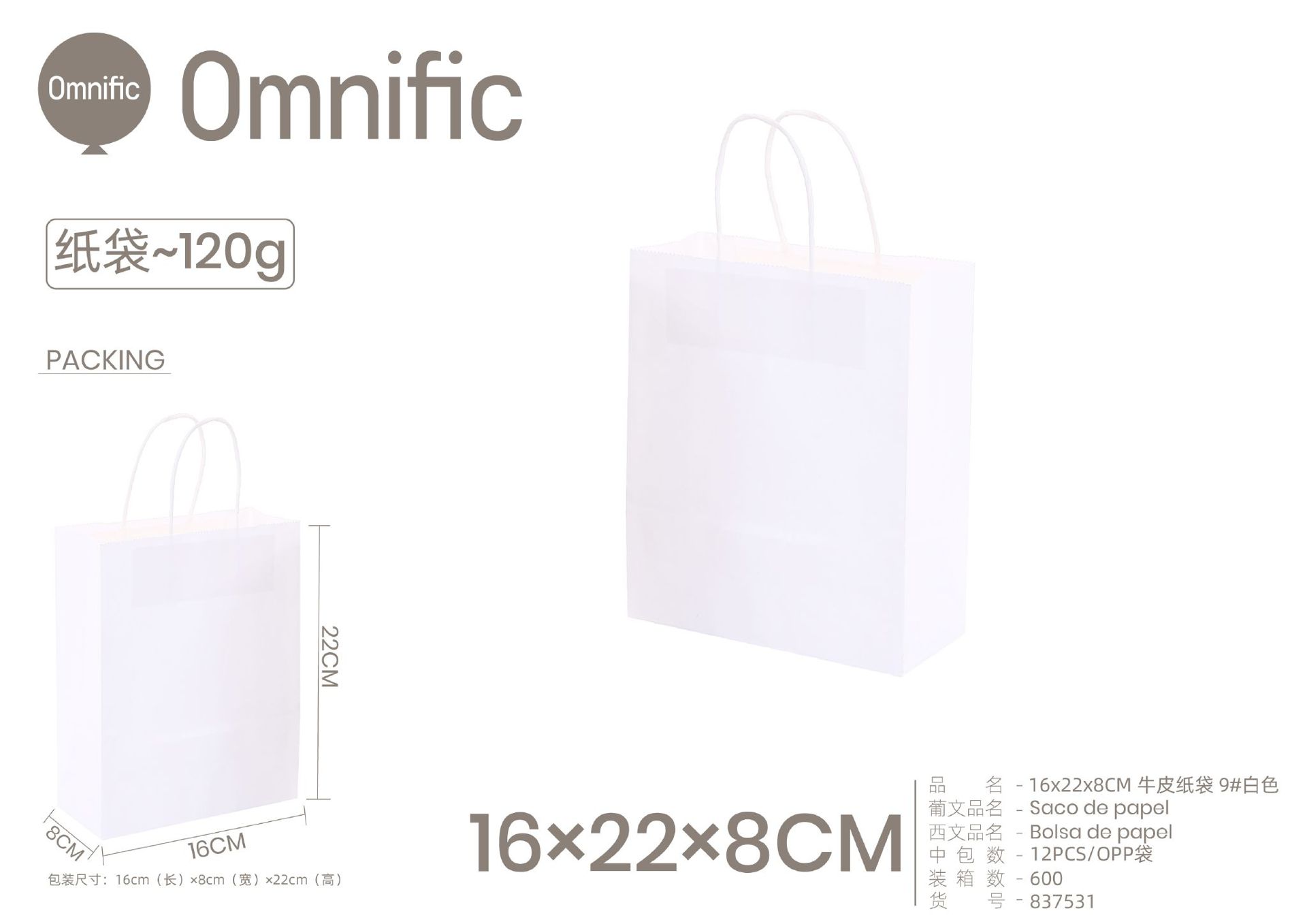C.B. 5600936837531SACO DE PAPEL KRAFT 16*22*8CM BRANCO