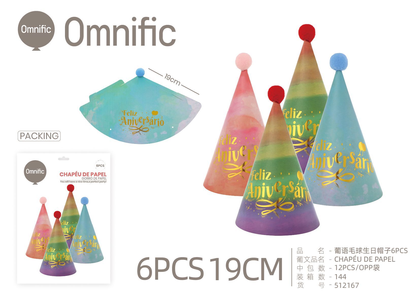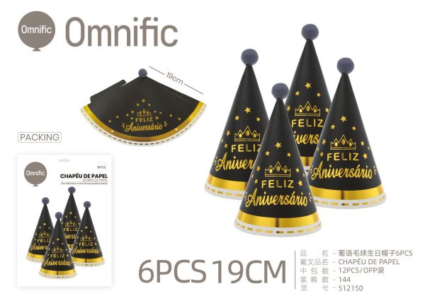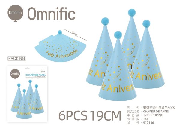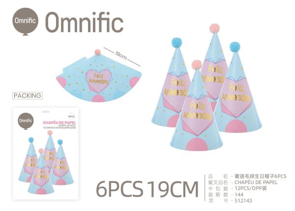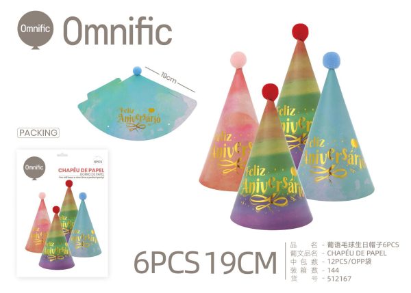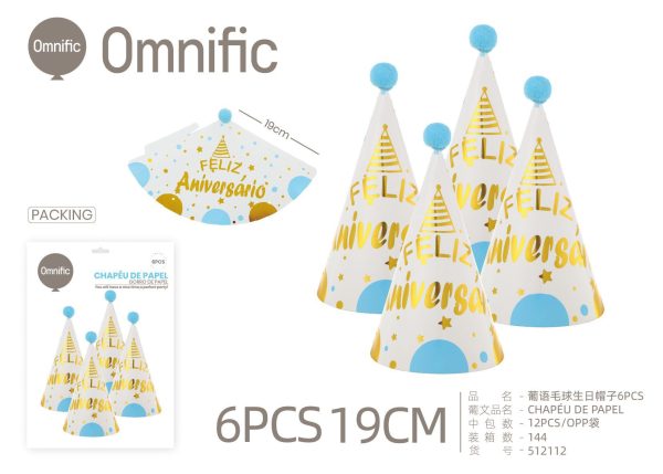 C.B. 5606858512167CHAPEU DE PAPEL F.ANIVERSARIO 6PCS