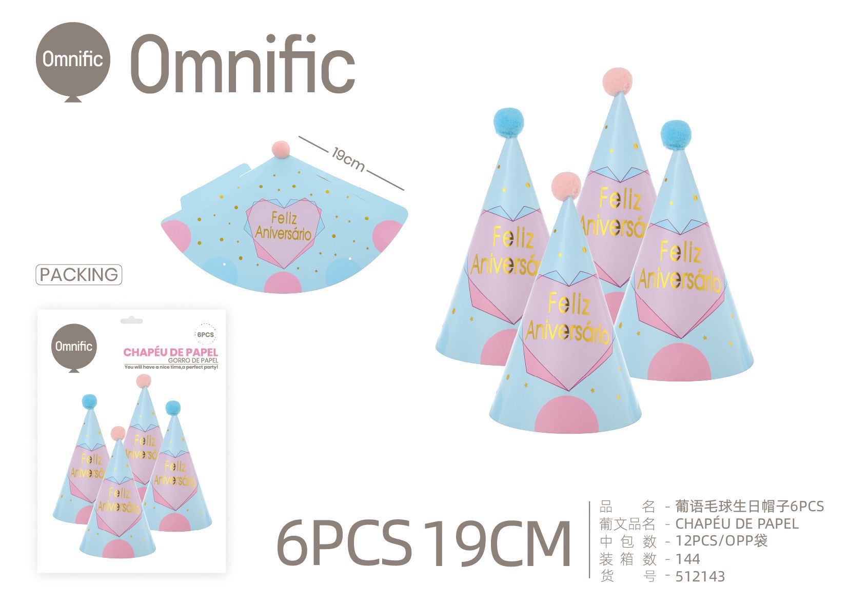 C.B. 5606858512143CHAPEU DE PAPEL F.ANIVERSARIO 6PCS