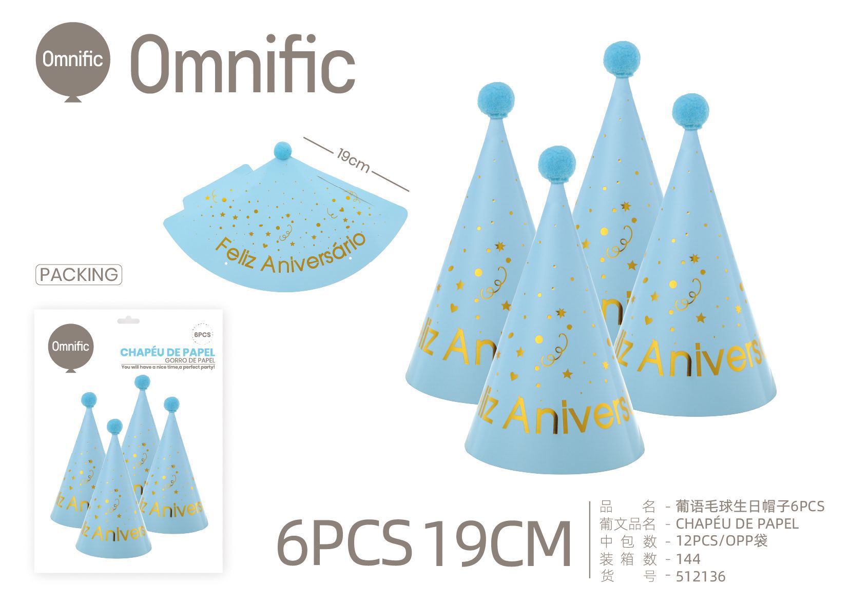 C.B. 5606858512150CHAPEU DE PAPEL F.ANIVERSARIO 6PCS