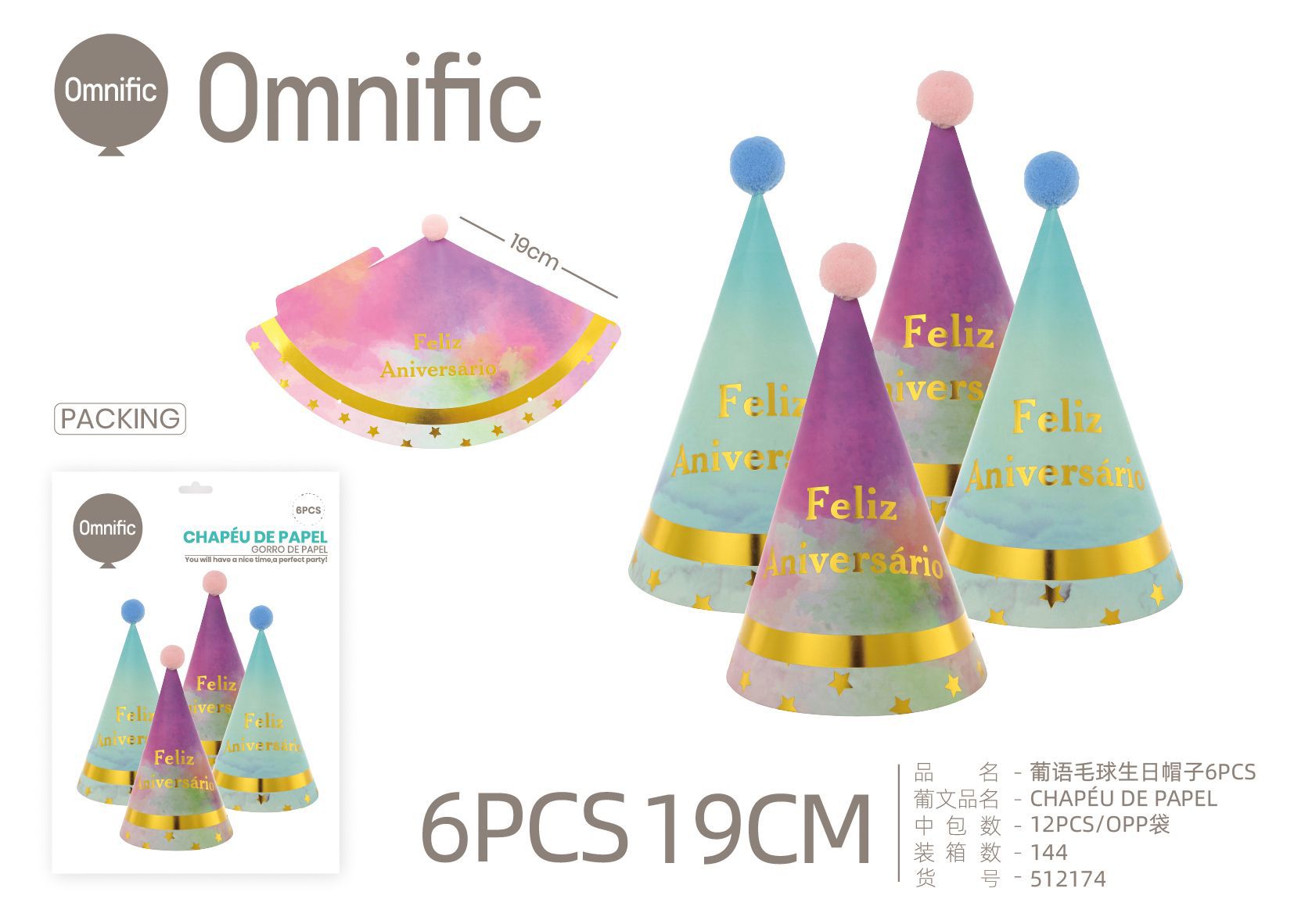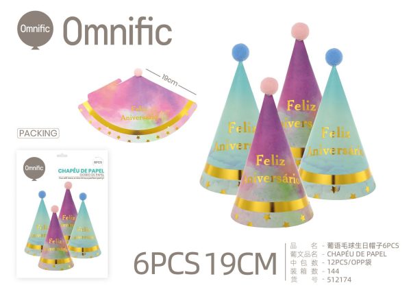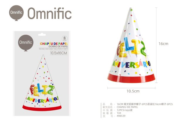 C.B. 5606858512174CHAPEU DE PAPEL F.ANIVERSARIO 6PCS