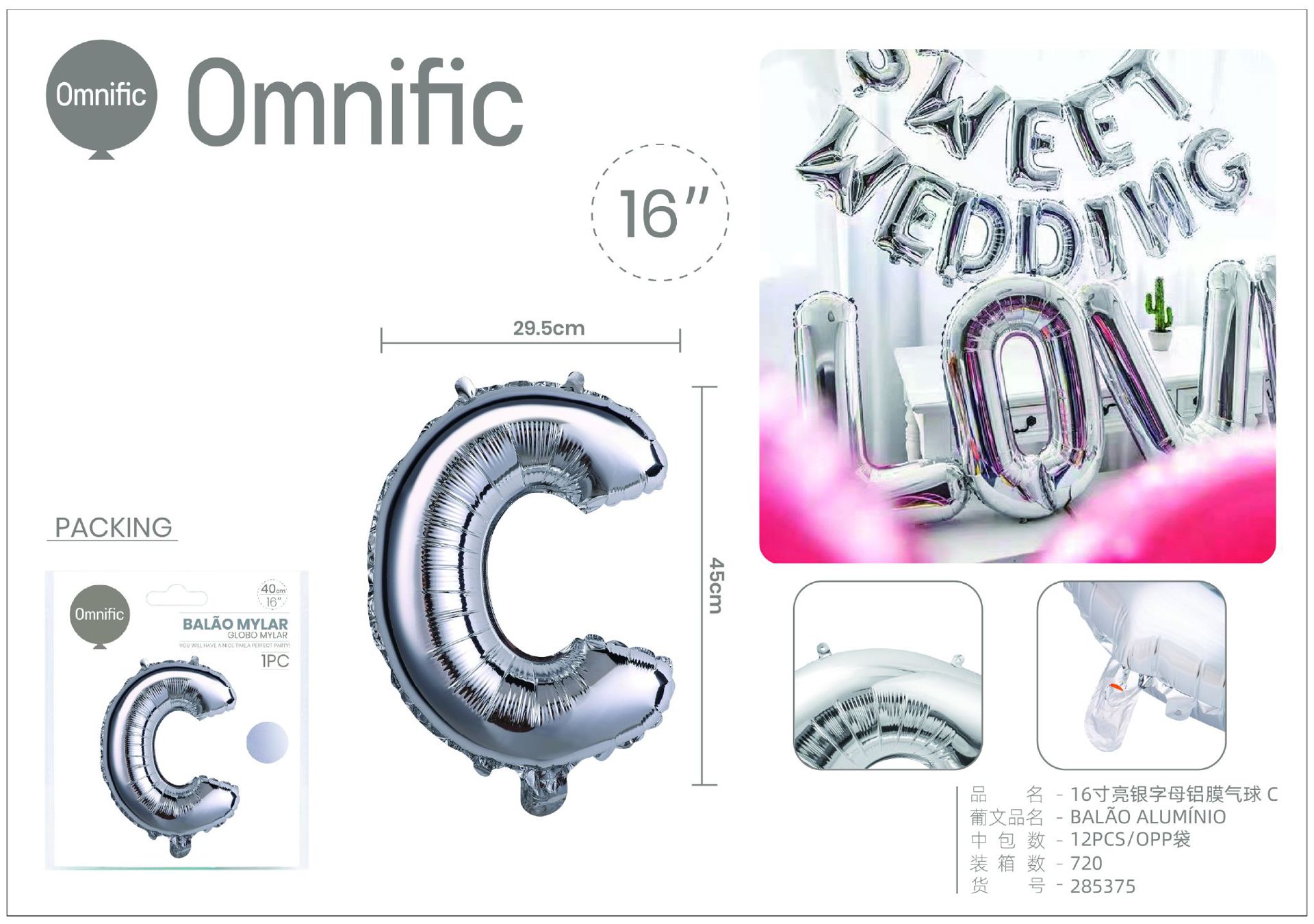 BALÕES DE ALUMÍNIO – LETRA 16″/41CM