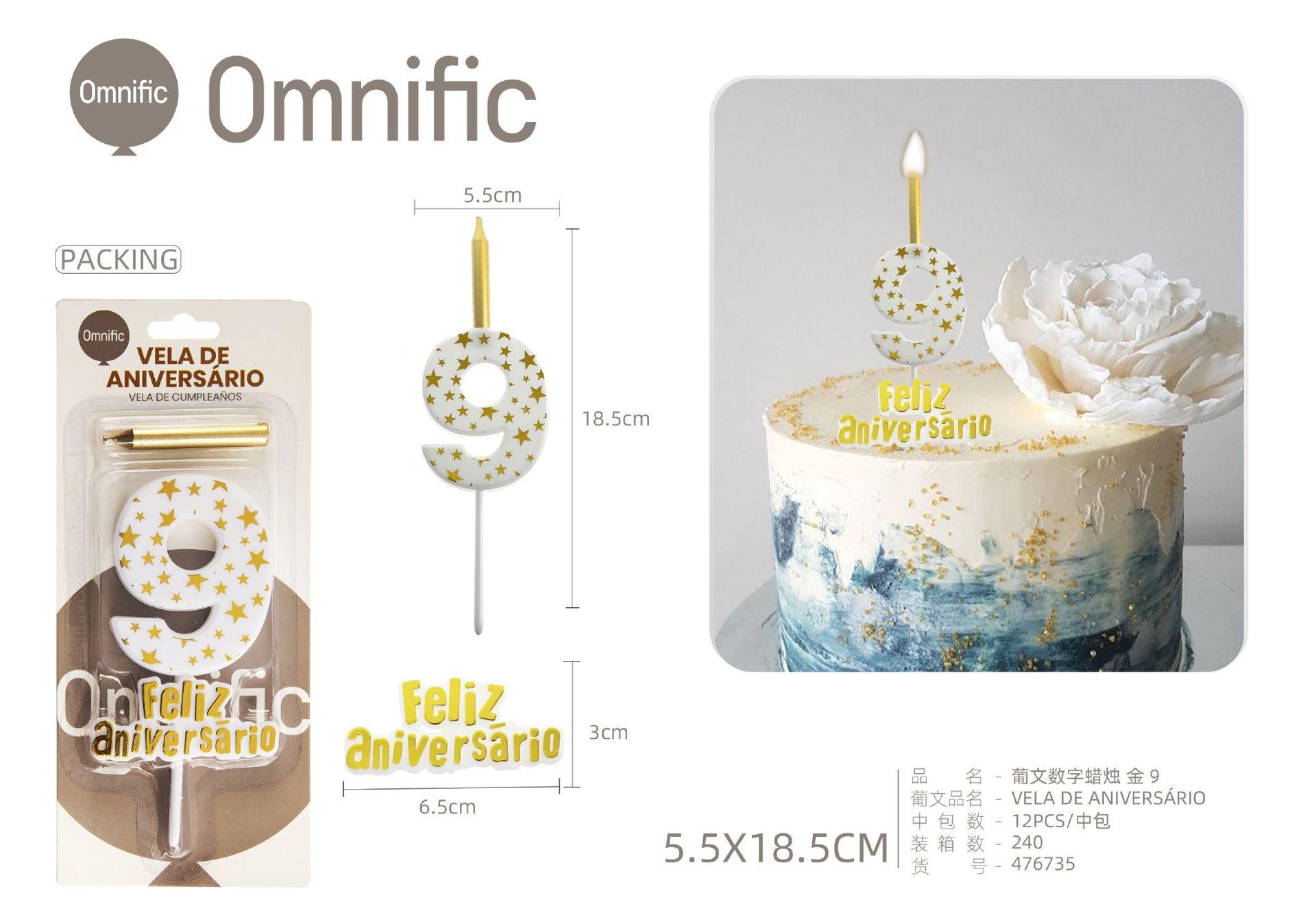SUPORTE PARA VELA NUMÉRICA DOURADO ESTRELA 18,8CM