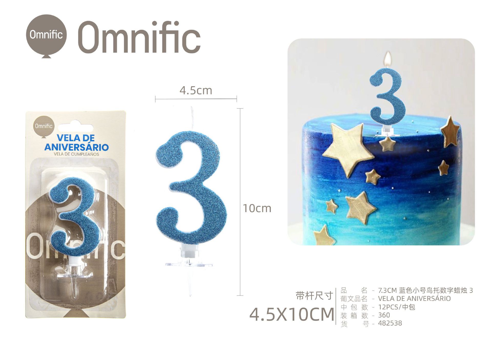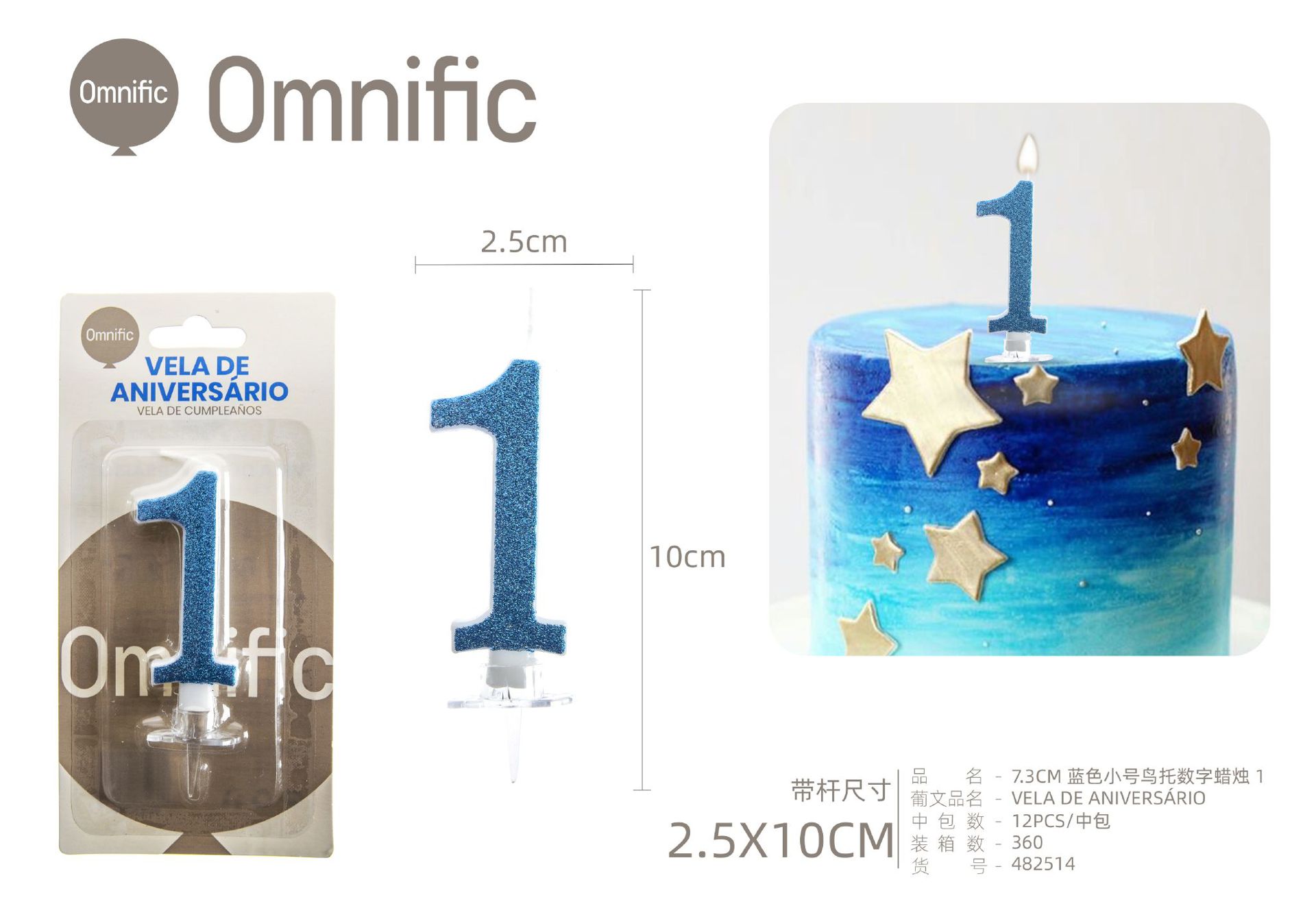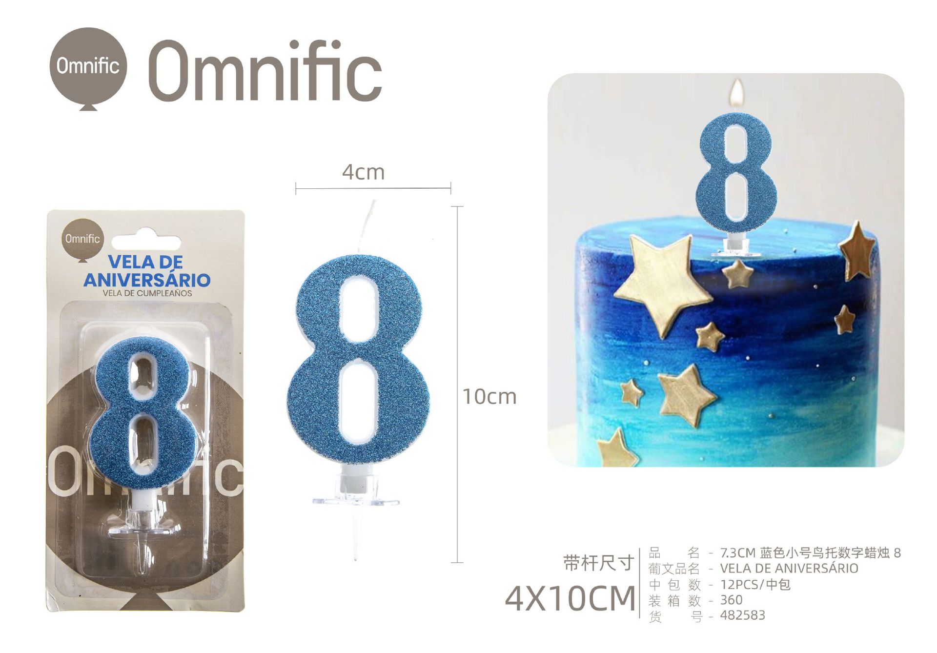 VELA NUMÉRICA AZUL COM GLITTER 8CM