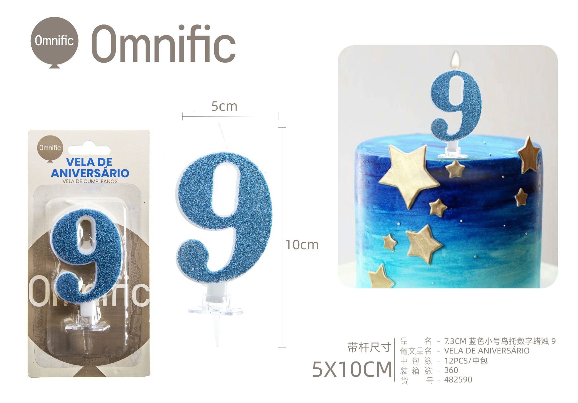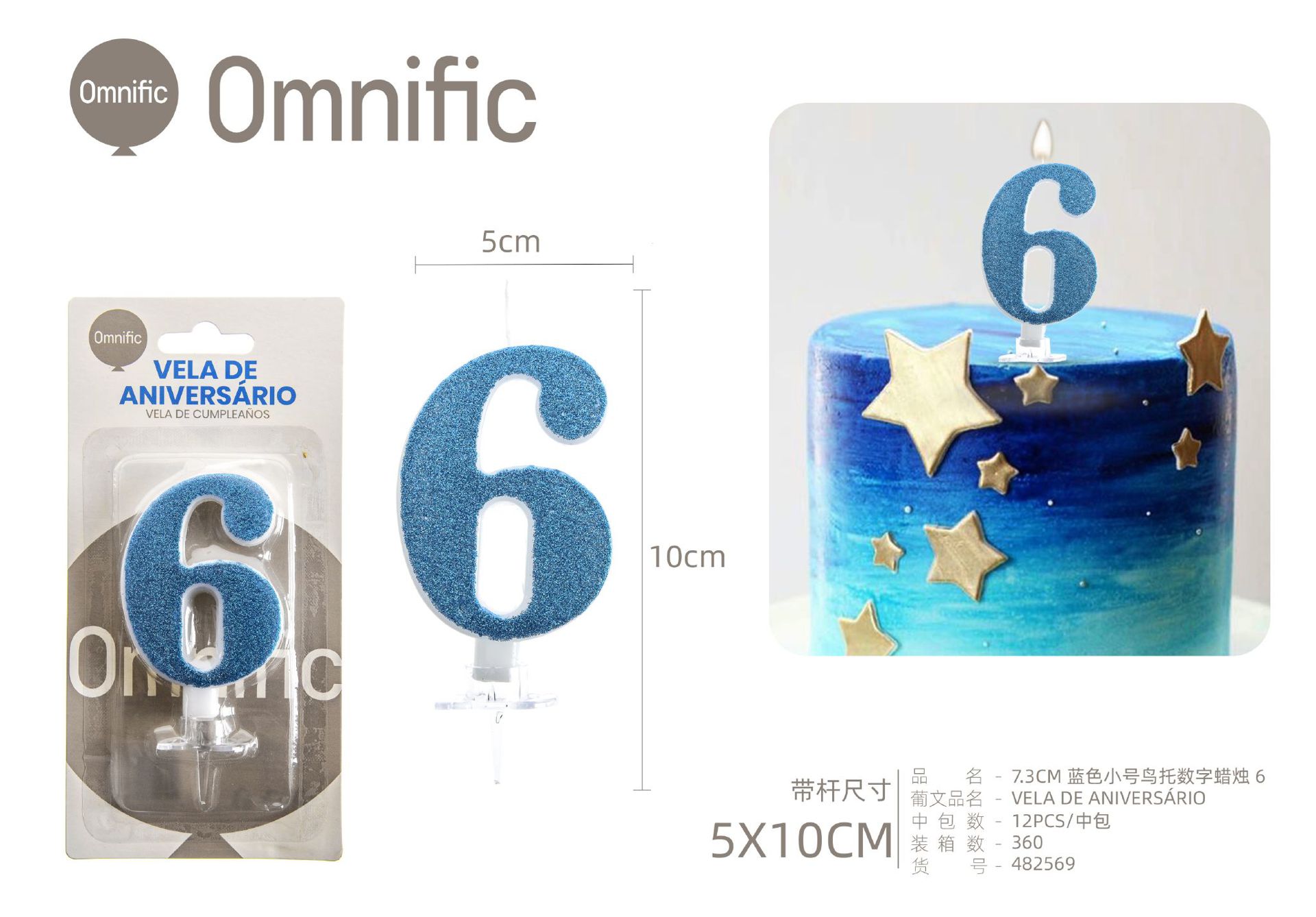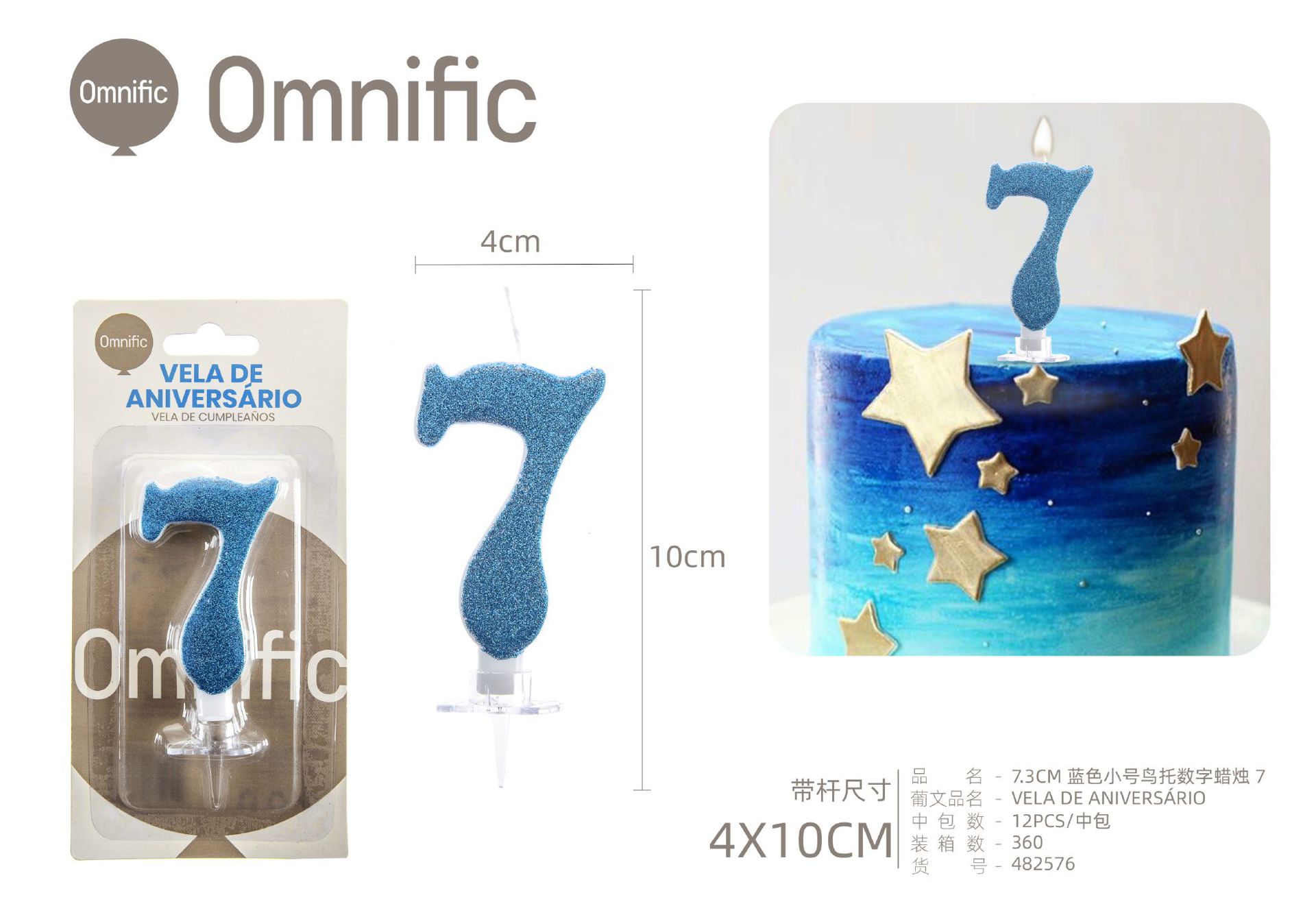 VELA NUMÉRICA AZUL COM GLITTER 8CM