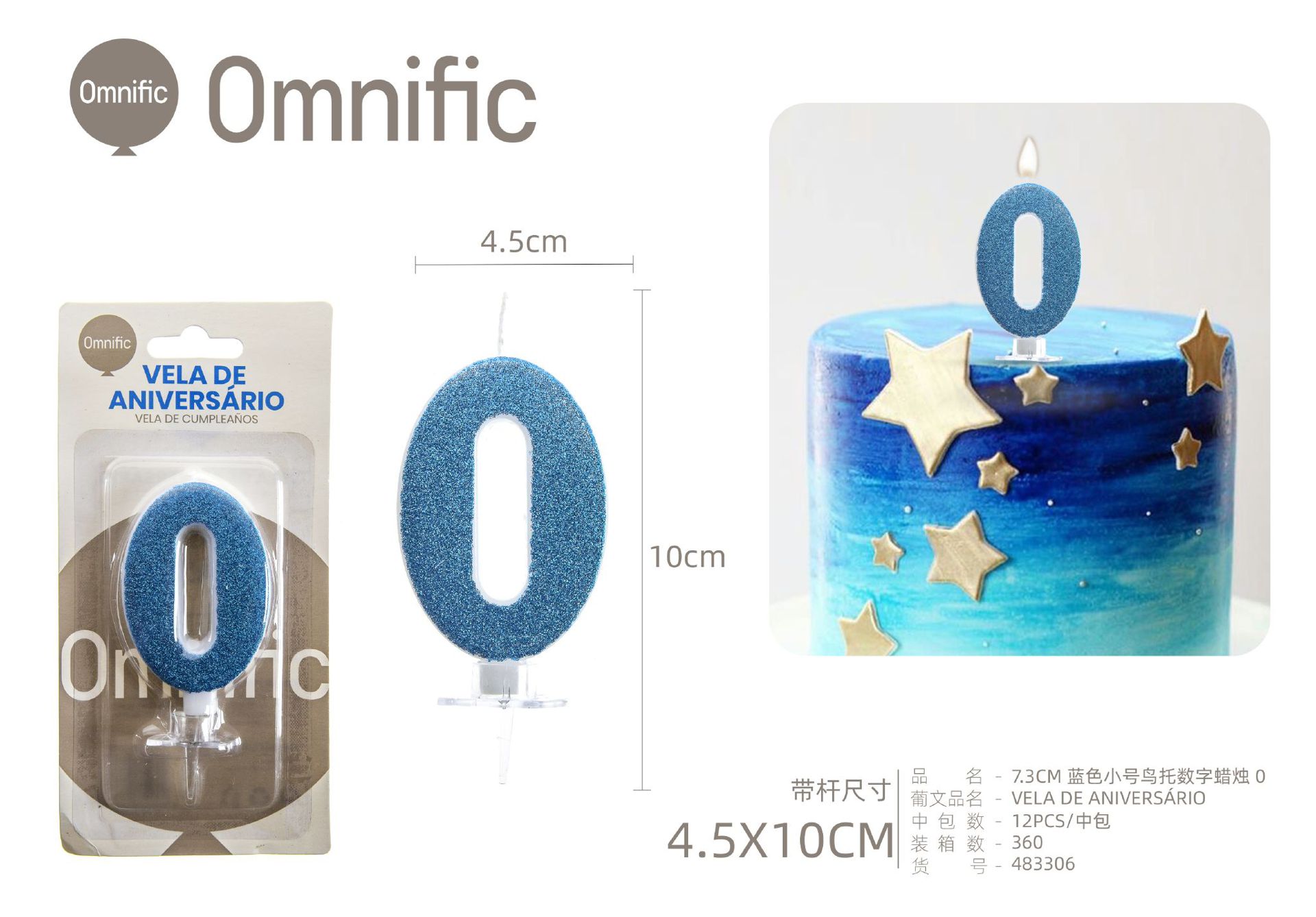 Quantidade de VELA NUMÉRICA AZUL COM GLITTER 8CM