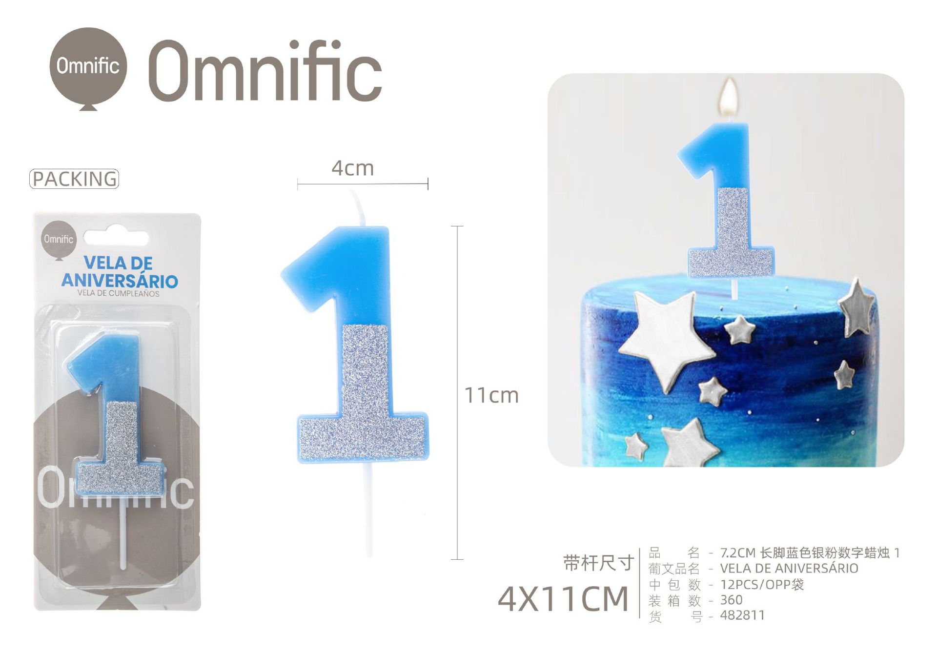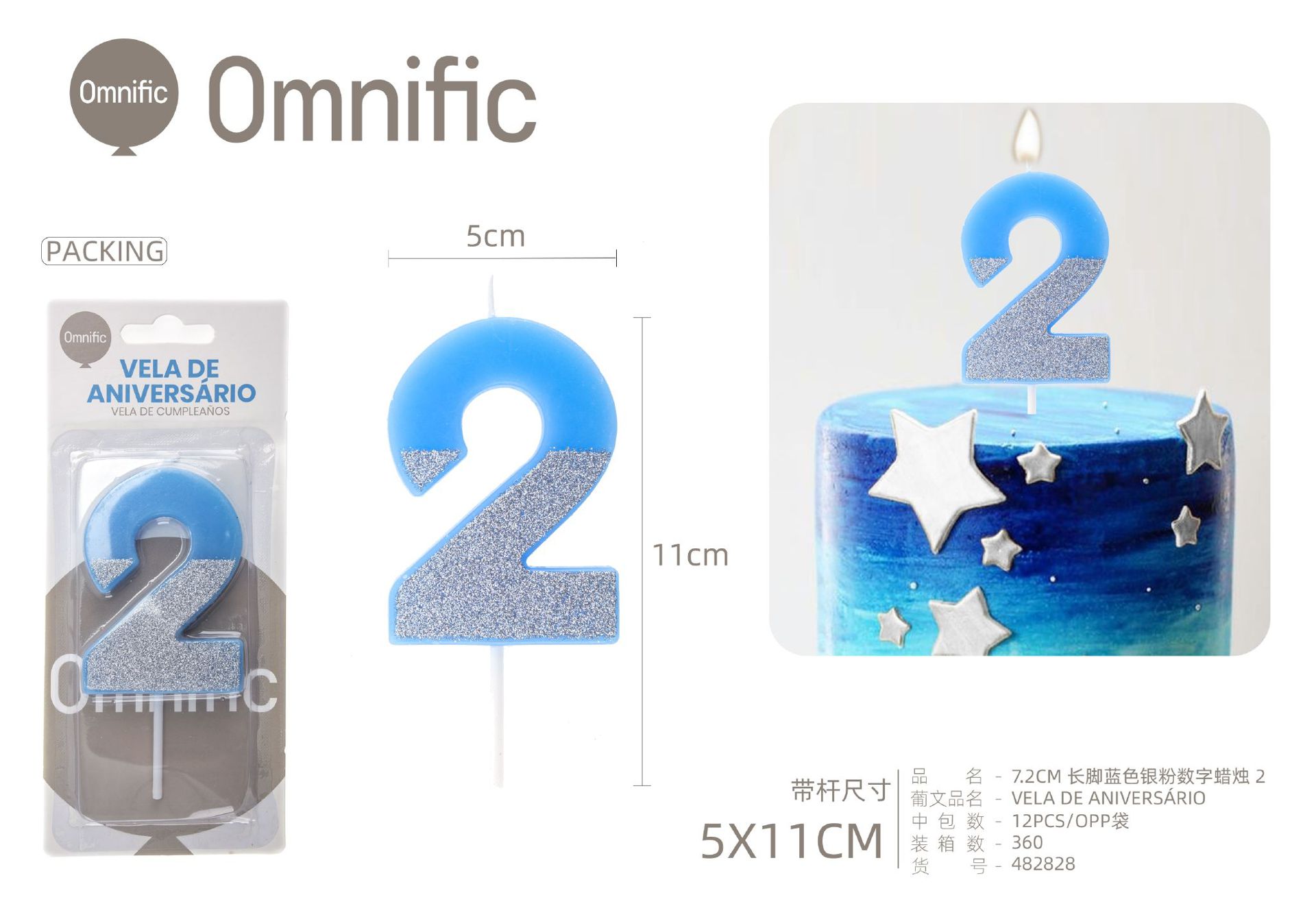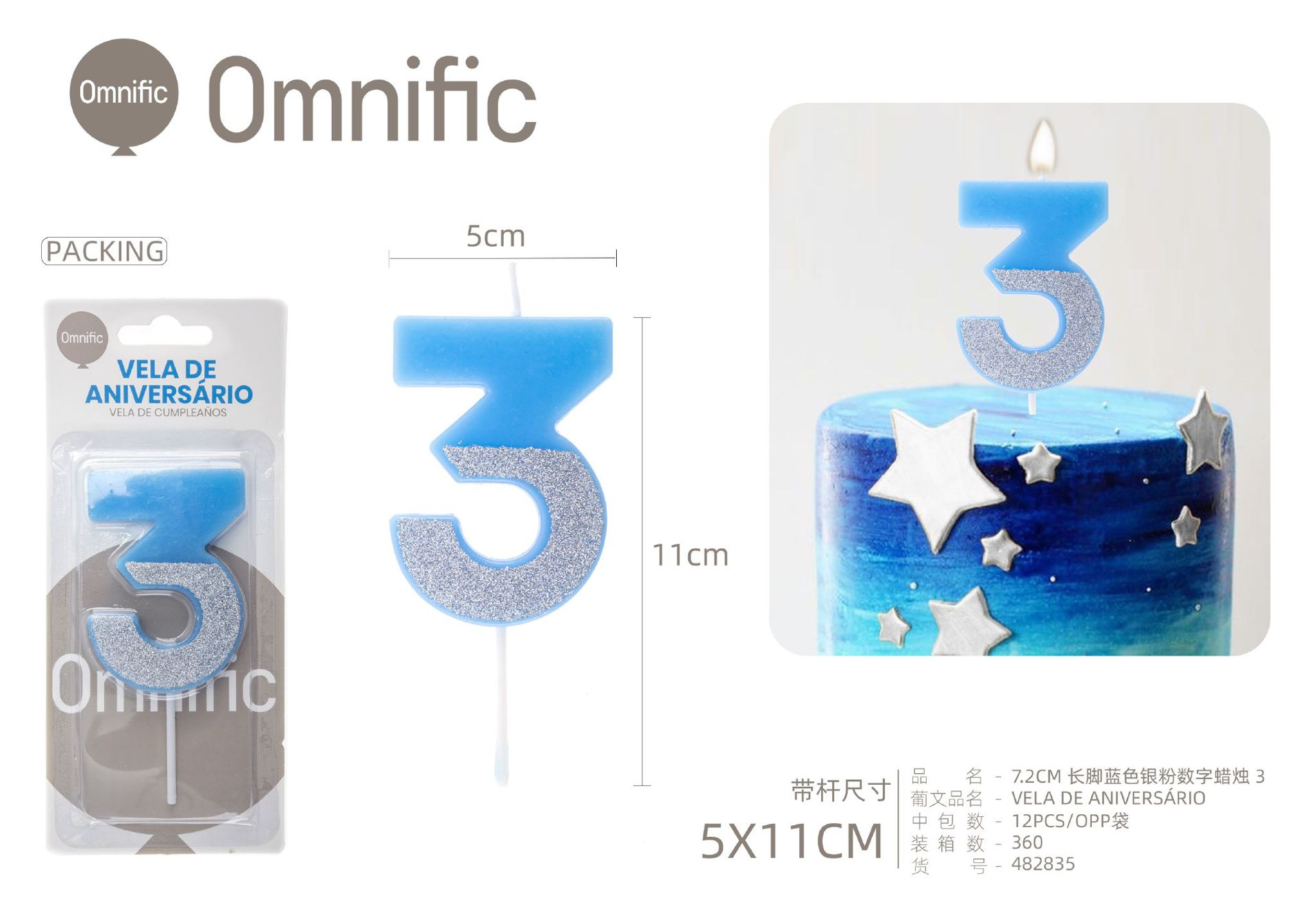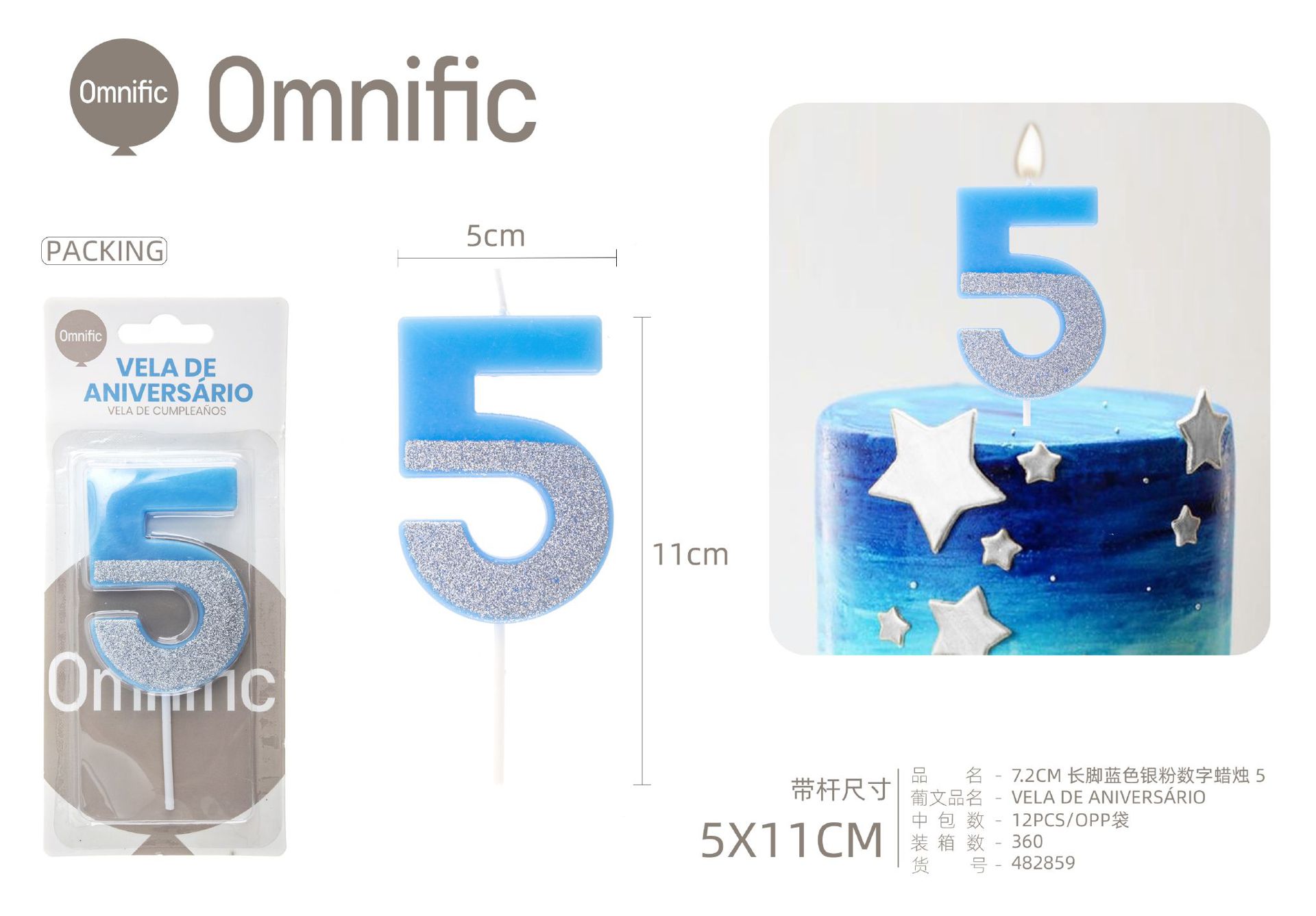 VELA NUMÉRICA BICOLOR AZUL E PRATEADA 5CM