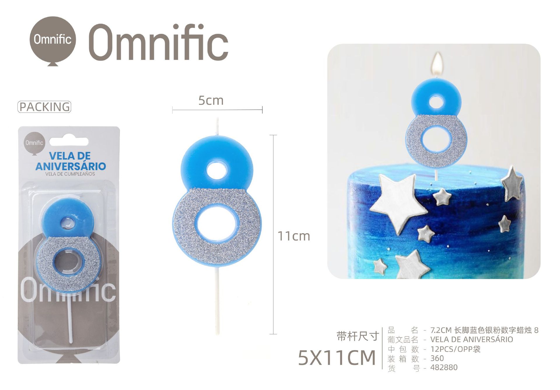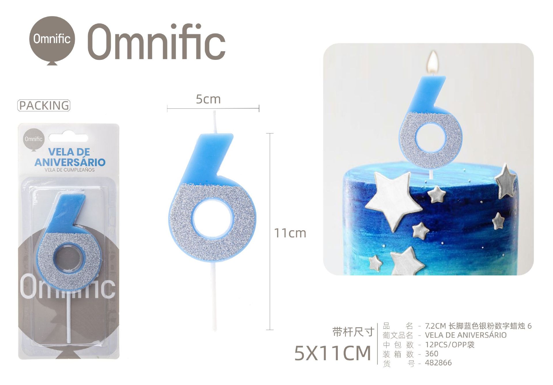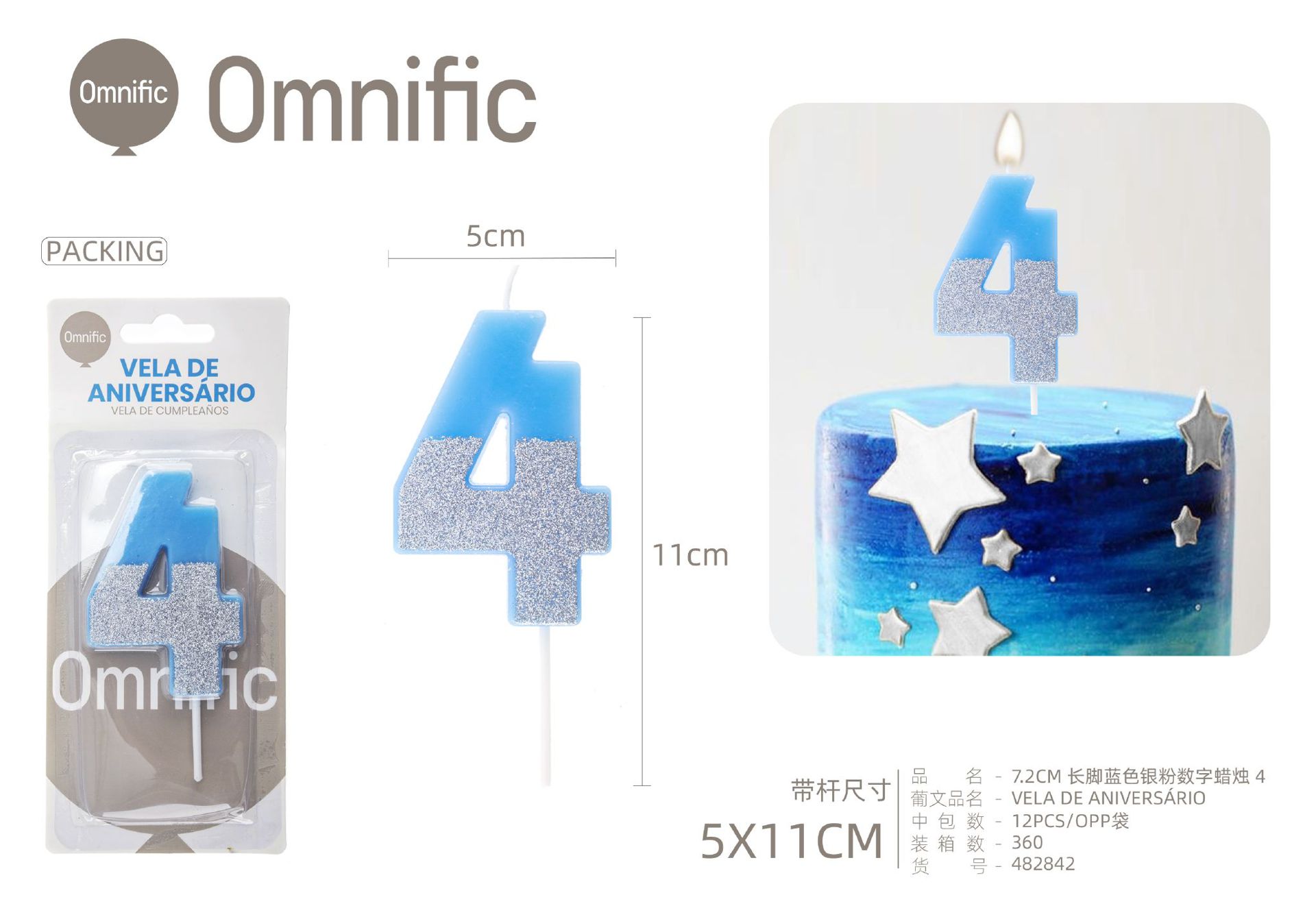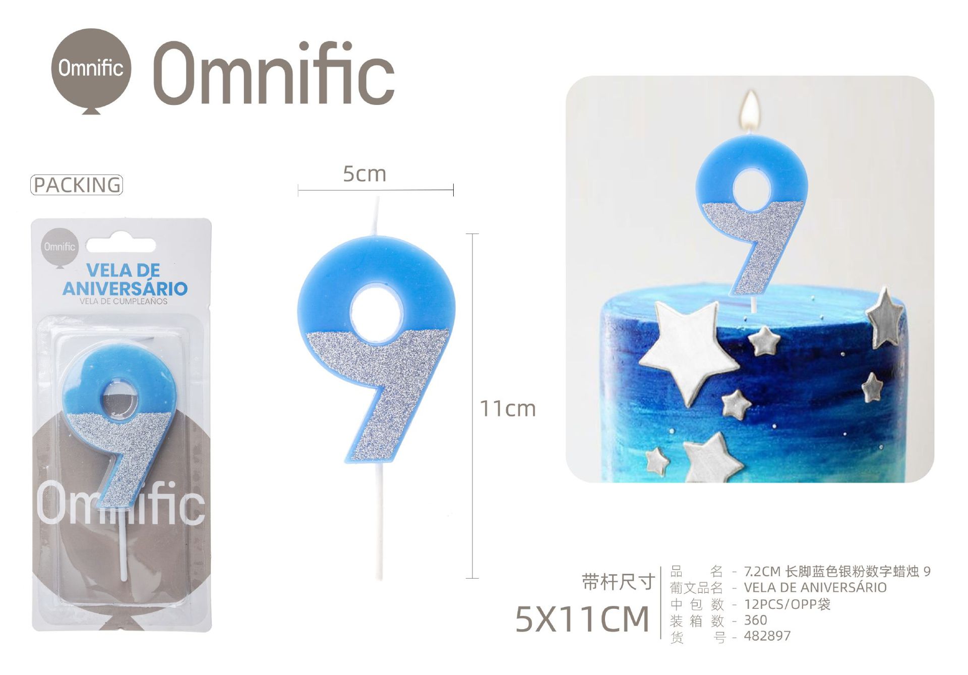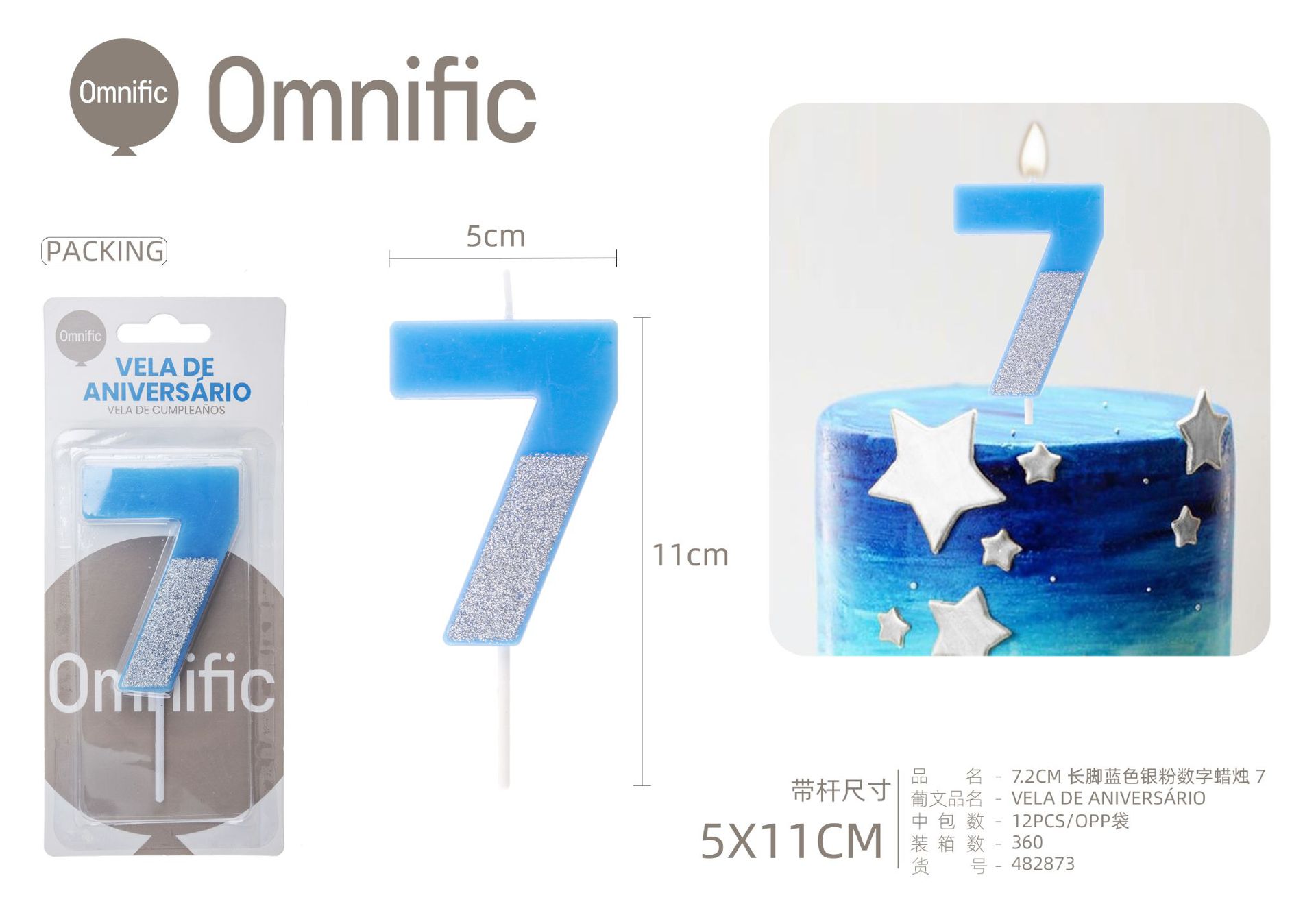 VELA NUMÉRICA BICOLOR AZUL E PRATEADA 5CM