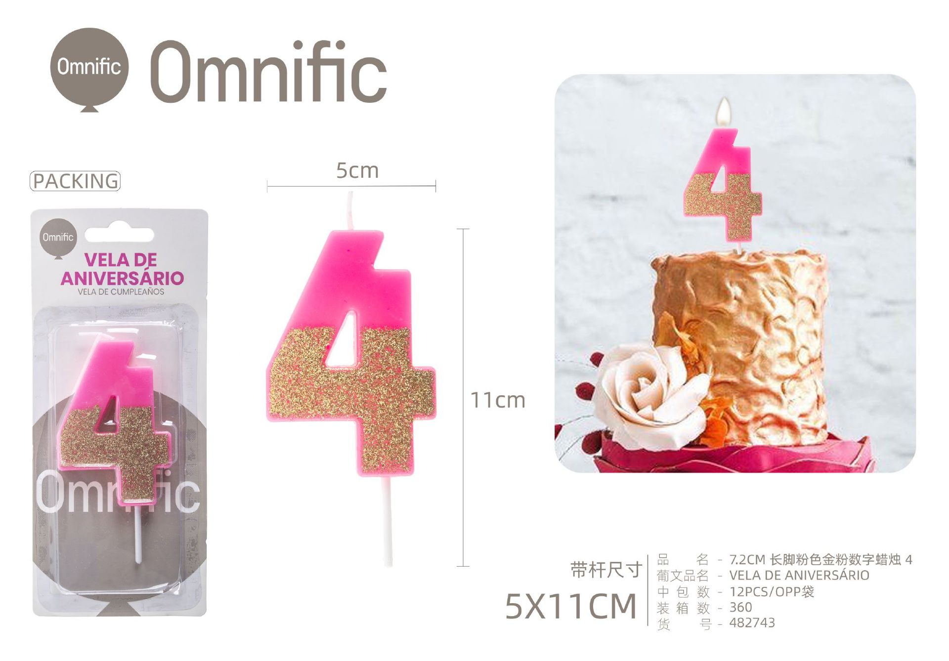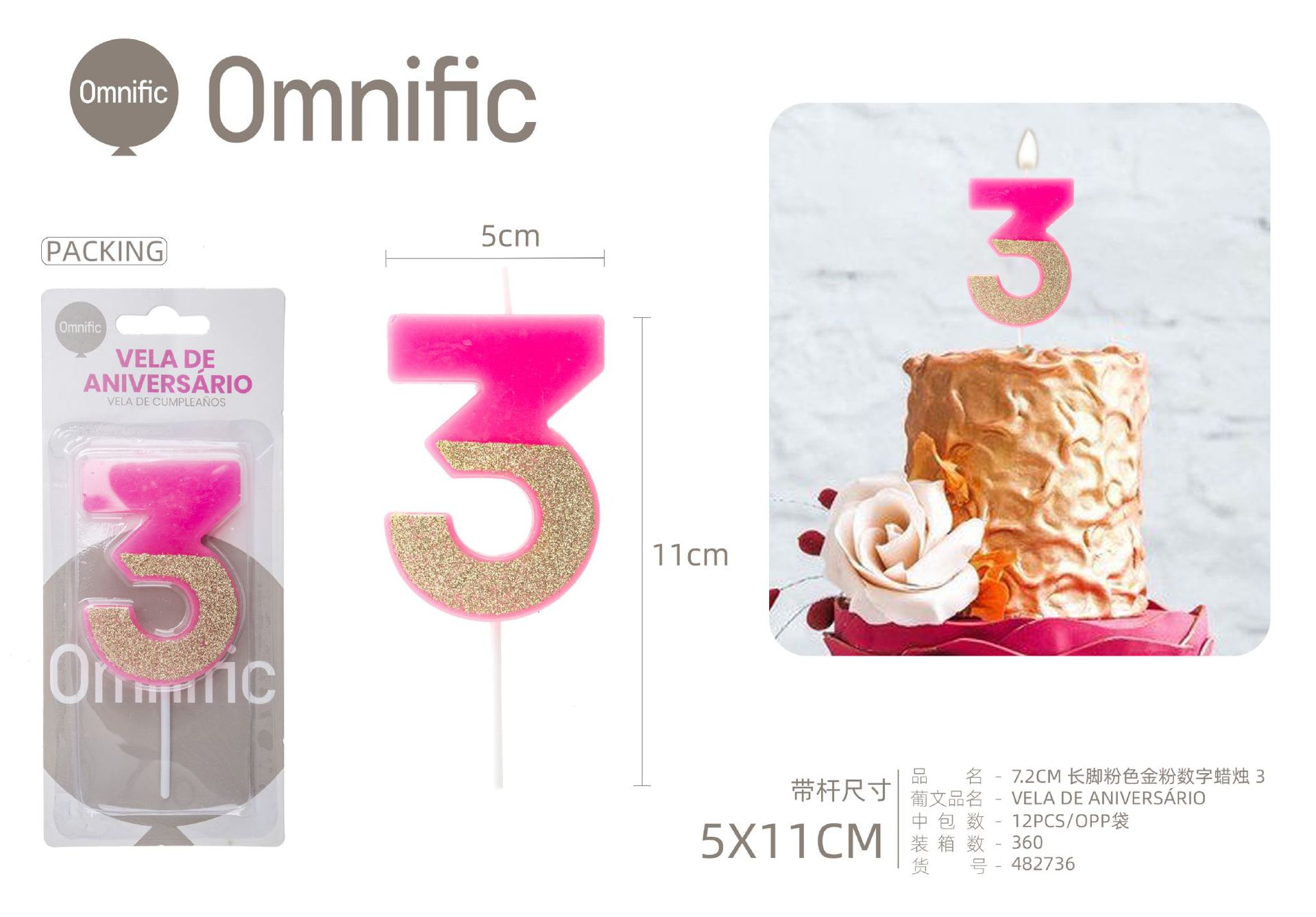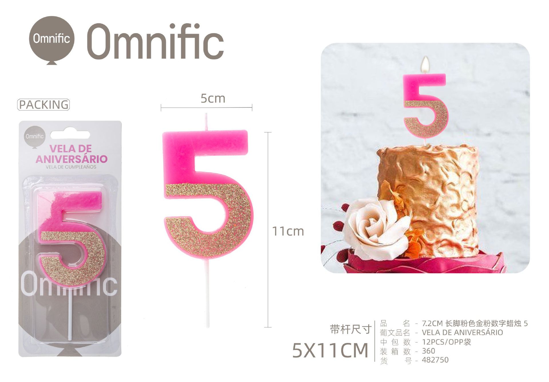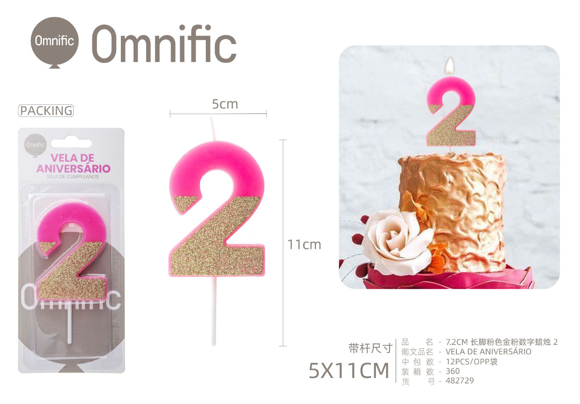 Quantidade de VELA NUMÉRICA BICOLOR ROSA E PRATEADA 5CM