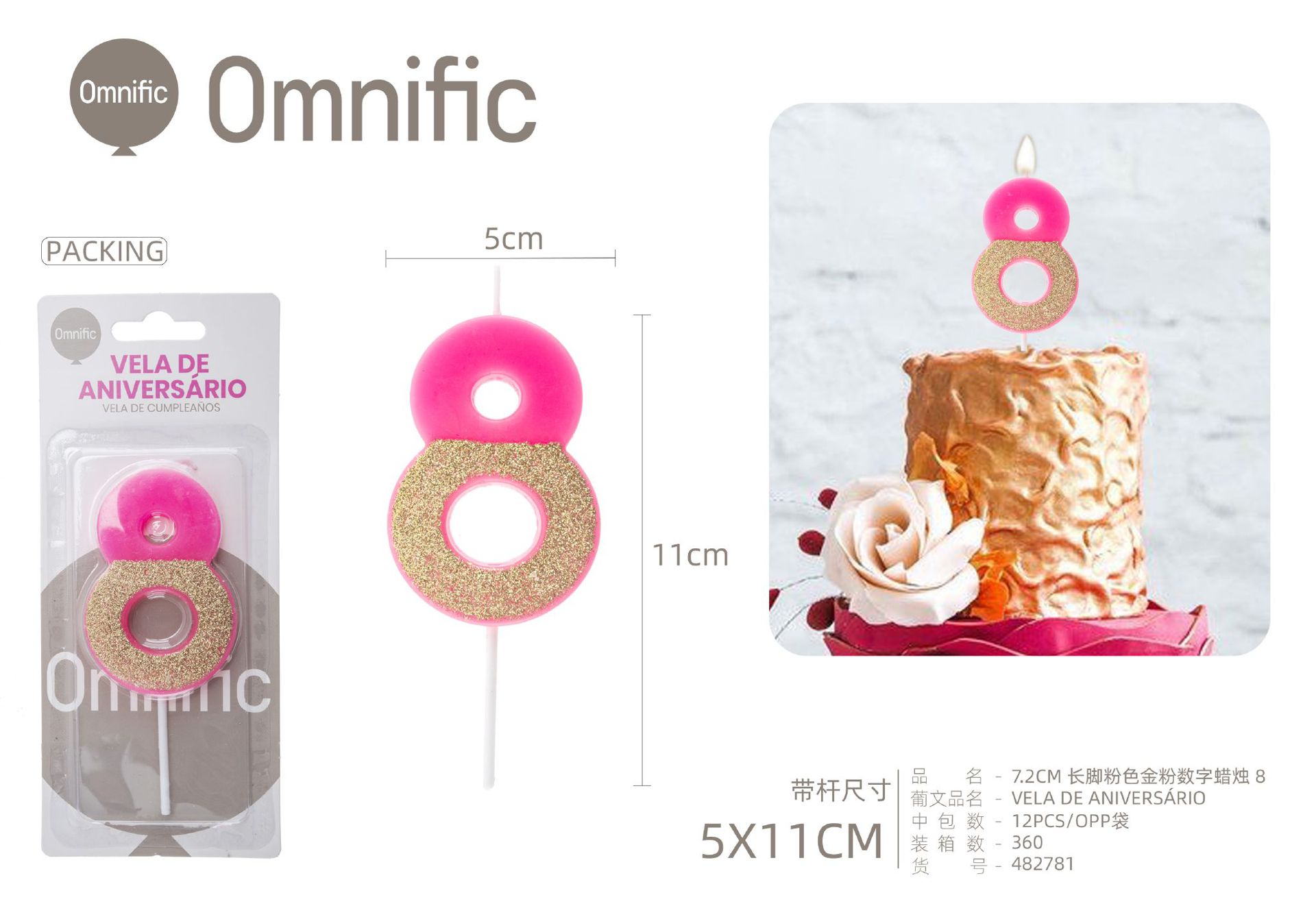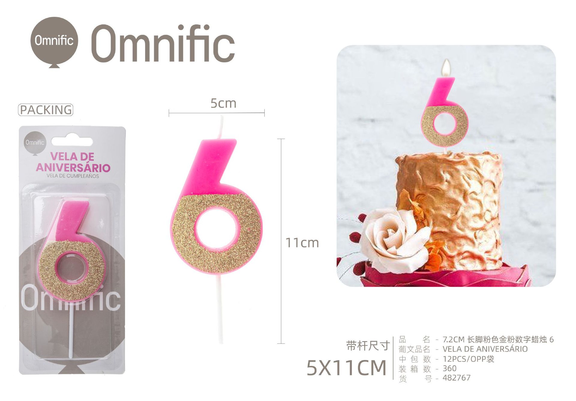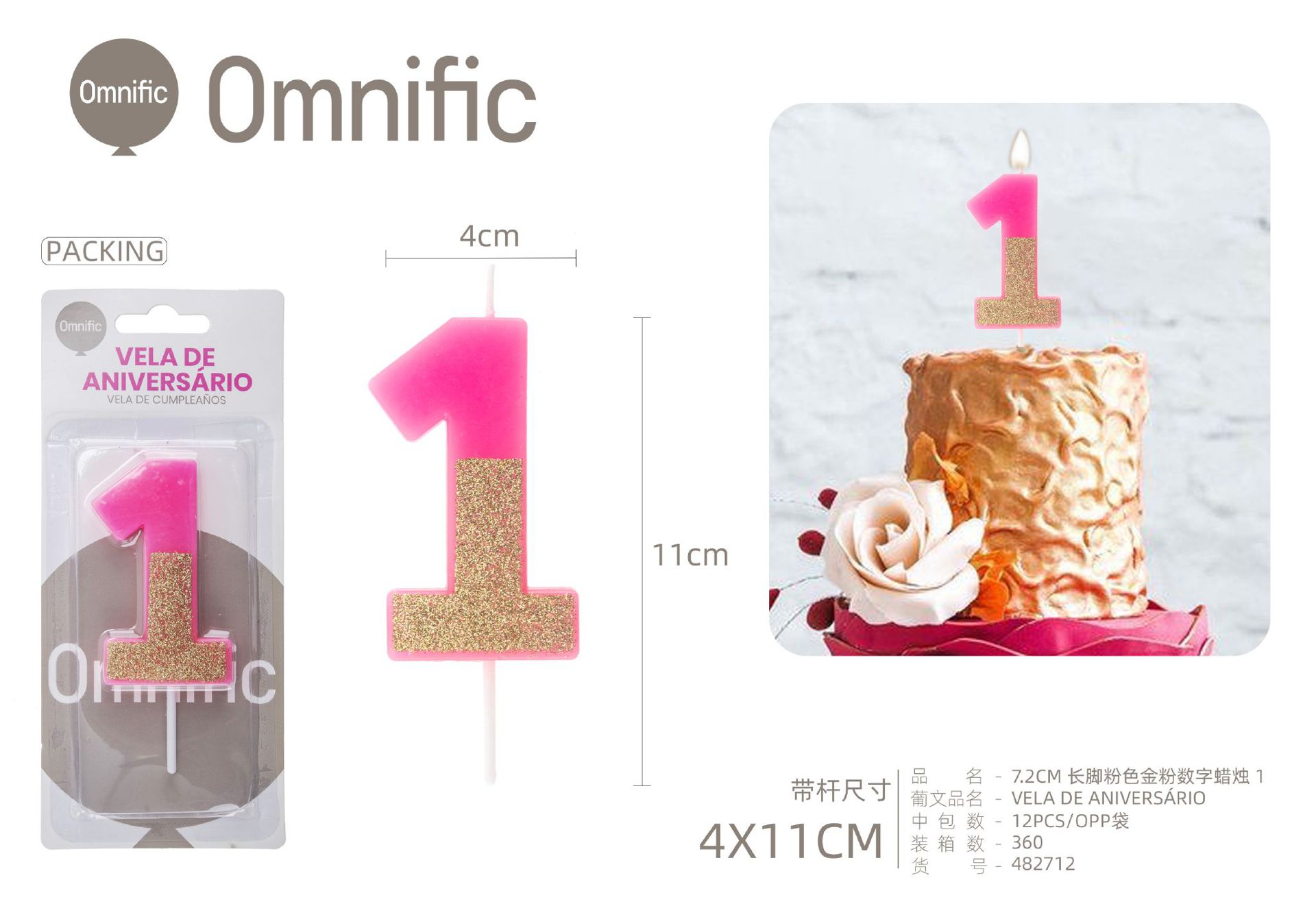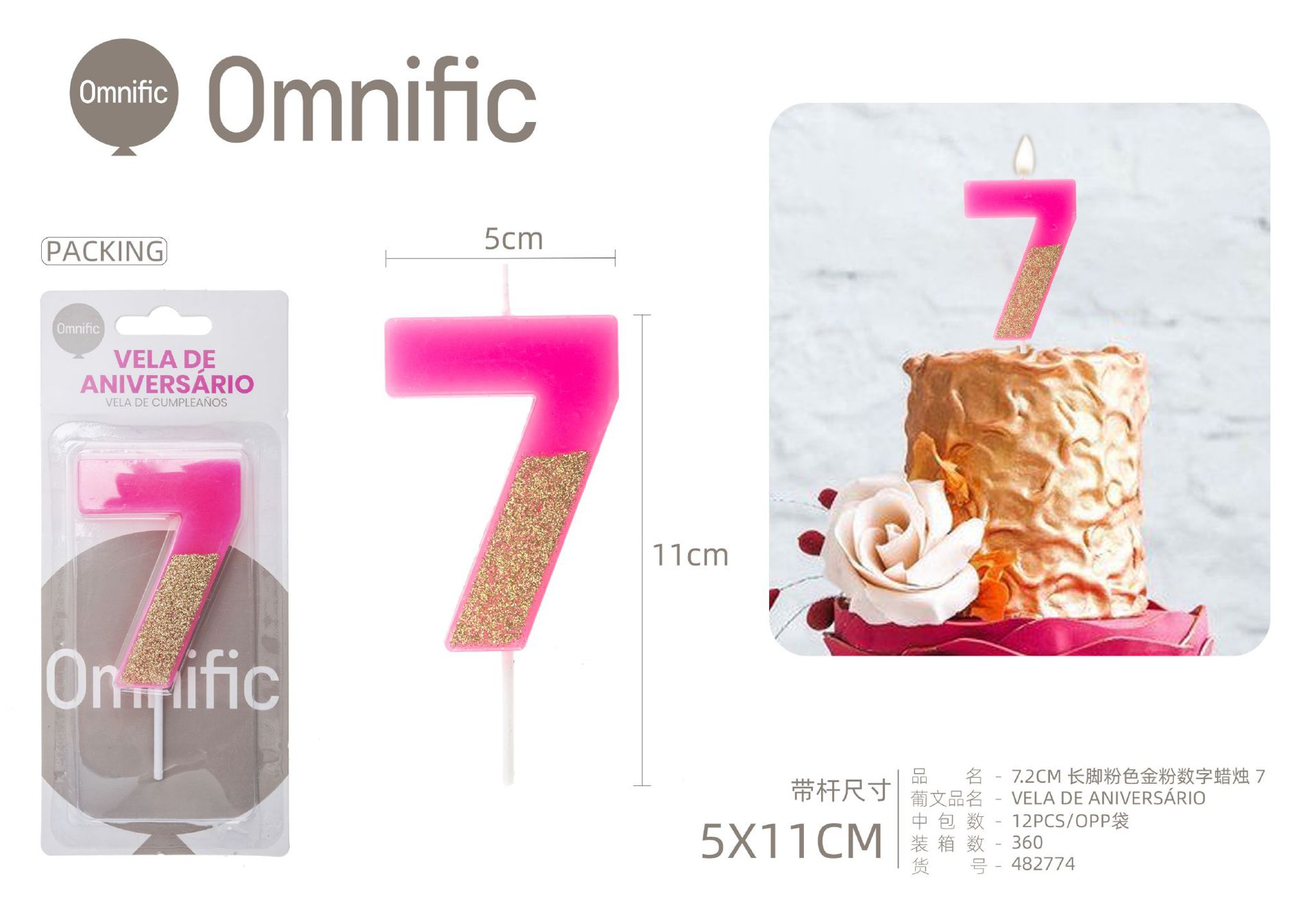 Quantidade de VELA NUMÉRICA BICOLOR ROSA E PRATEADA 5CM