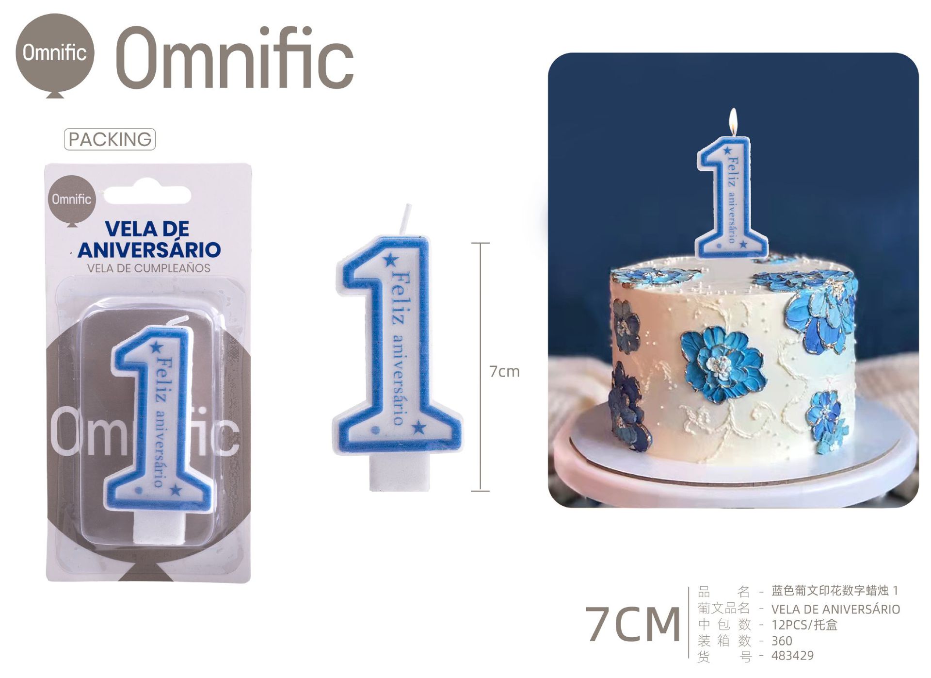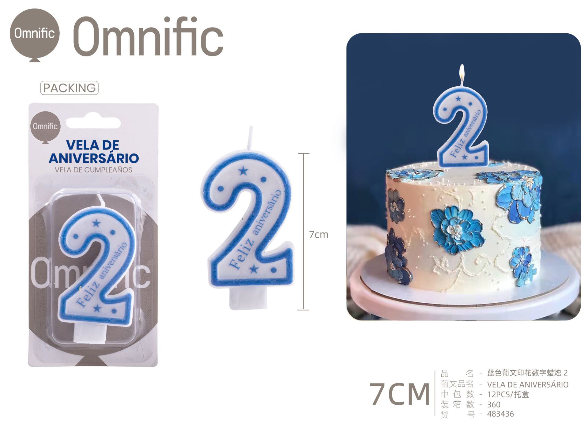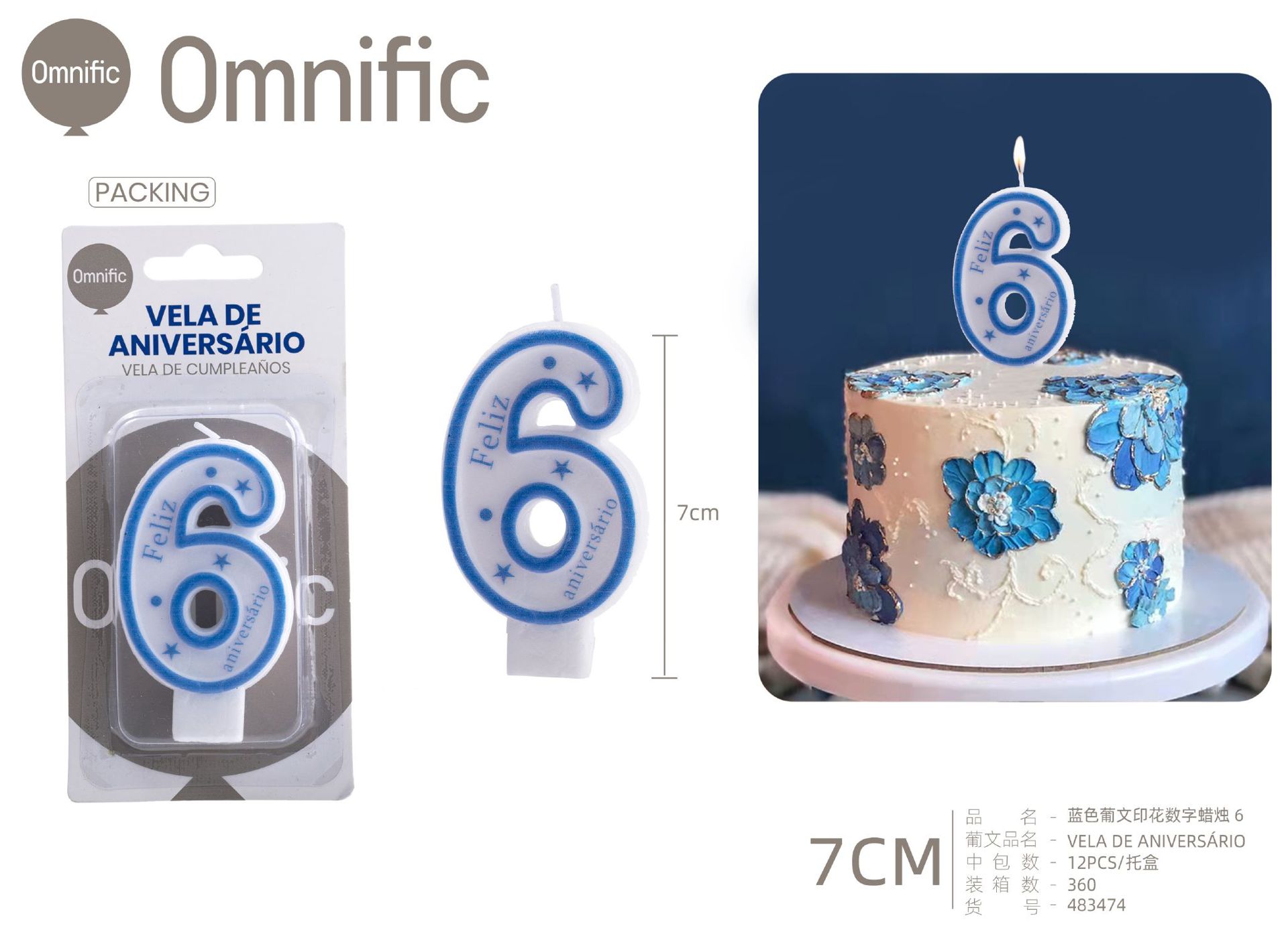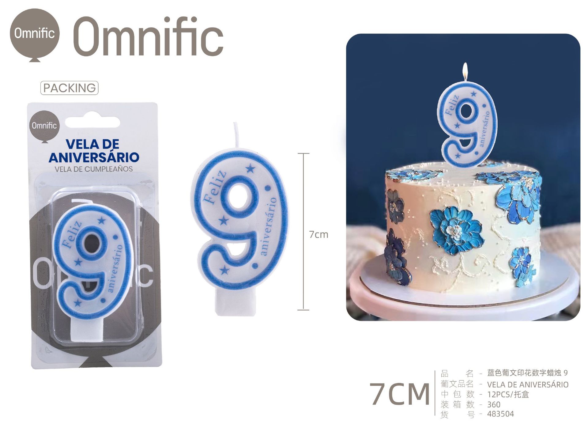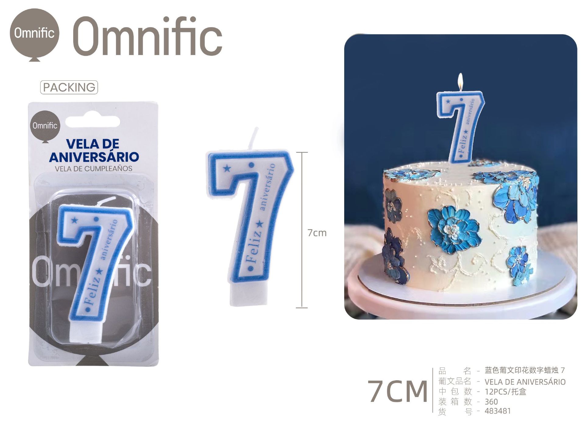 VELA NUMÉRICA COM CONTORNO AZUL 7CM