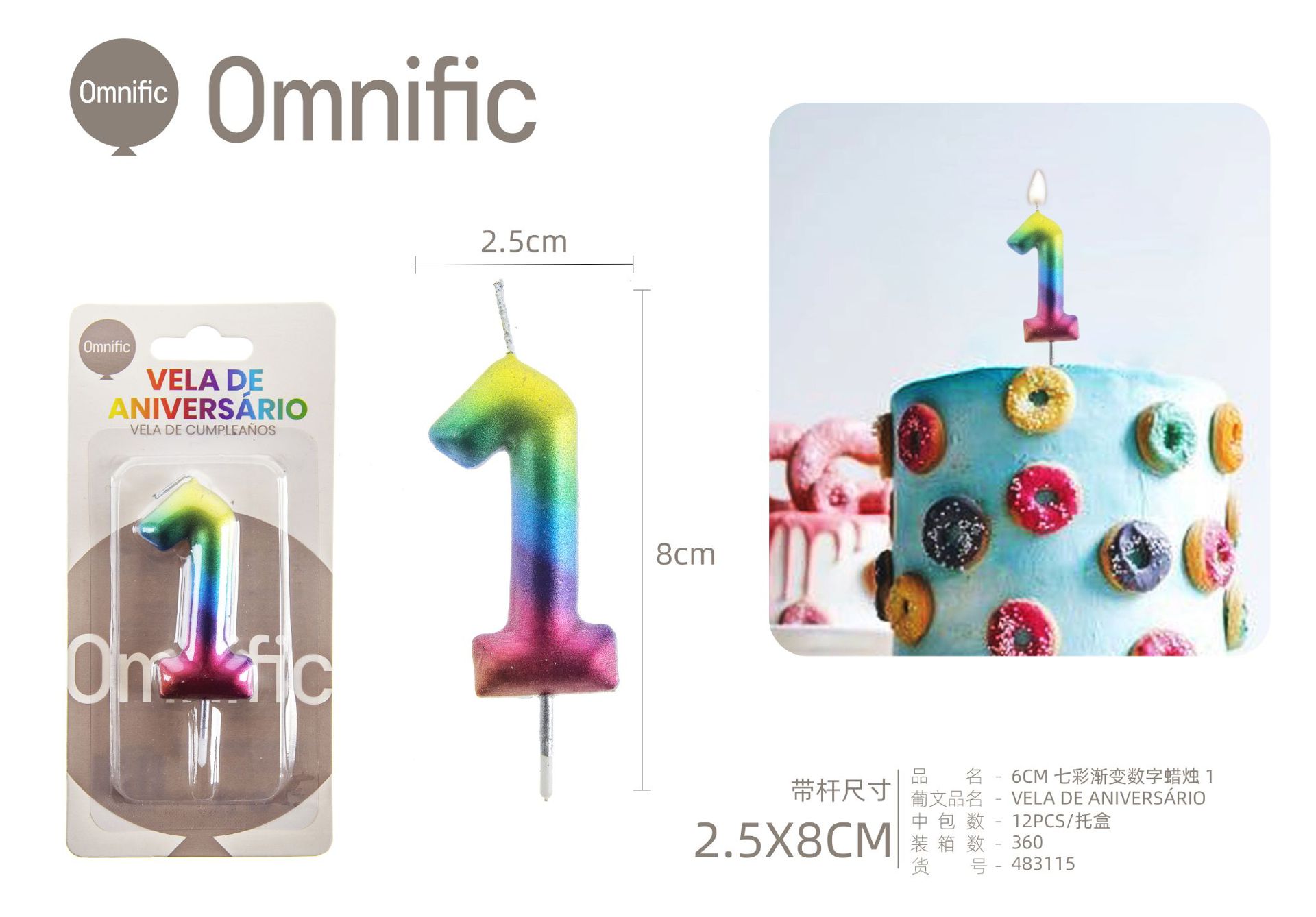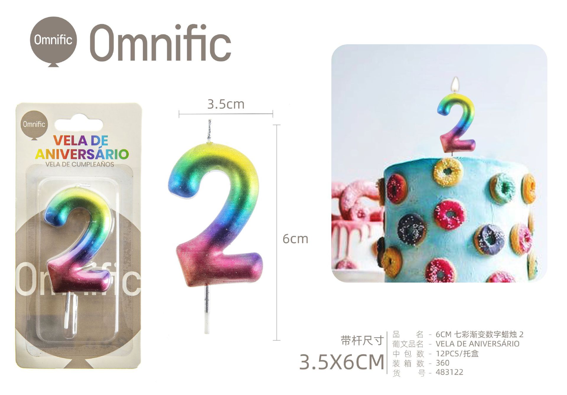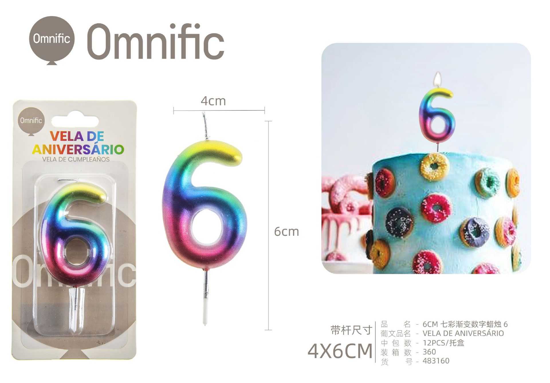 VELA NUMÉRICA COM GRADIENTE COLORIDO 6CM
