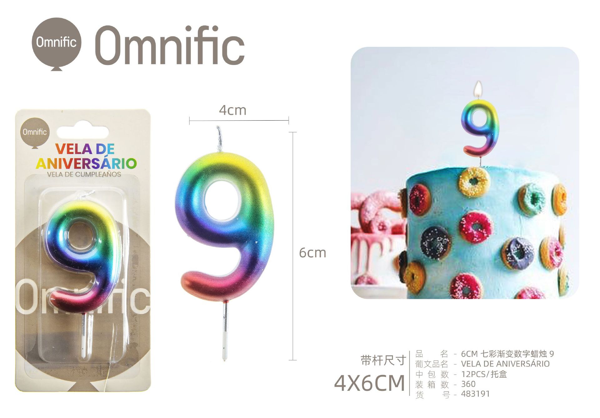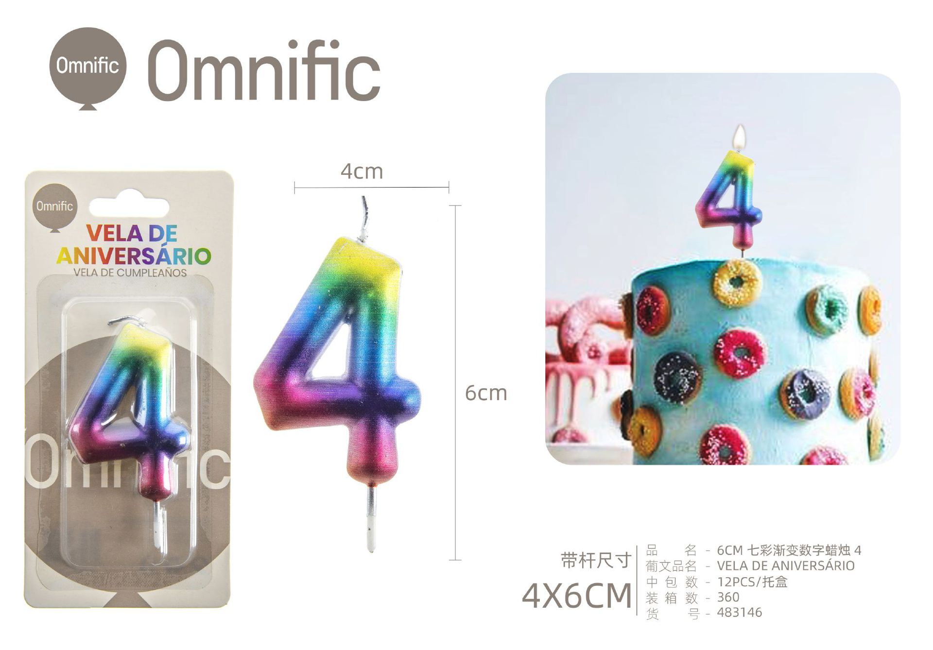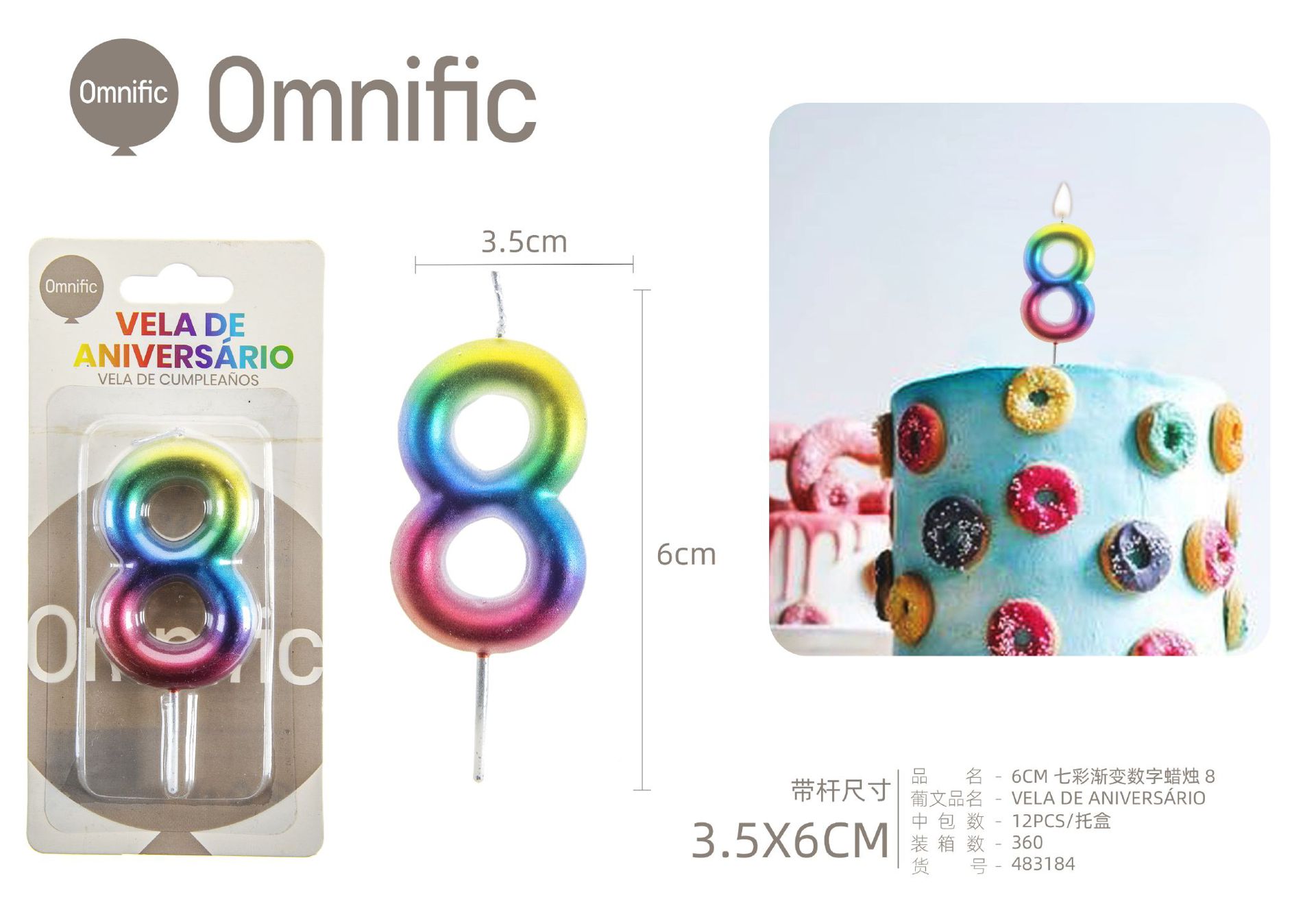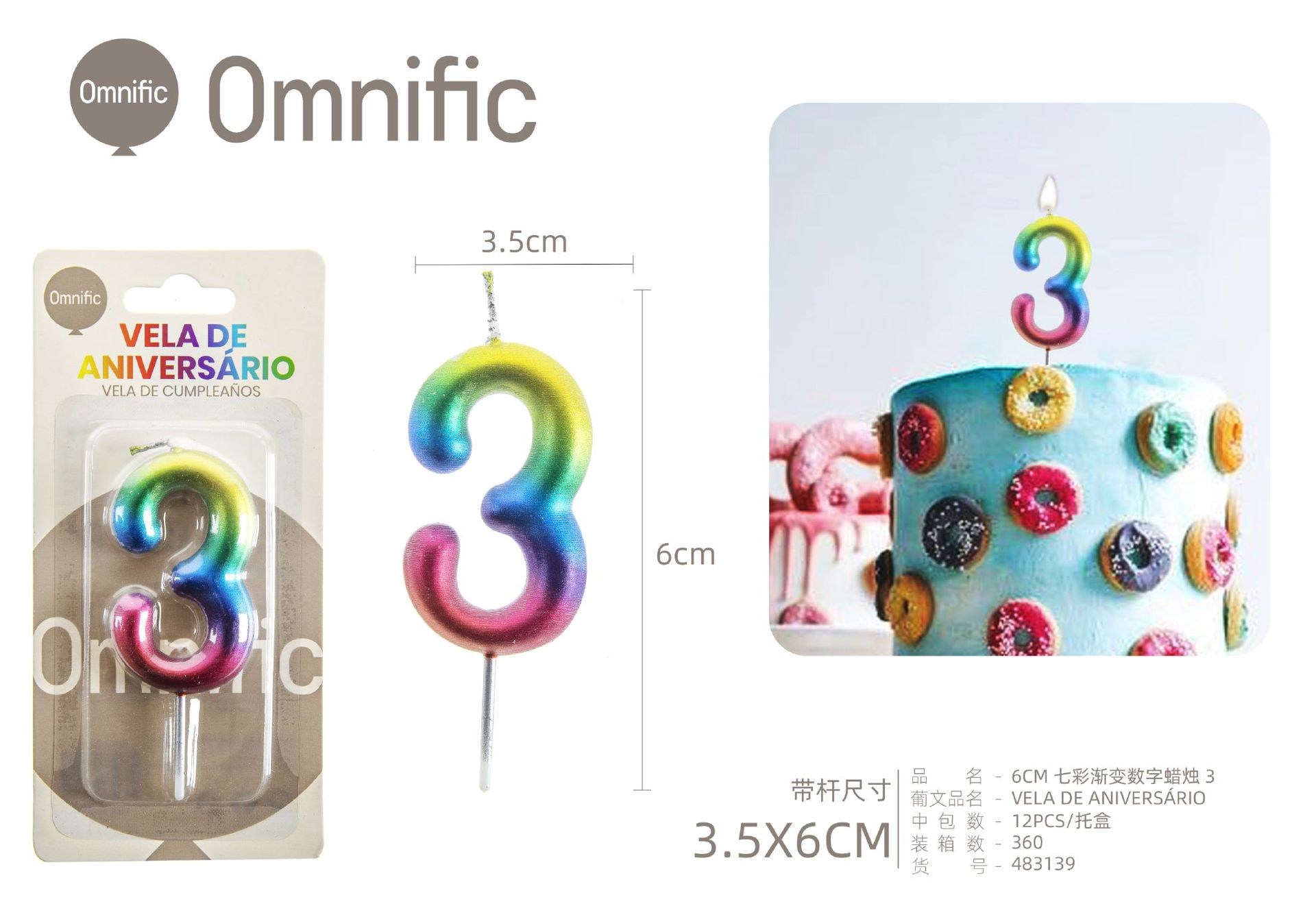 VELA NUMÉRICA COM GRADIENTE COLORIDO 6CM