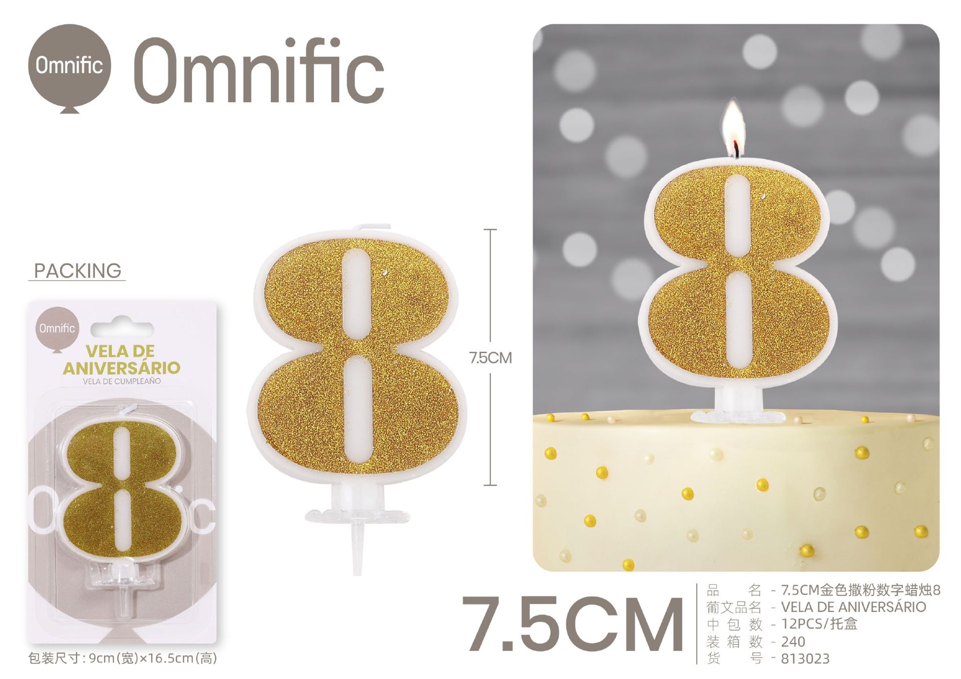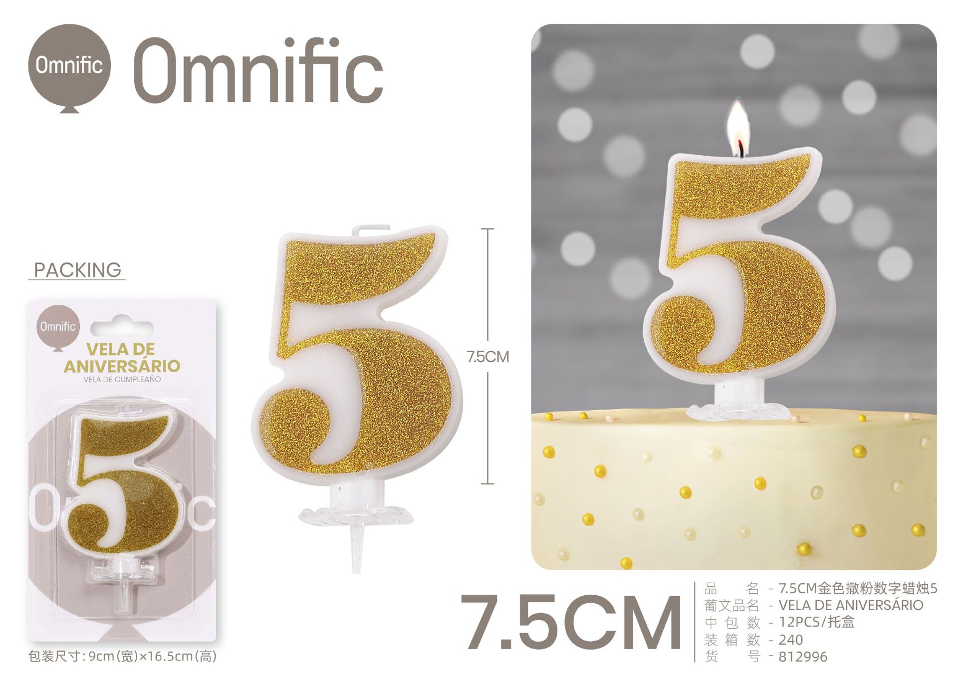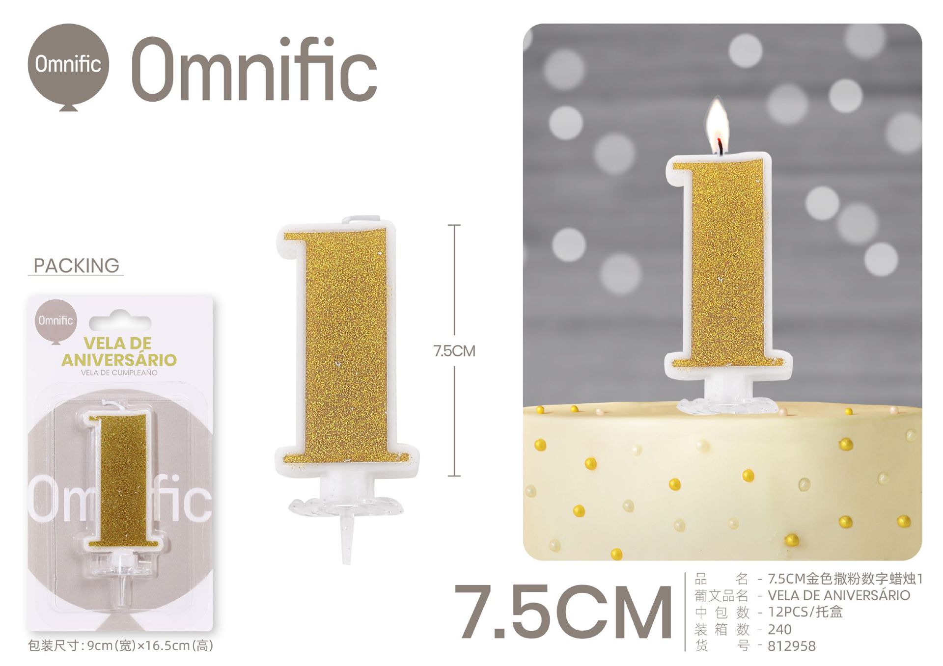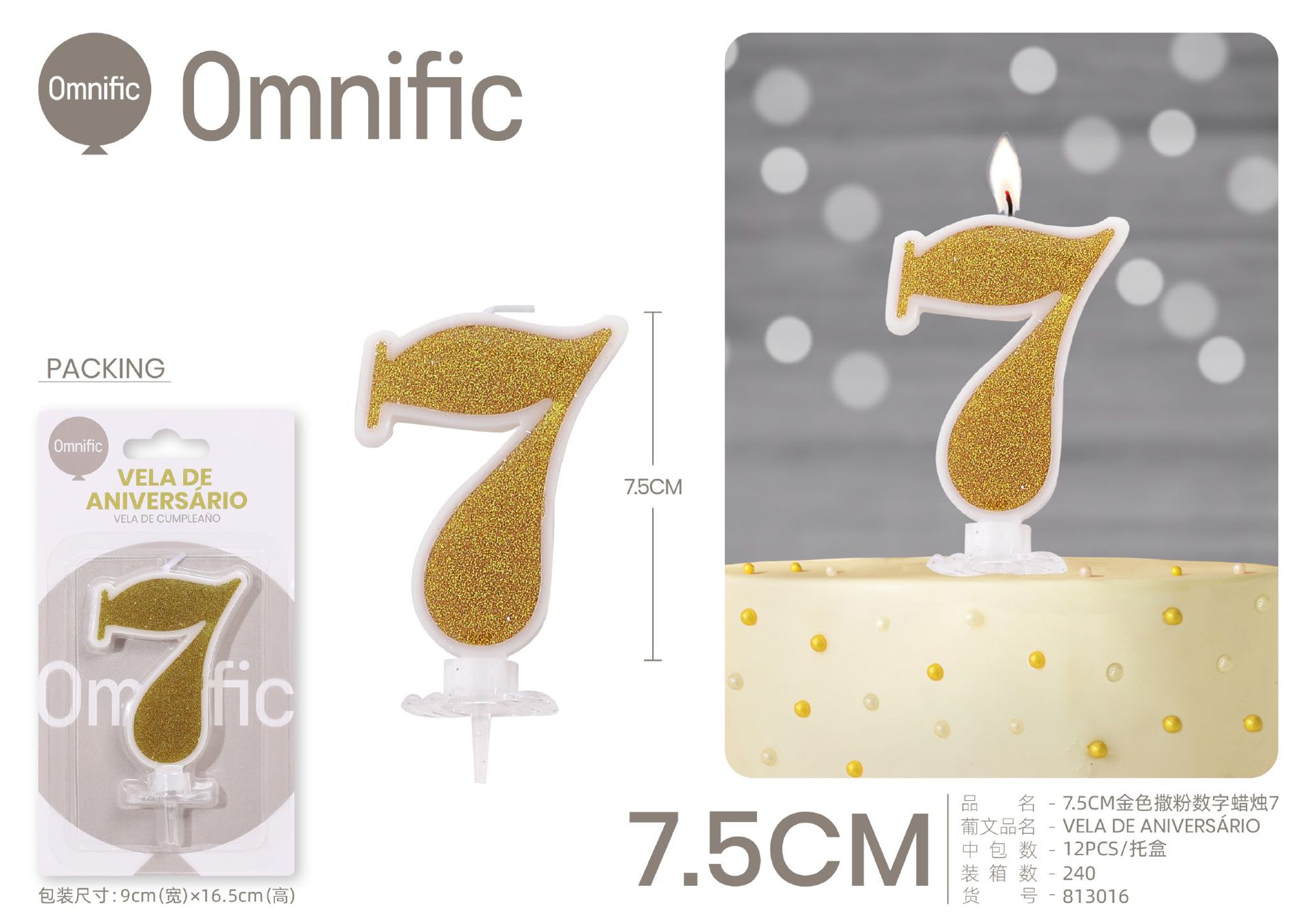 VELA NUMÉRICA DOURADA COM GLITTER 7,5CM
