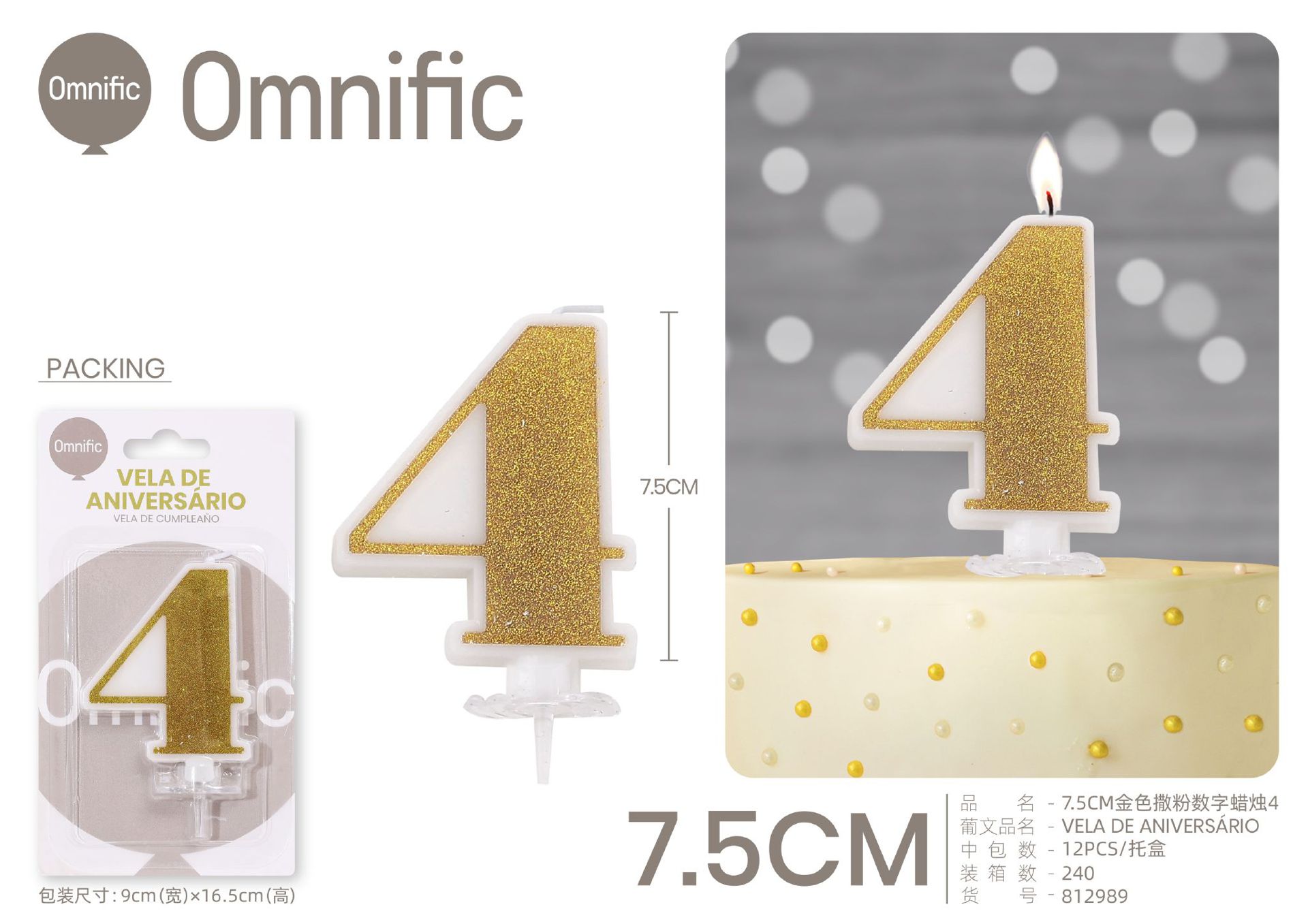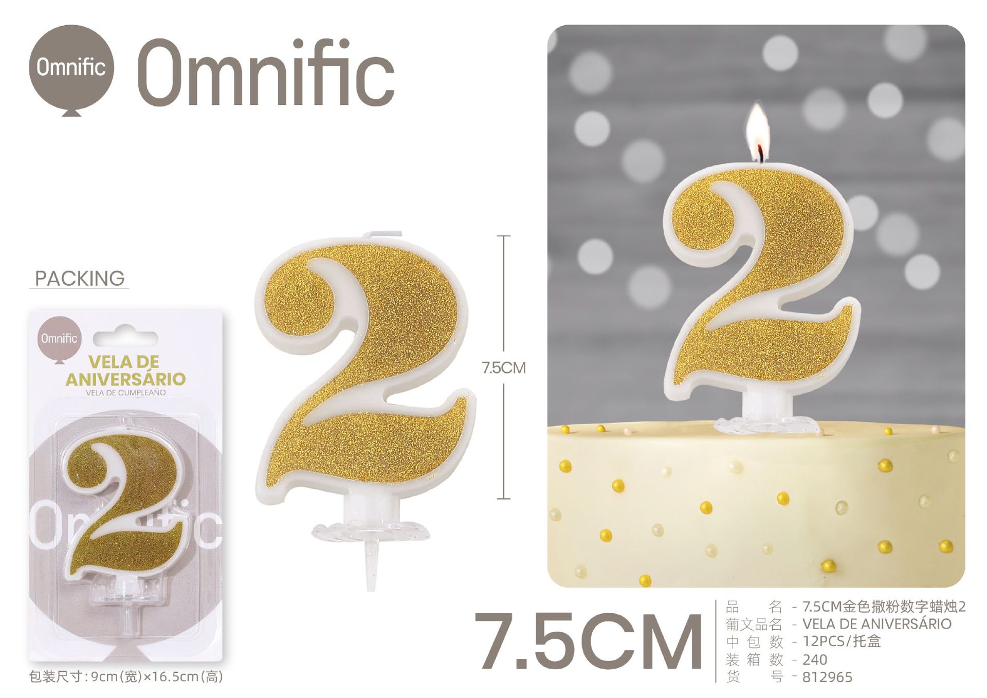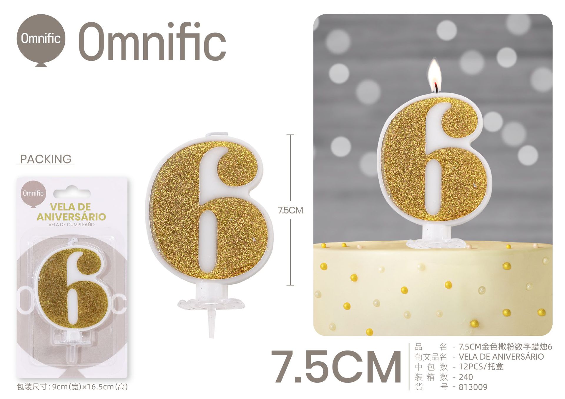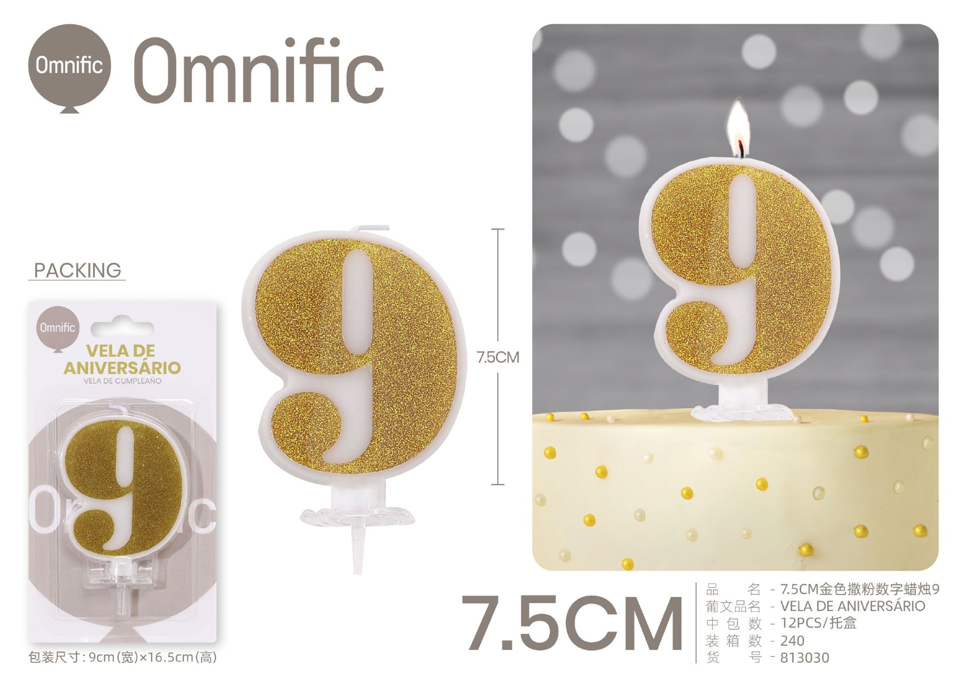 VELA NUMÉRICA DOURADA COM GLITTER 7,5CM
