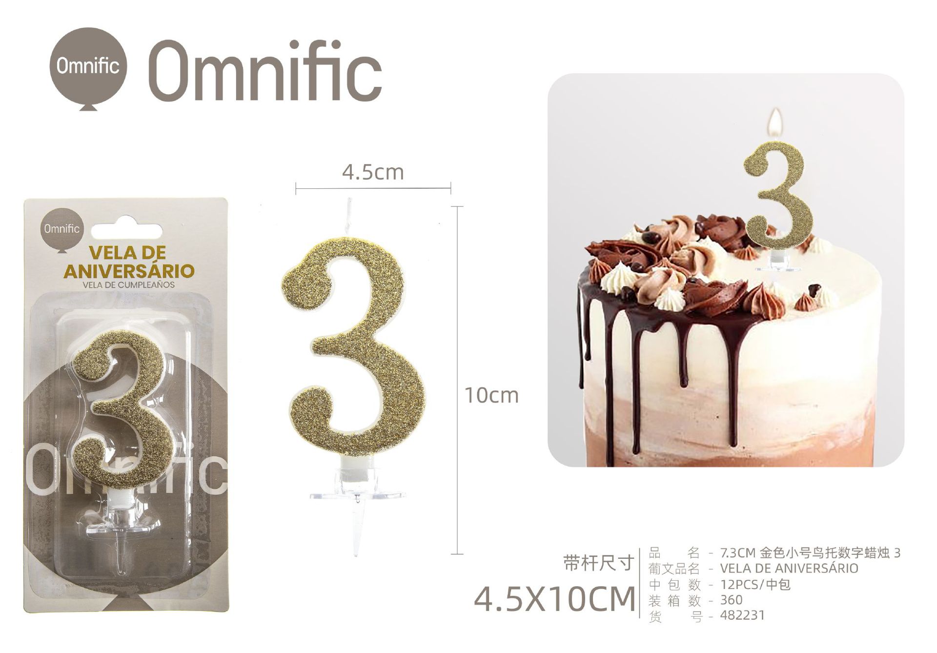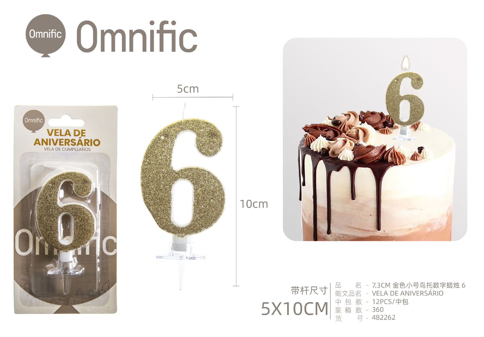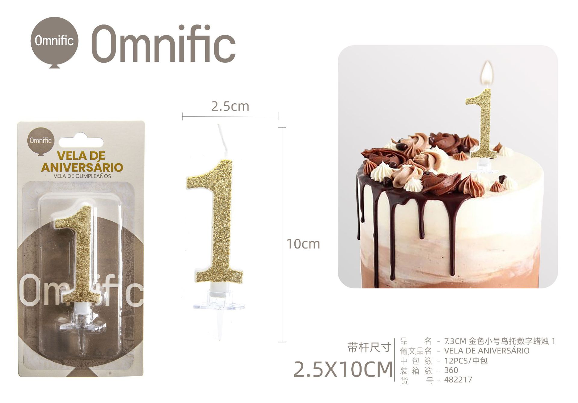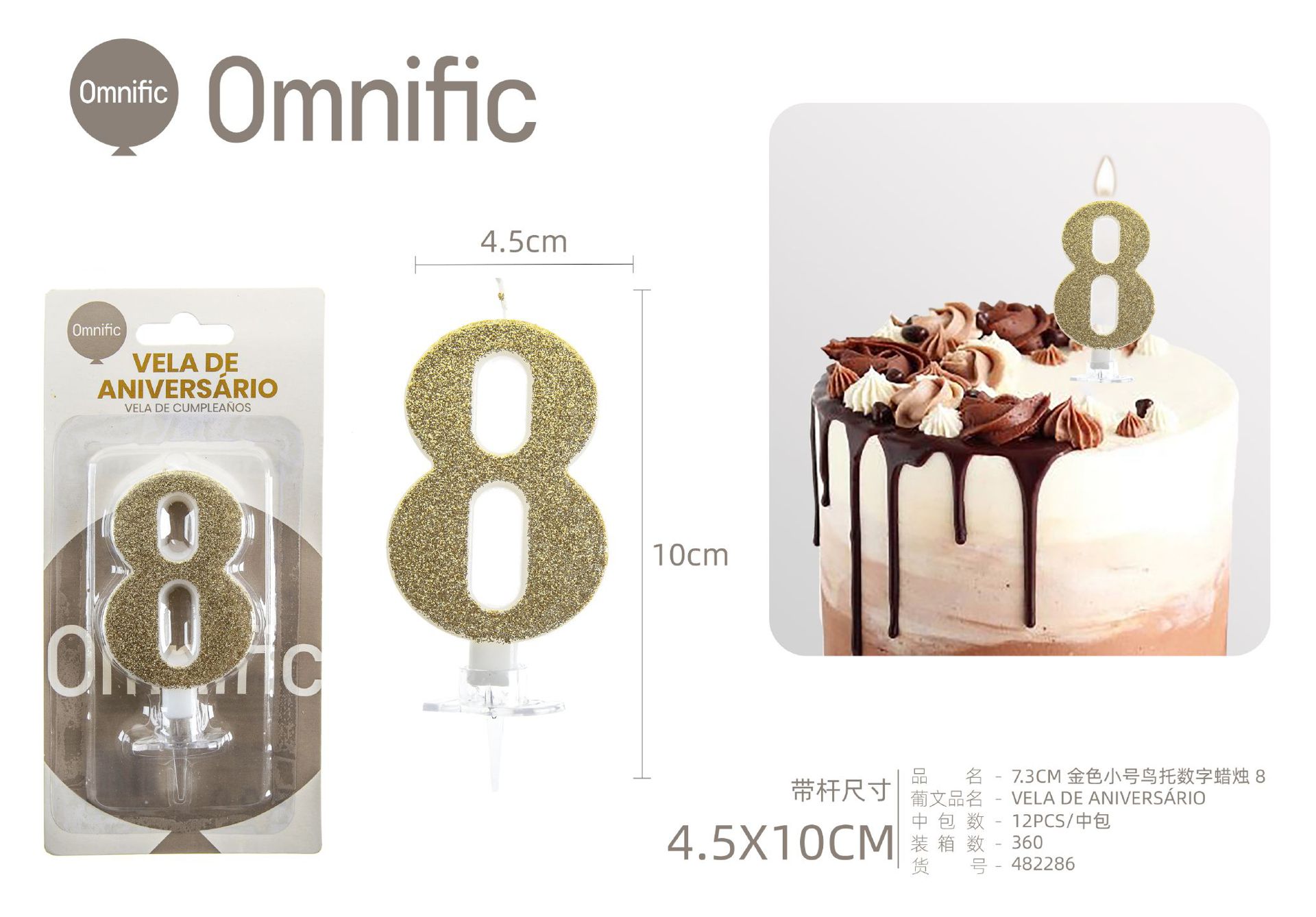 VELA NUMÉRICA DOURADA COM GLITTER 8CM