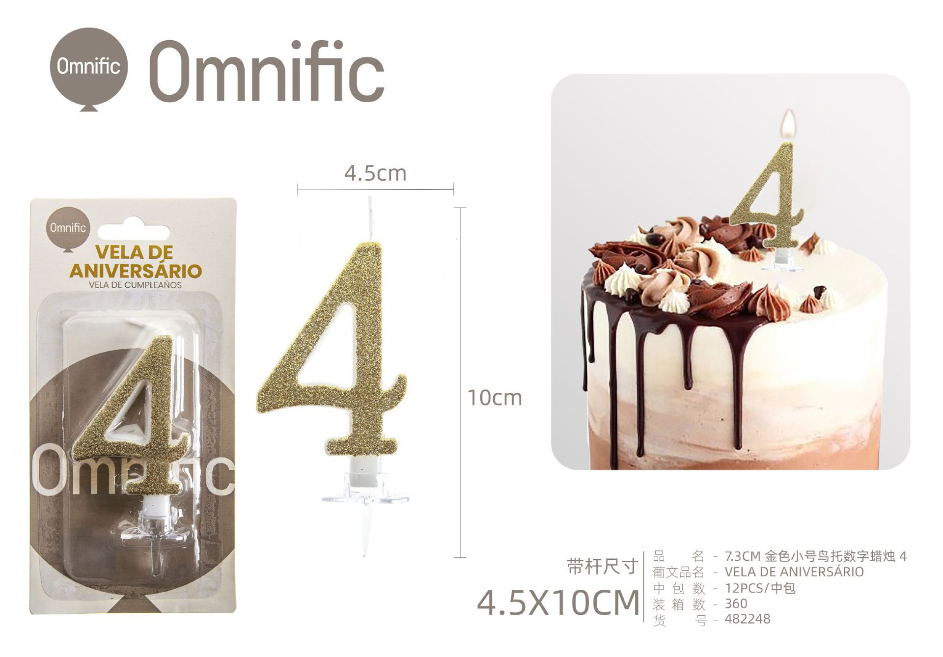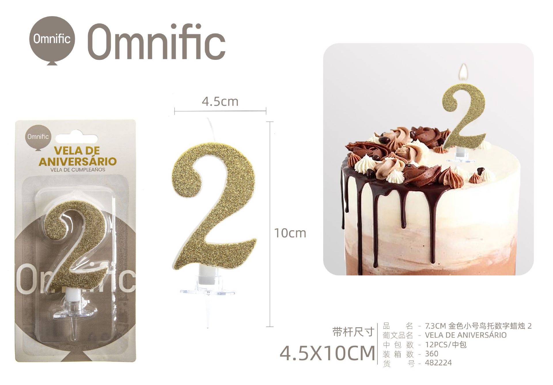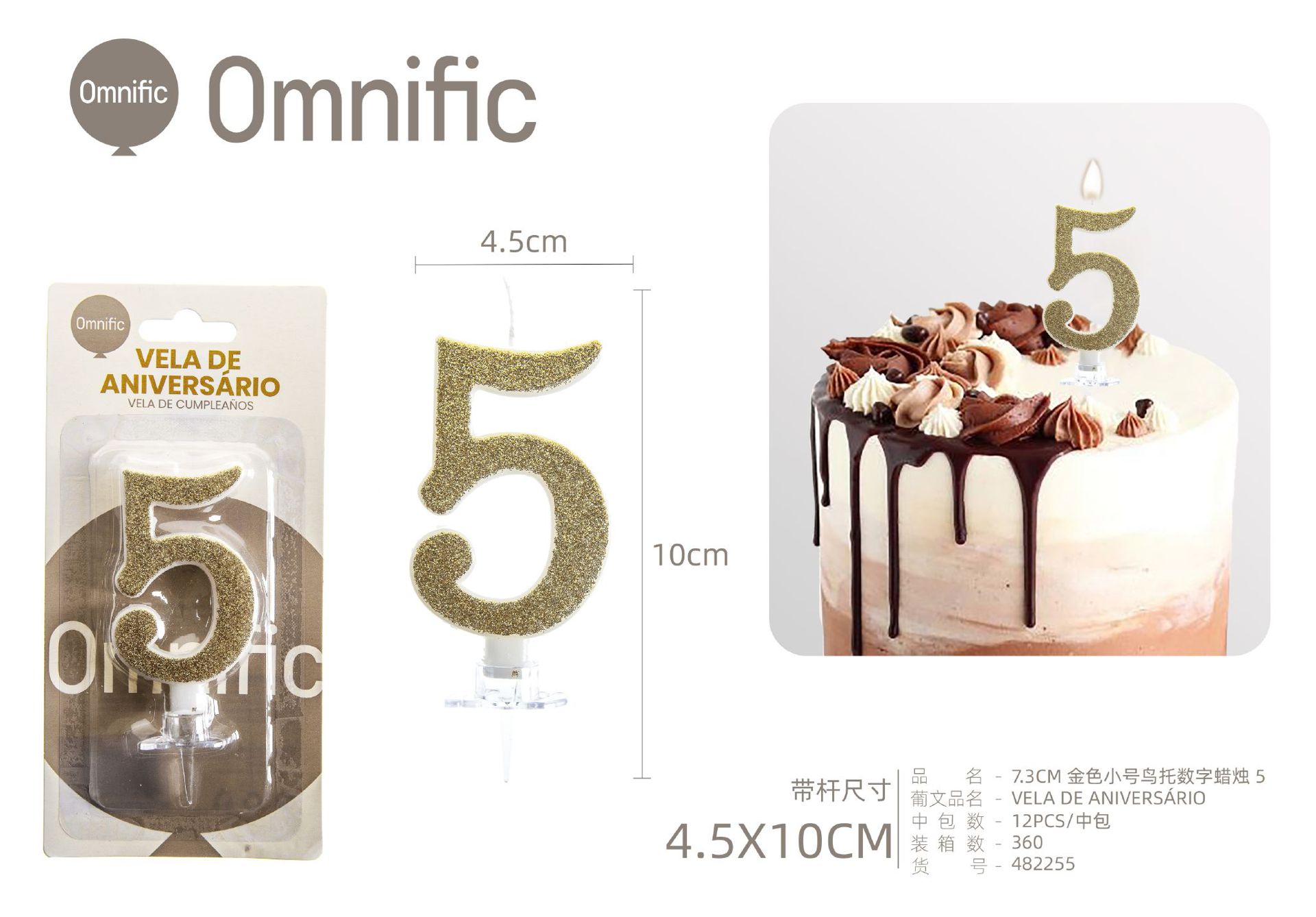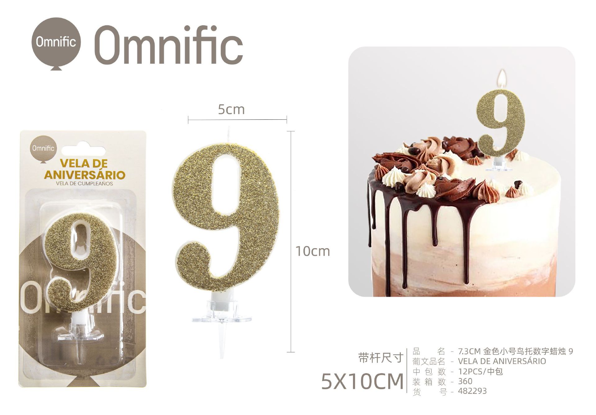 VELA NUMÉRICA DOURADA COM GLITTER 8CM