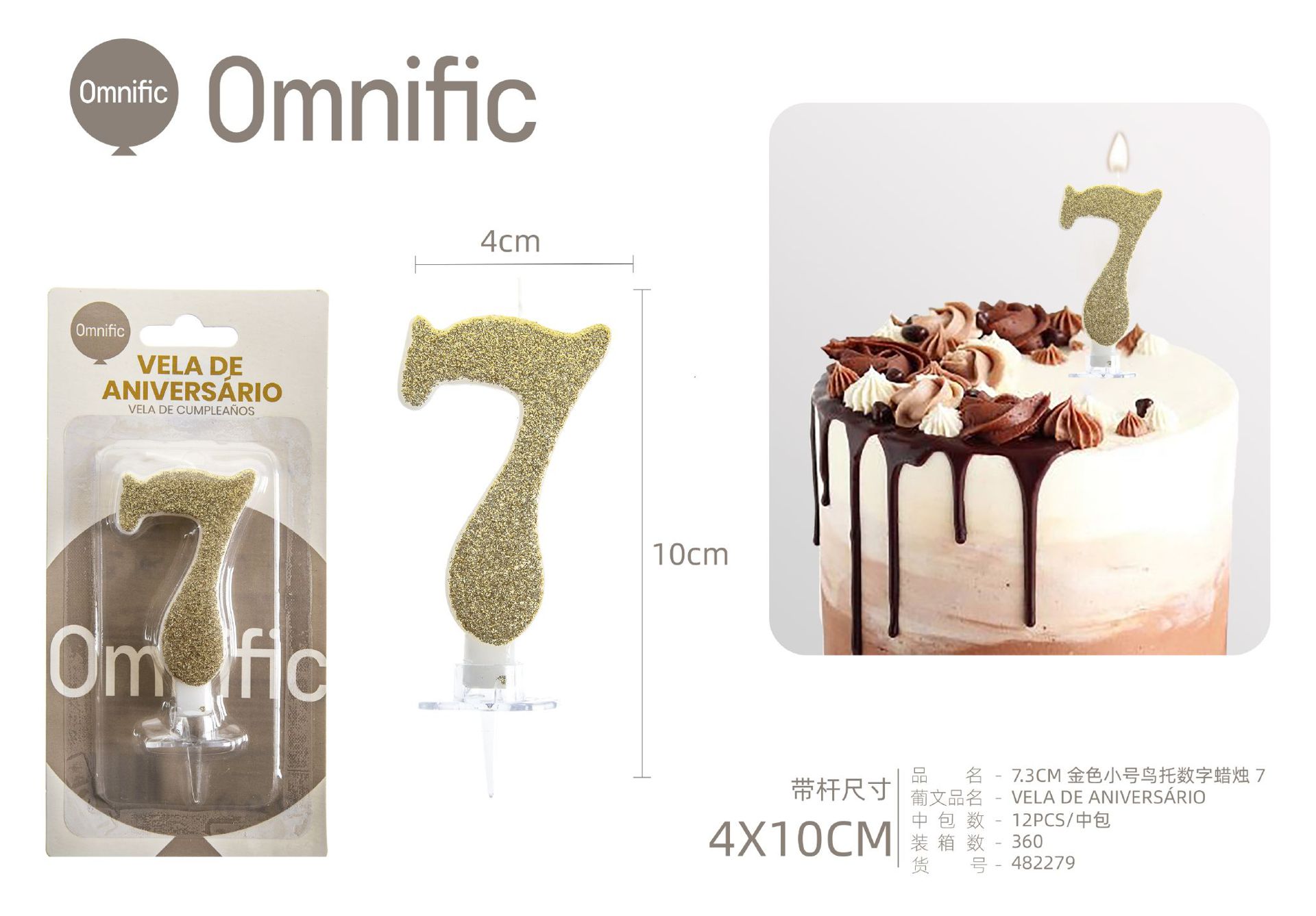Quantidade de VELA NUMÉRICA DOURADA COM GLITTER 8CM