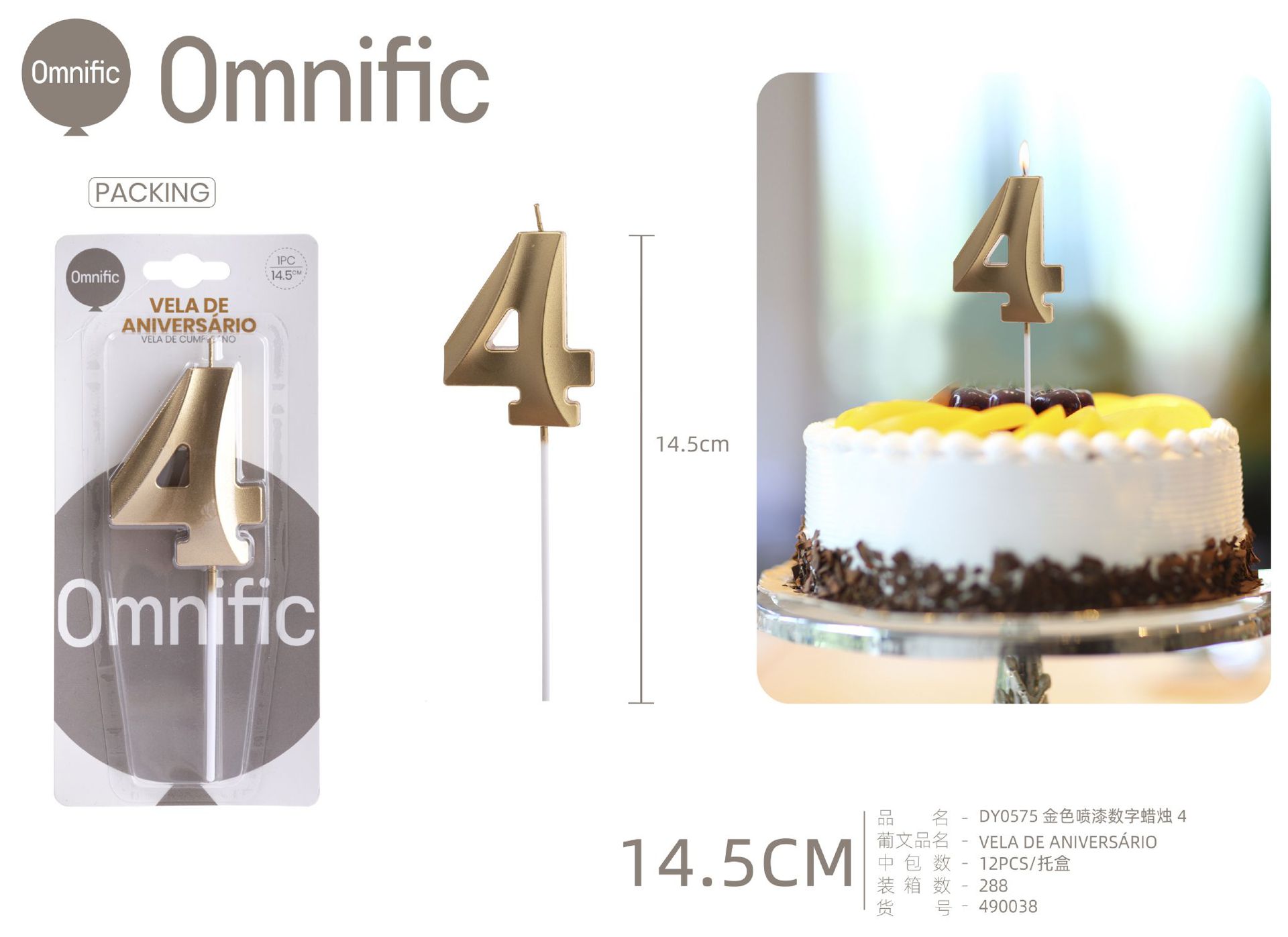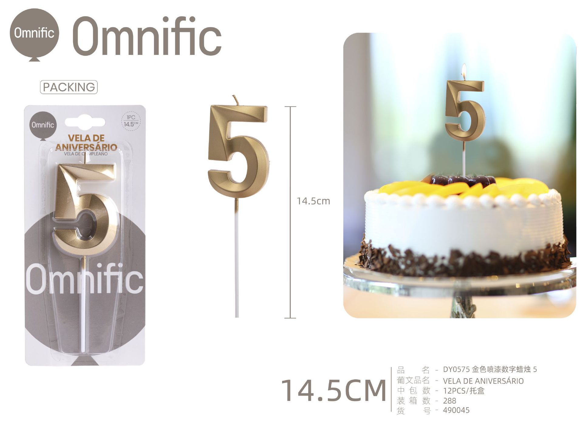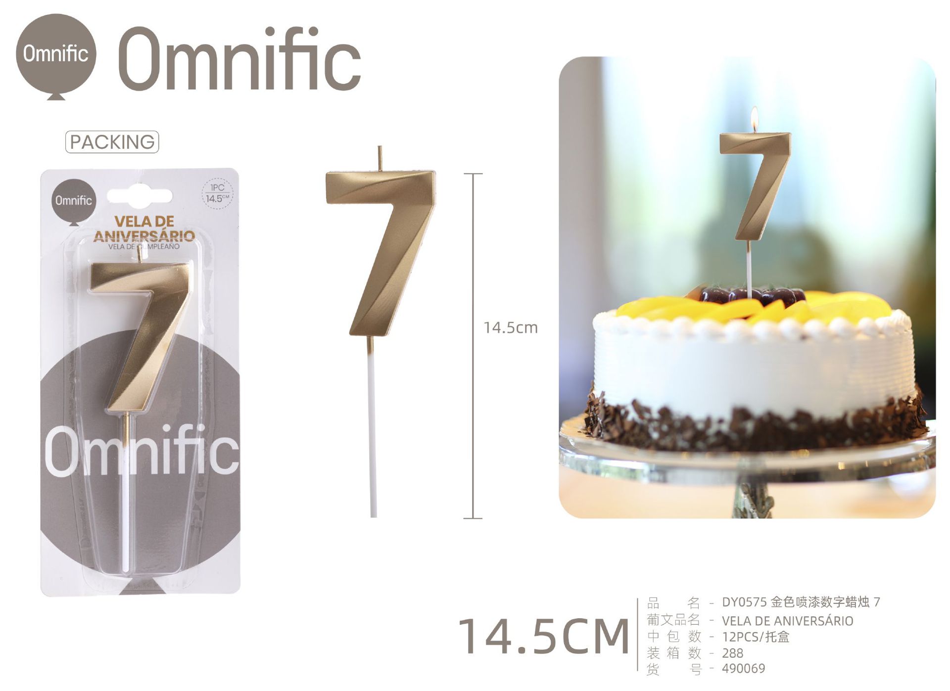 VELA NUMÉRICA DOURADA INCLINADA 7CM