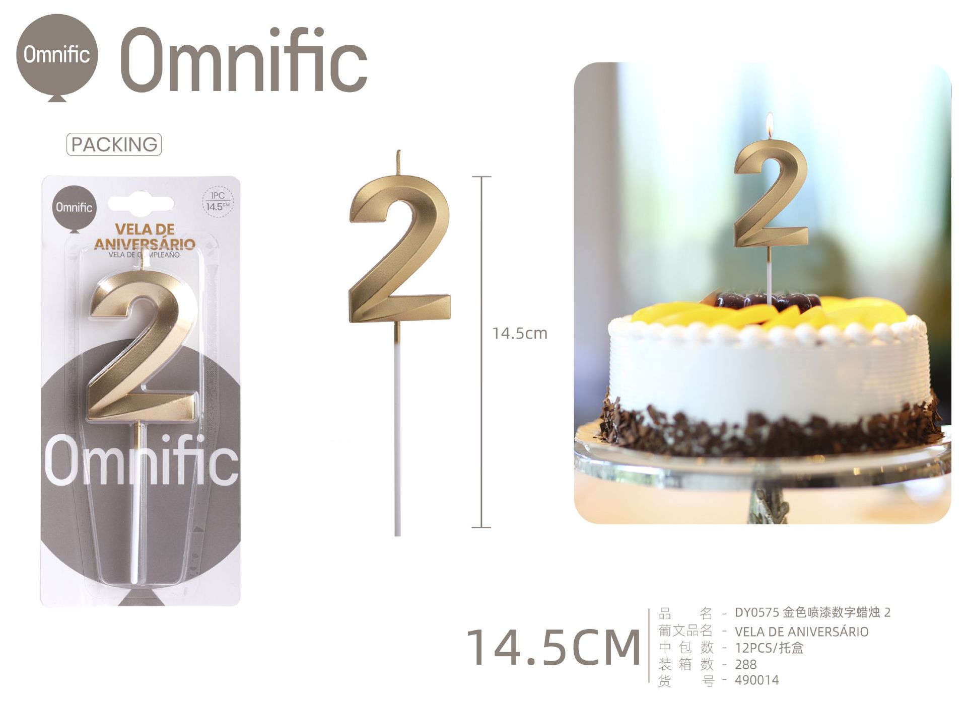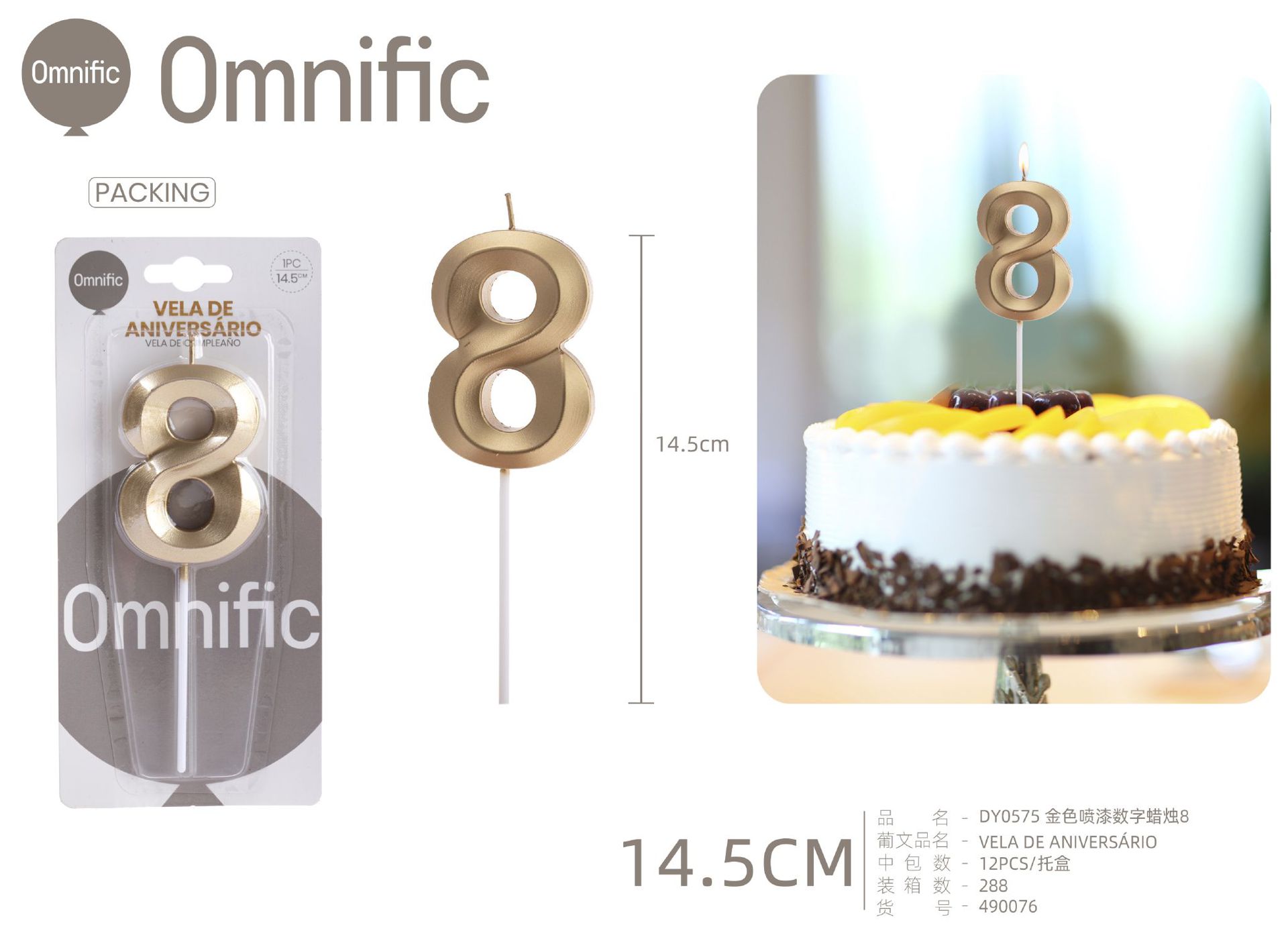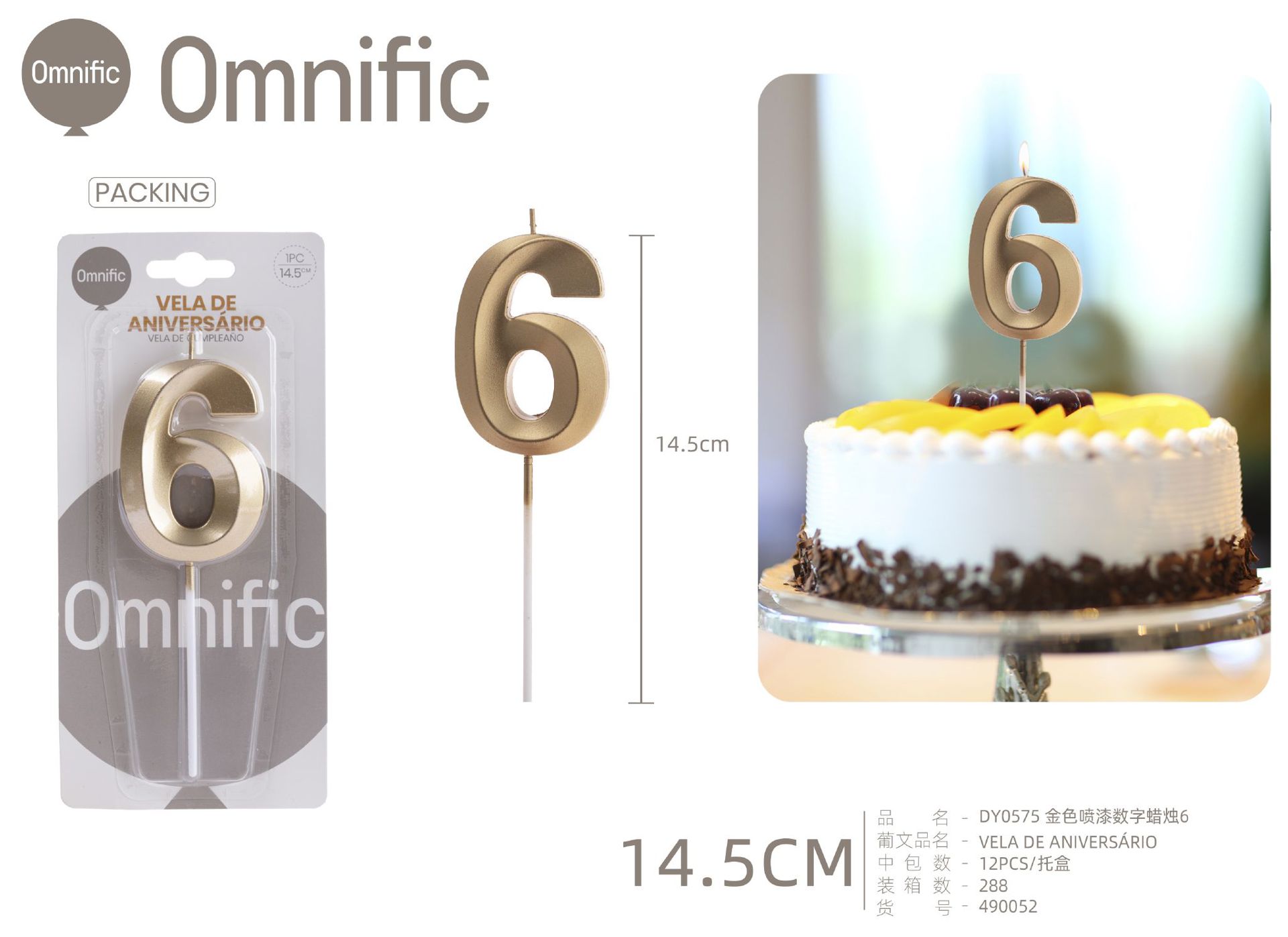 VELA NUMÉRICA DOURADA INCLINADA 7CM