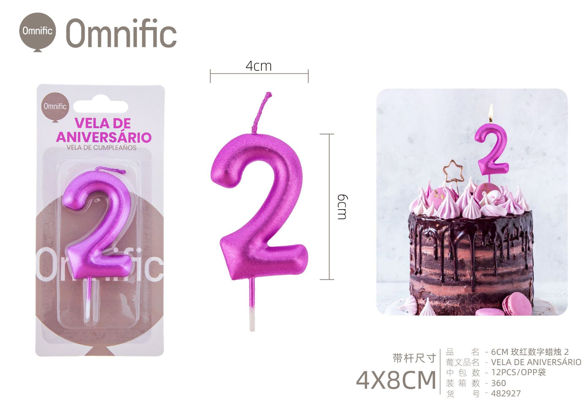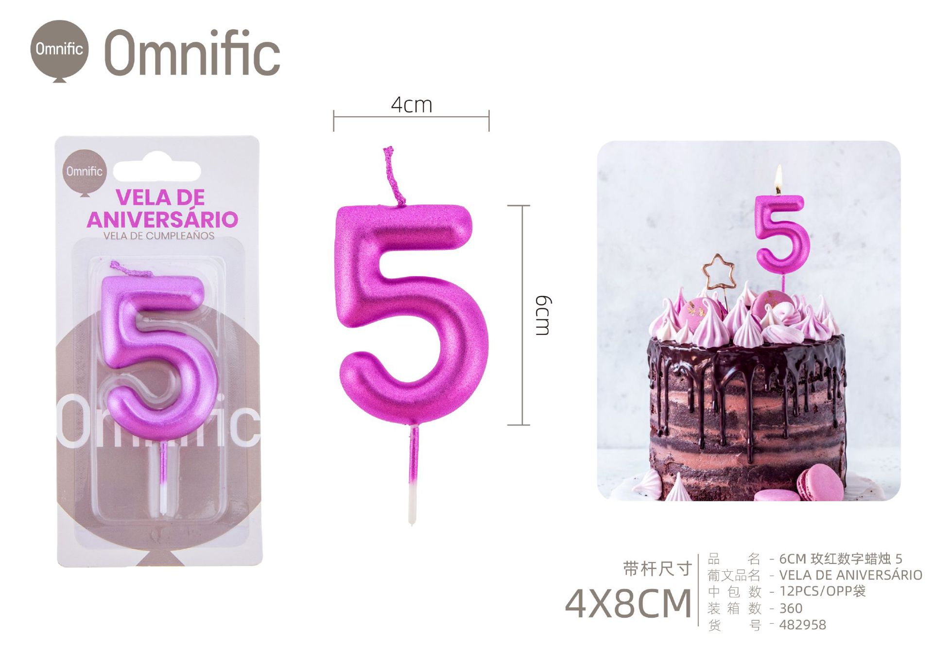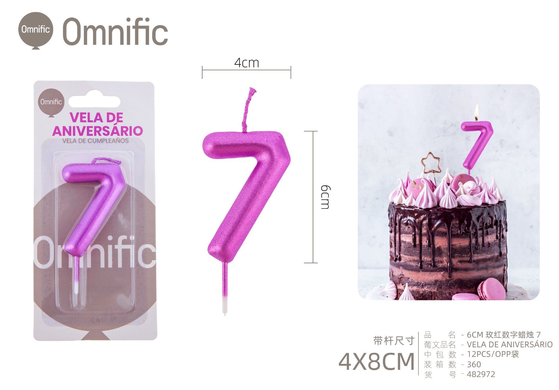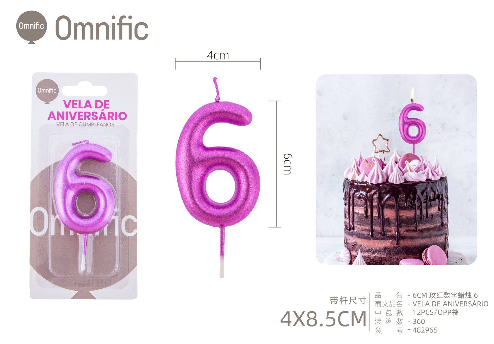 VELA NUMÉRICA METÁLICA ROSA CHOQUE 6CM
