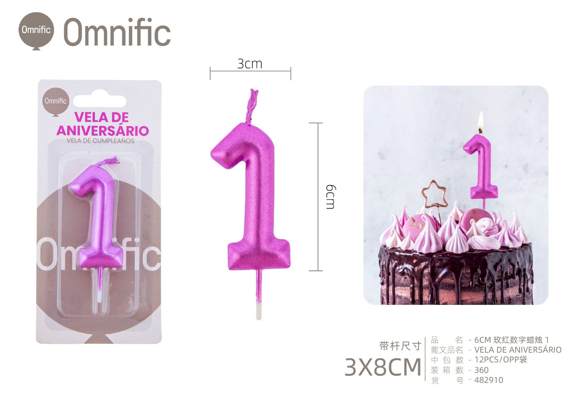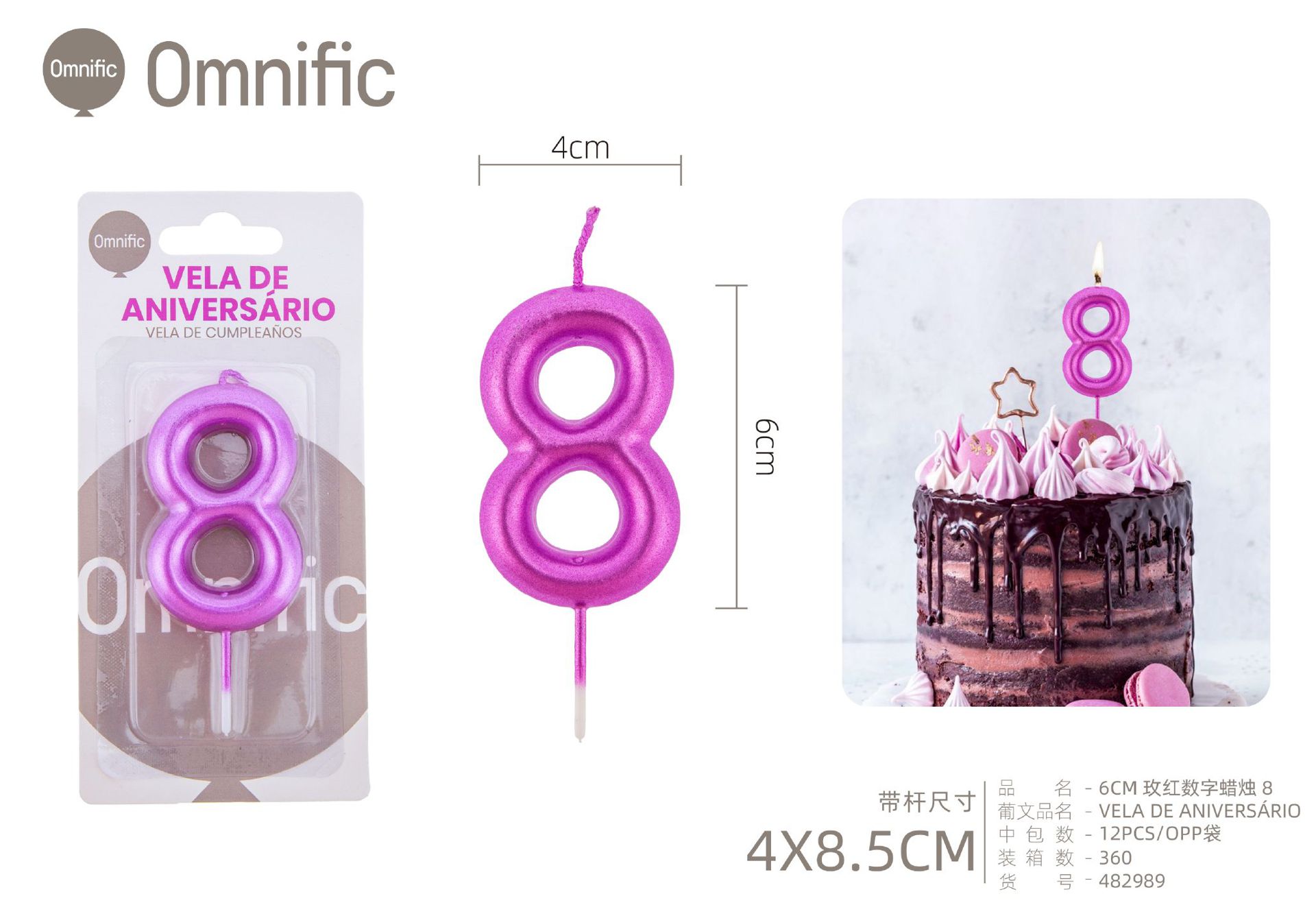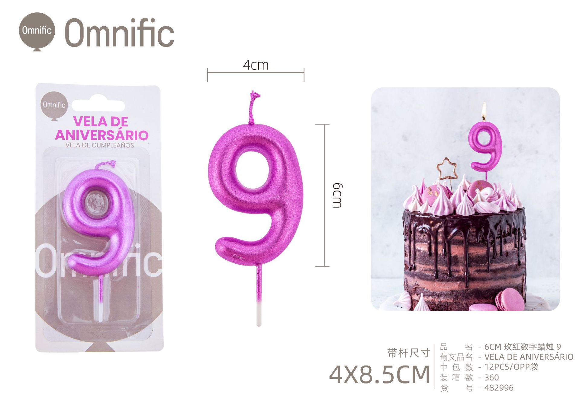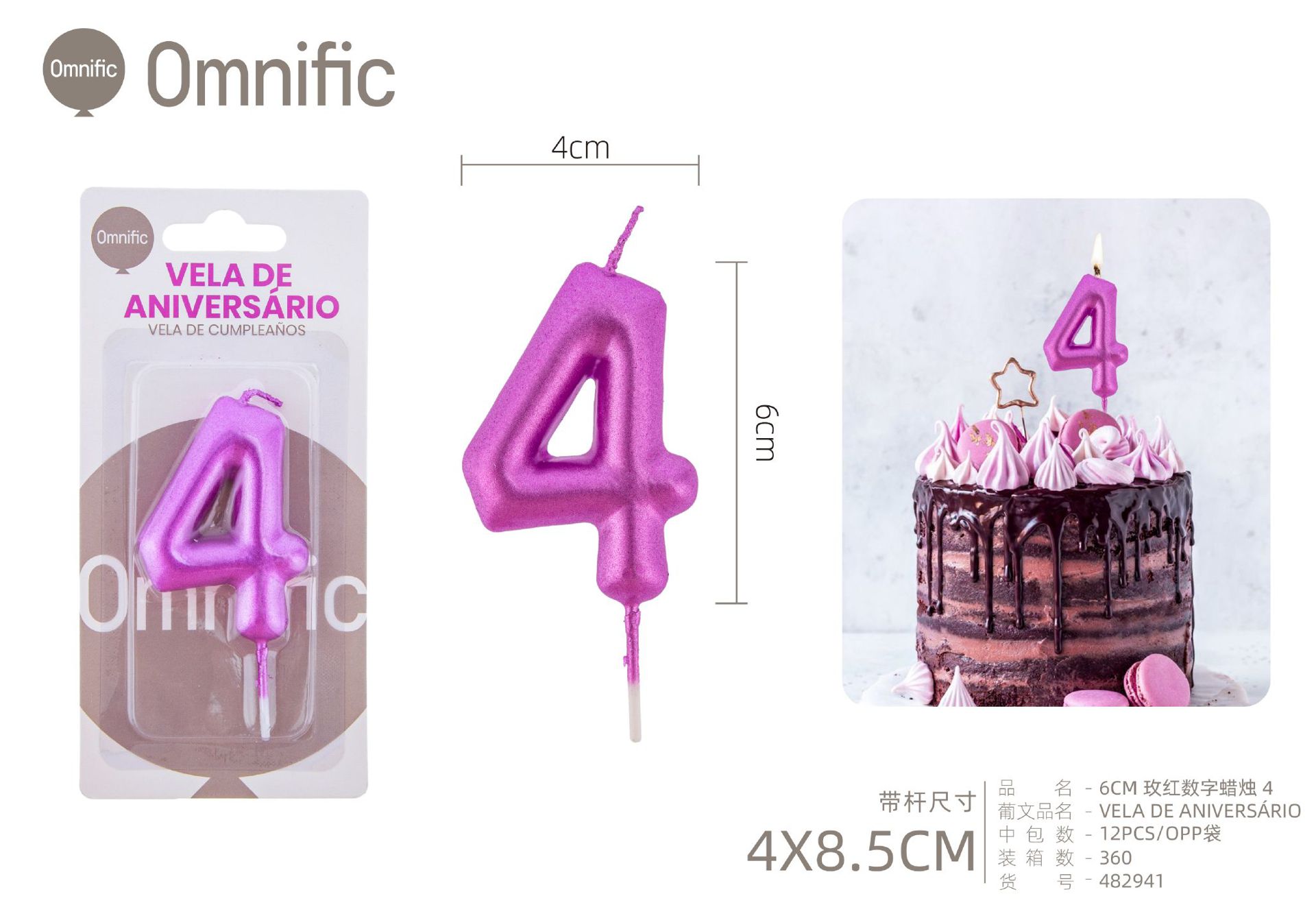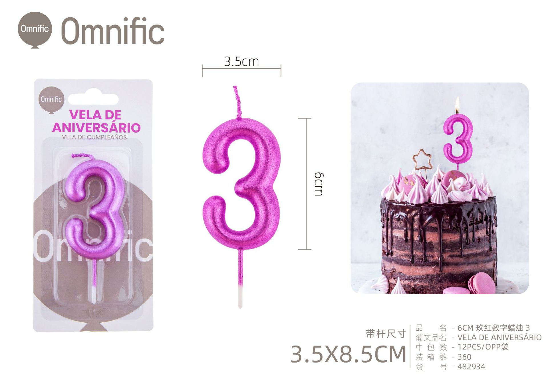 VELA NUMÉRICA METÁLICA ROSA CHOQUE 6CM