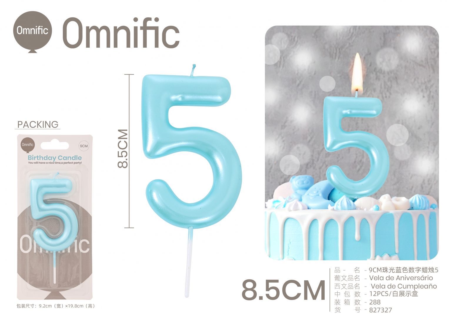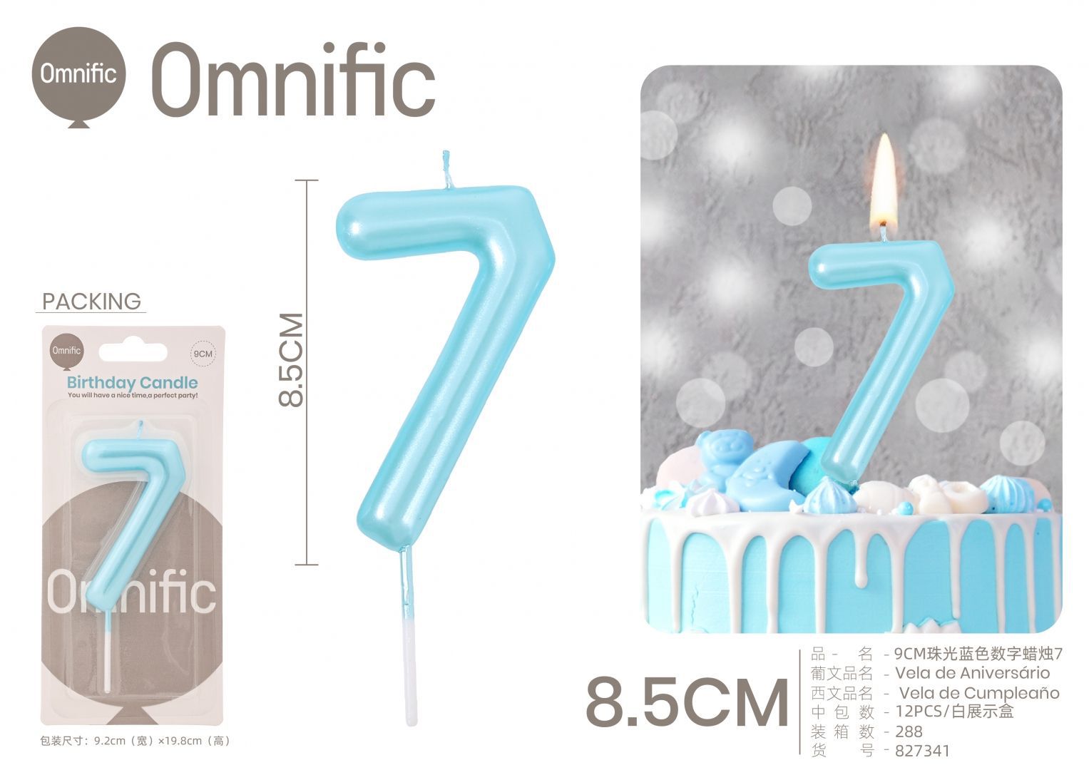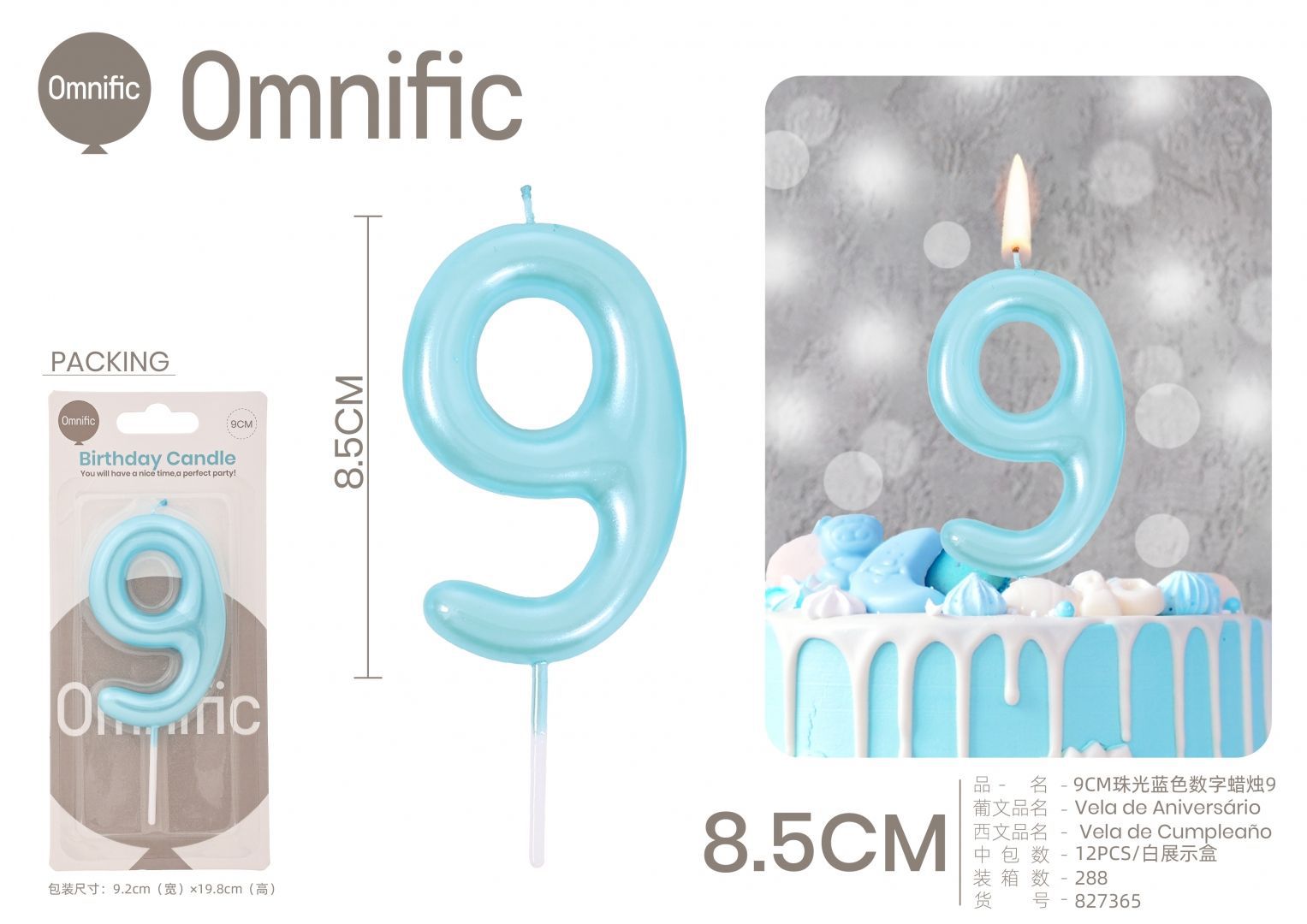 VELA NUMÉRICA PEROLADA AZUL 9CM