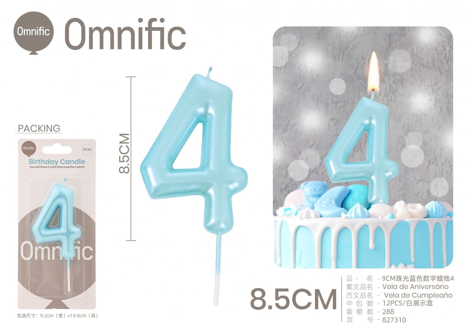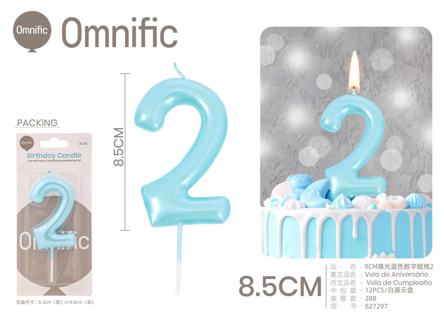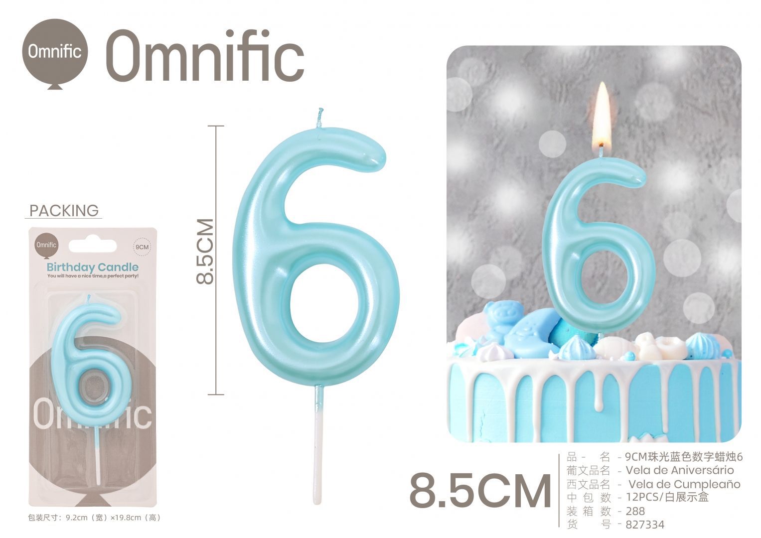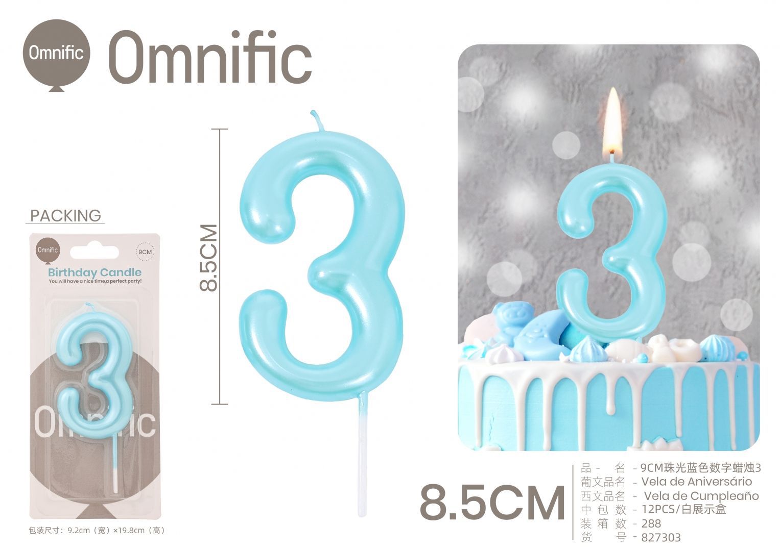 VELA NUMÉRICA PEROLADA AZUL 9CM