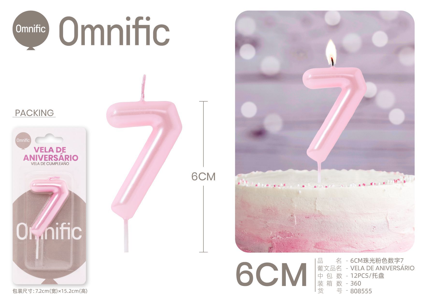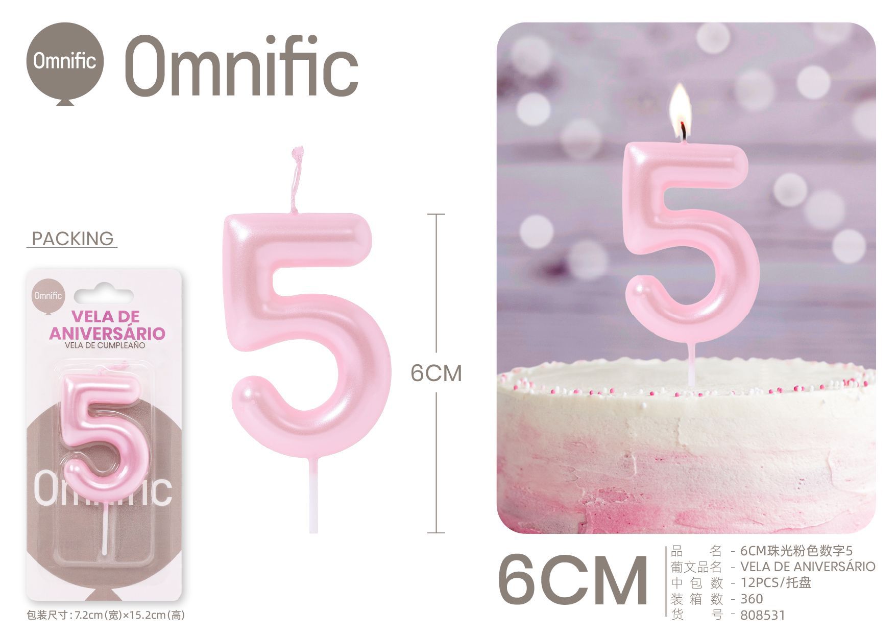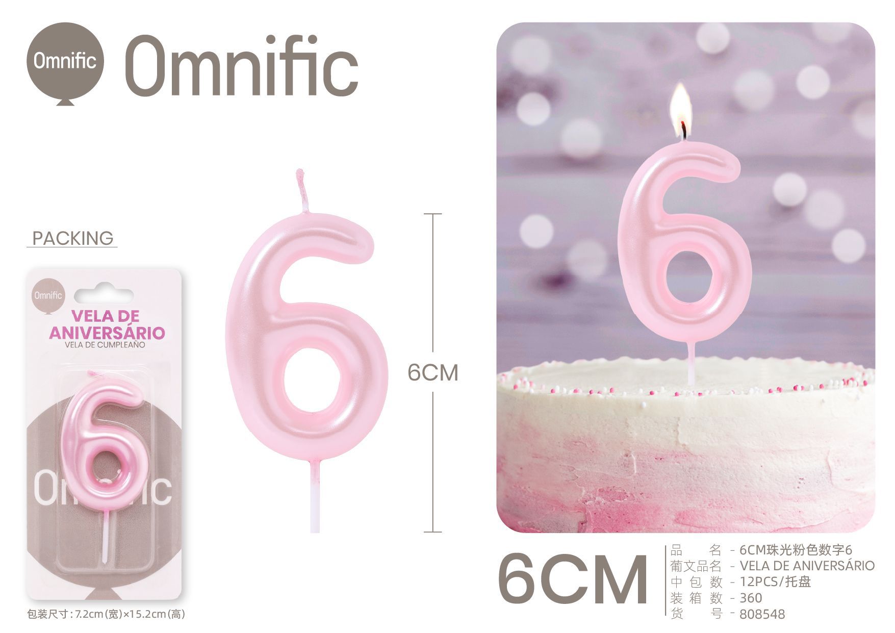 VELA NUMÉRICA PEROLADA ROSA 6CM