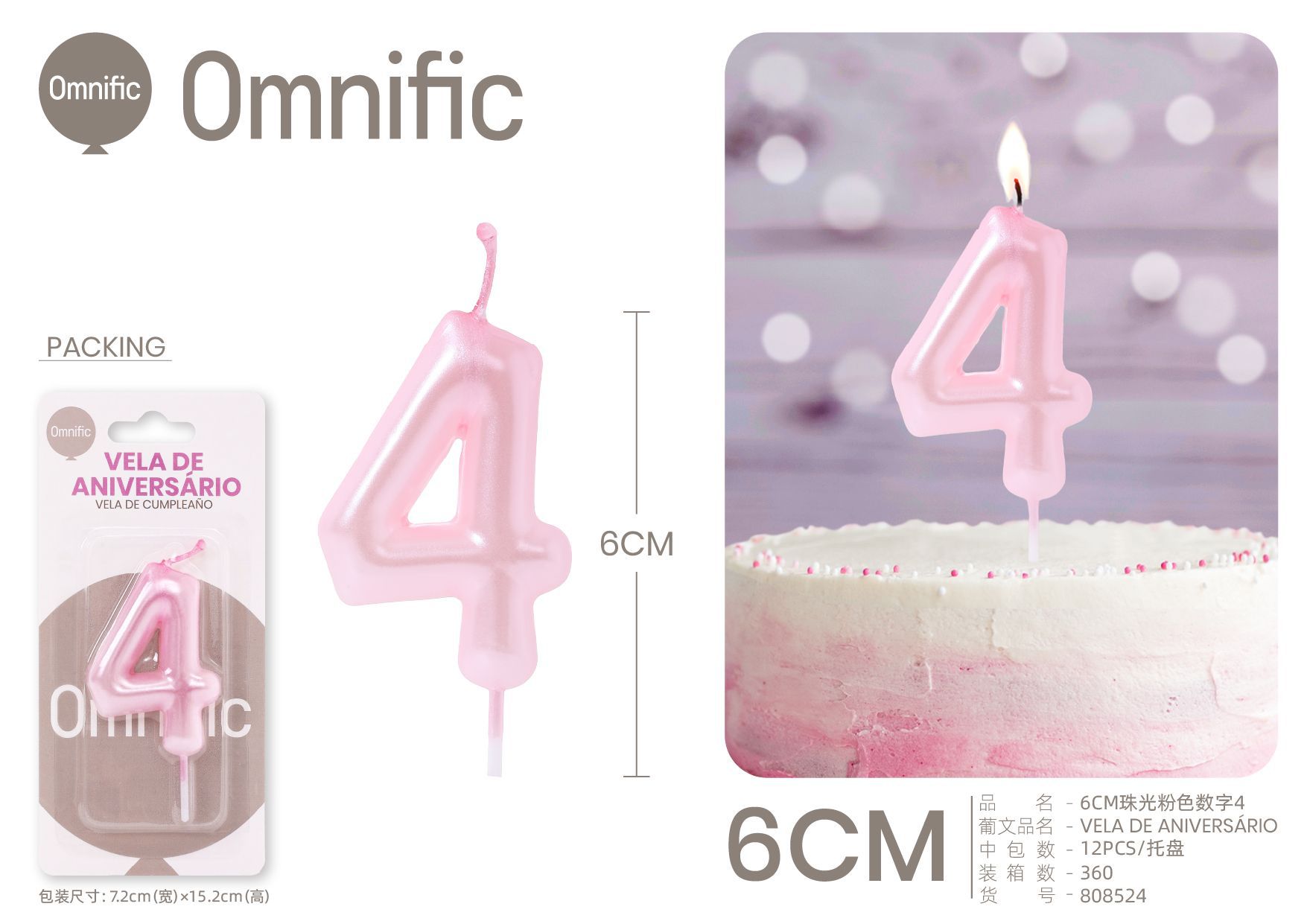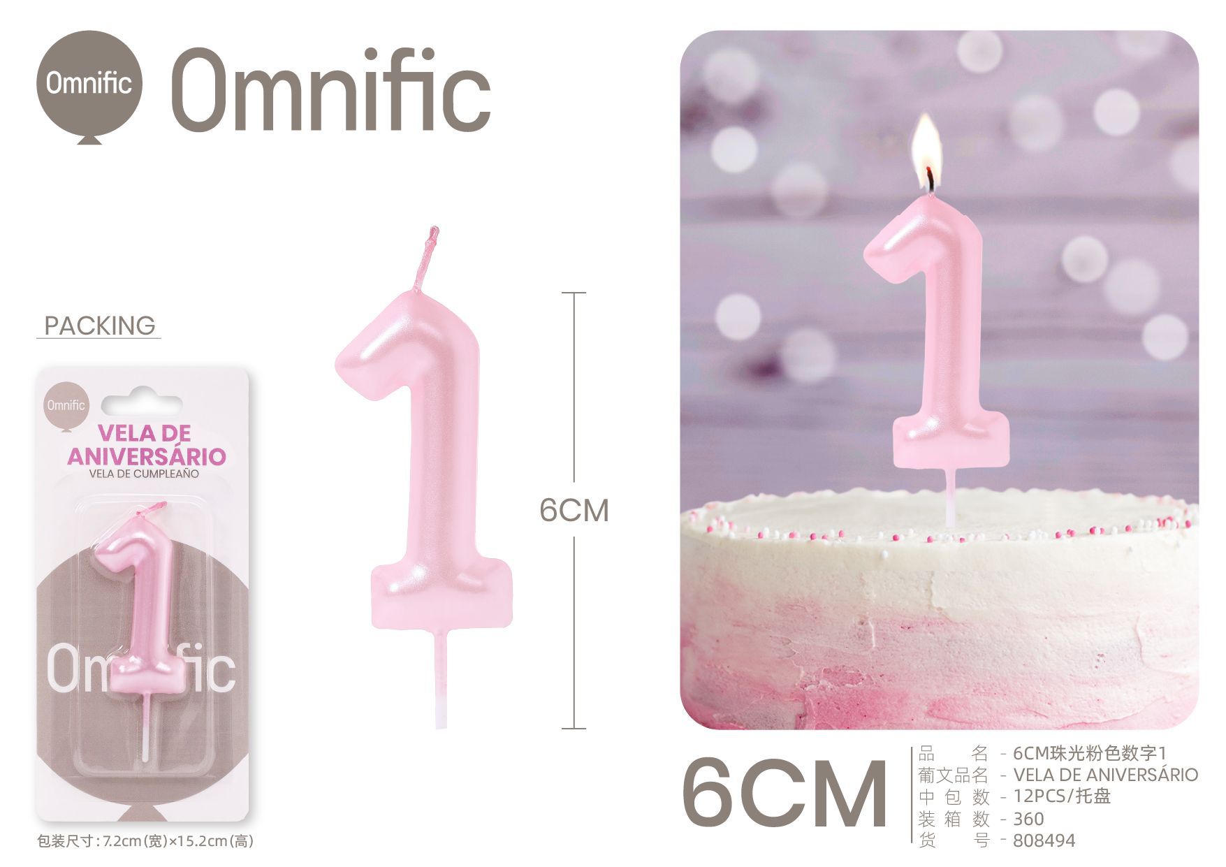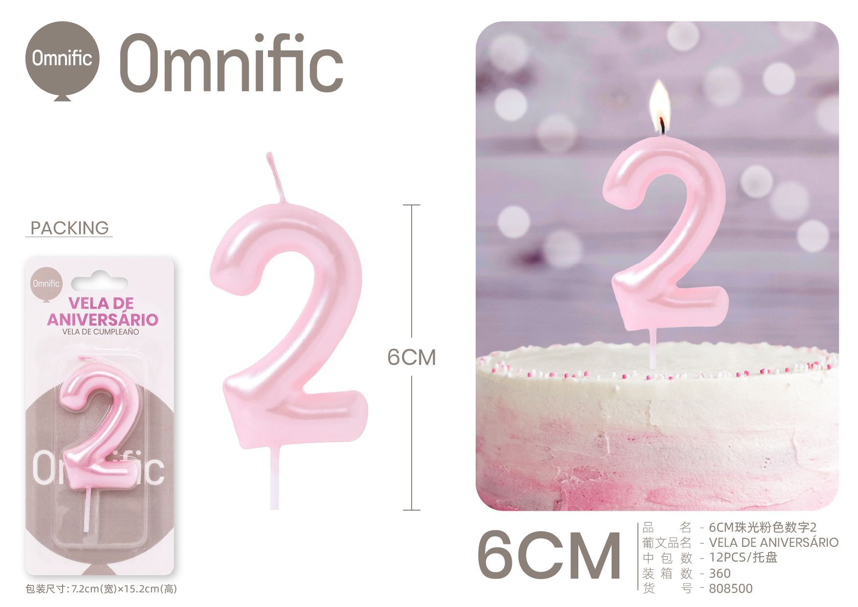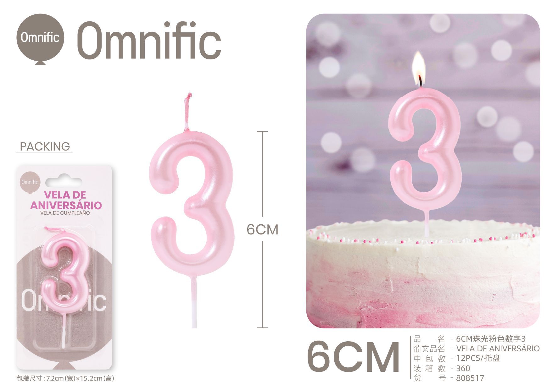 VELA NUMÉRICA PEROLADA ROSA 6CM