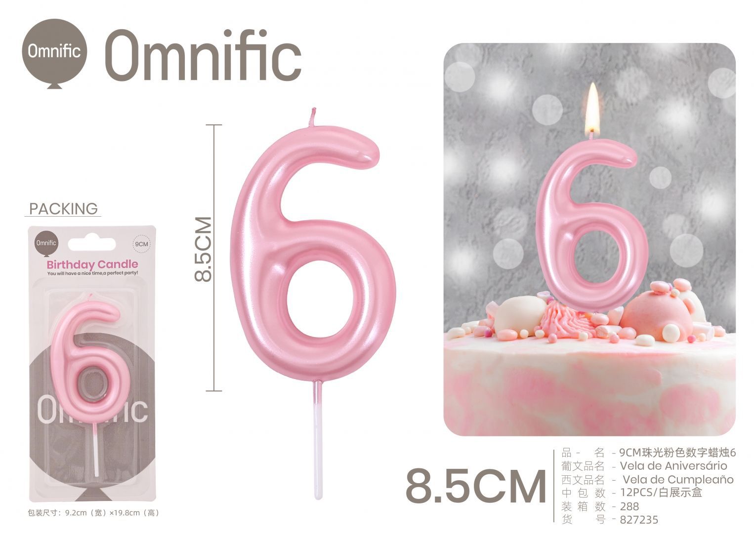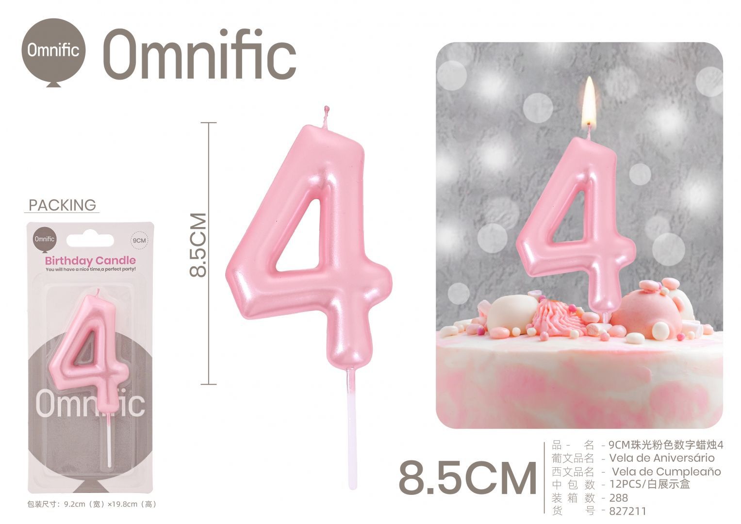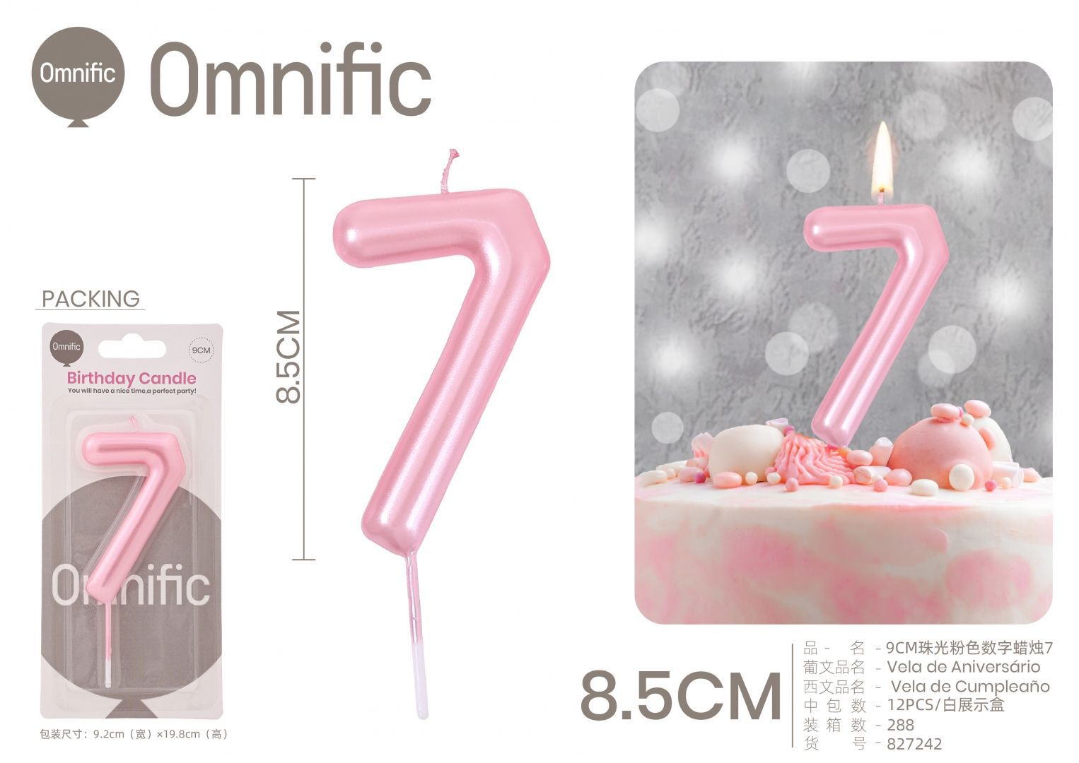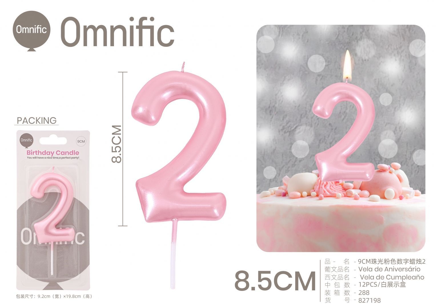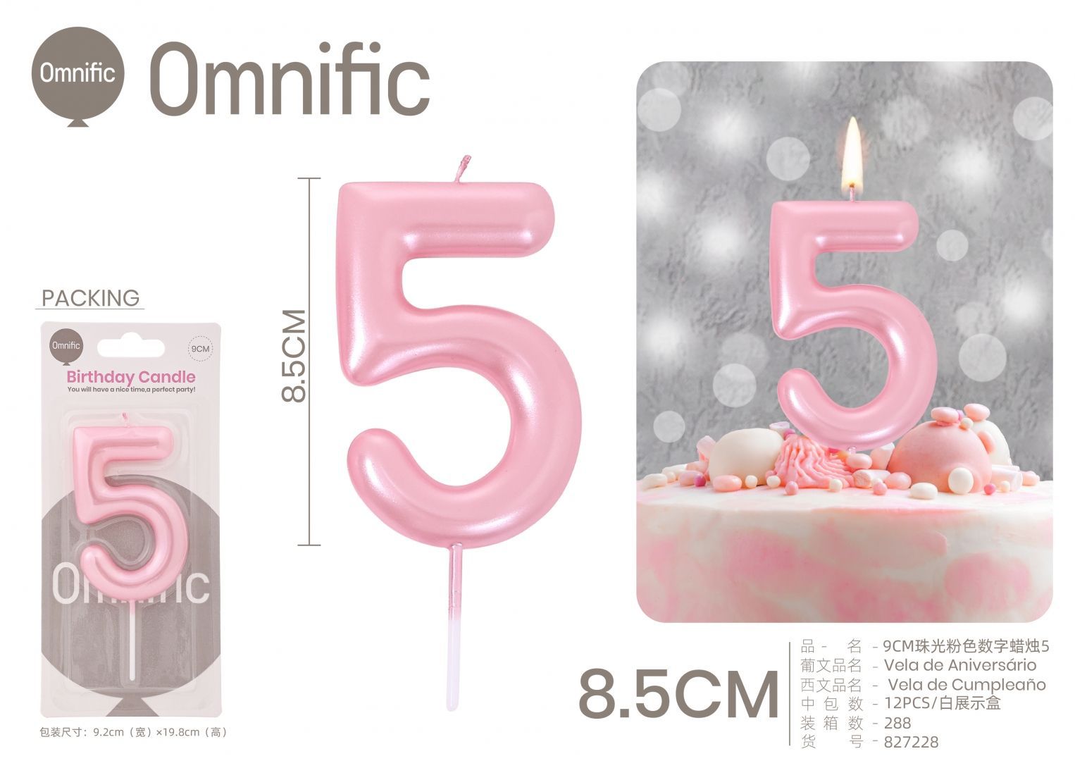 Quantidade de VELA NUMÉRICA PEROLADA ROSA 9CM